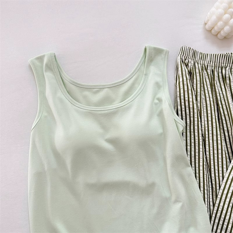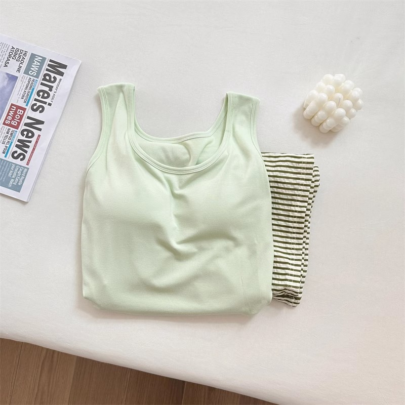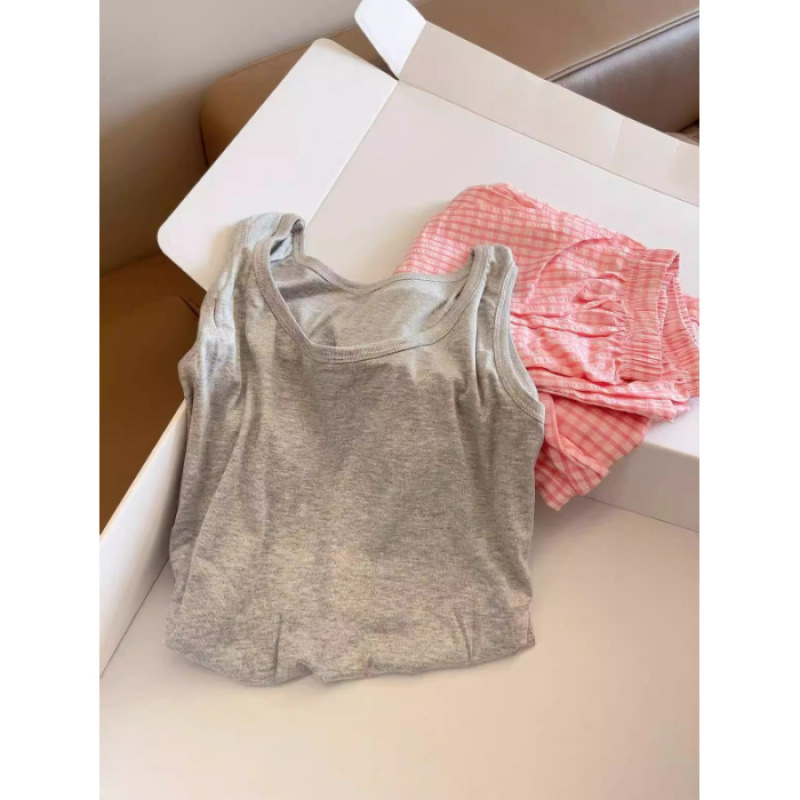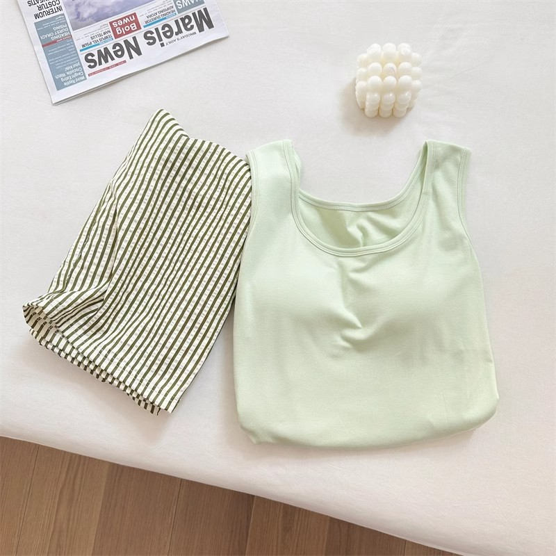 가슴 패드와 카미 솔 세트 파자마 여성 여름 느슨한 여성 최고 모방 면 바지 구름 면화스토어 가기