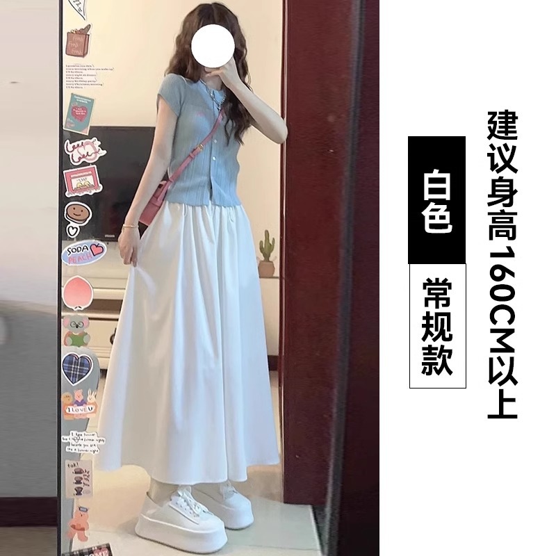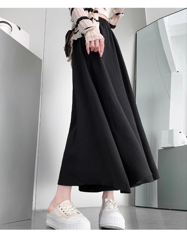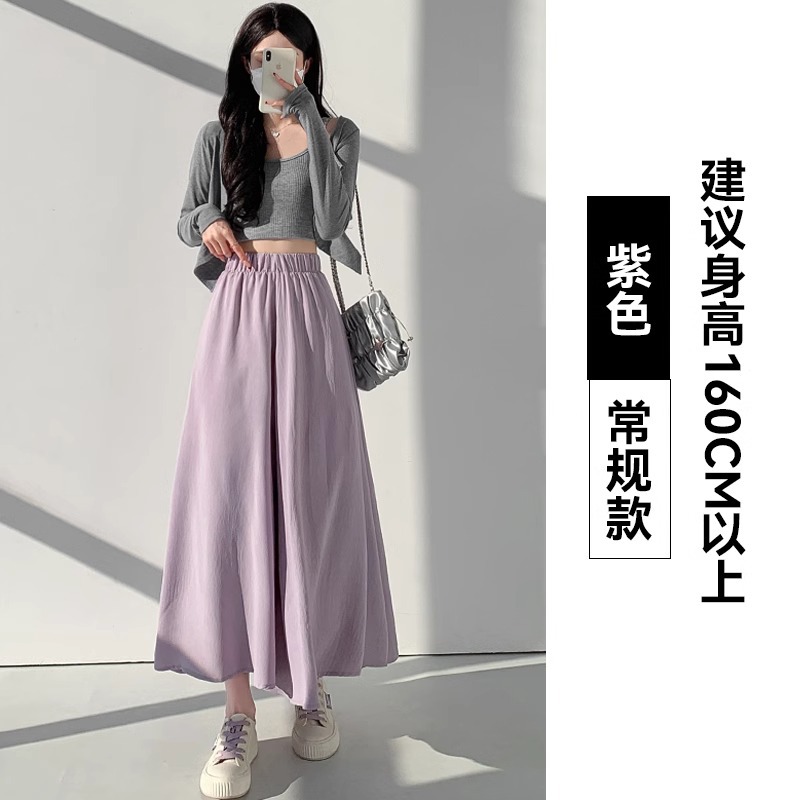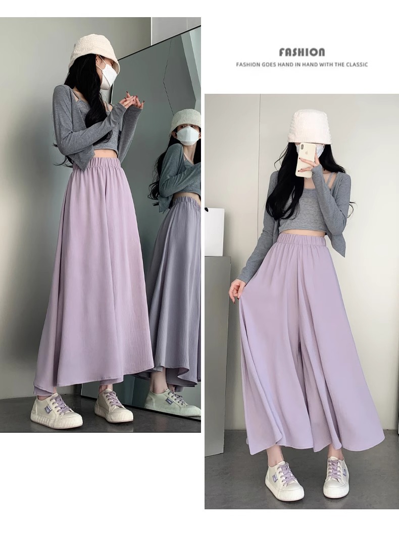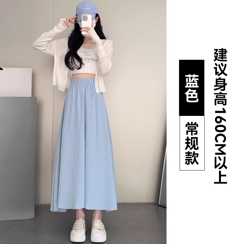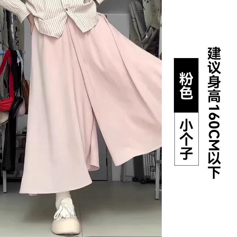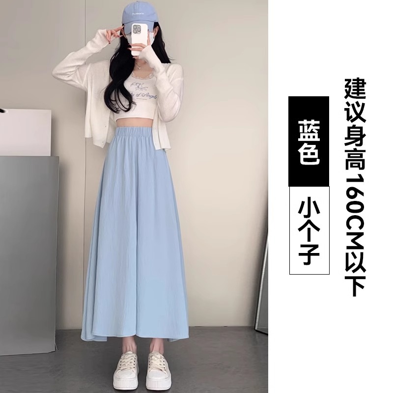 화이트 아이스 실크 바지 스커트 여자 봄과 여름 2025 작은 남자를위한 새로운 높은 허리 A-라인 스커트 쌓인 멋진 넓은 다리 바지스토어 가기