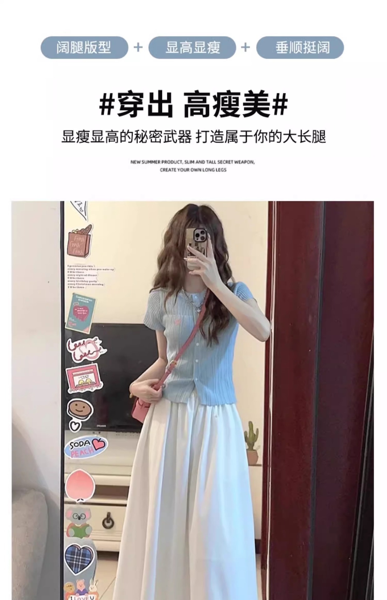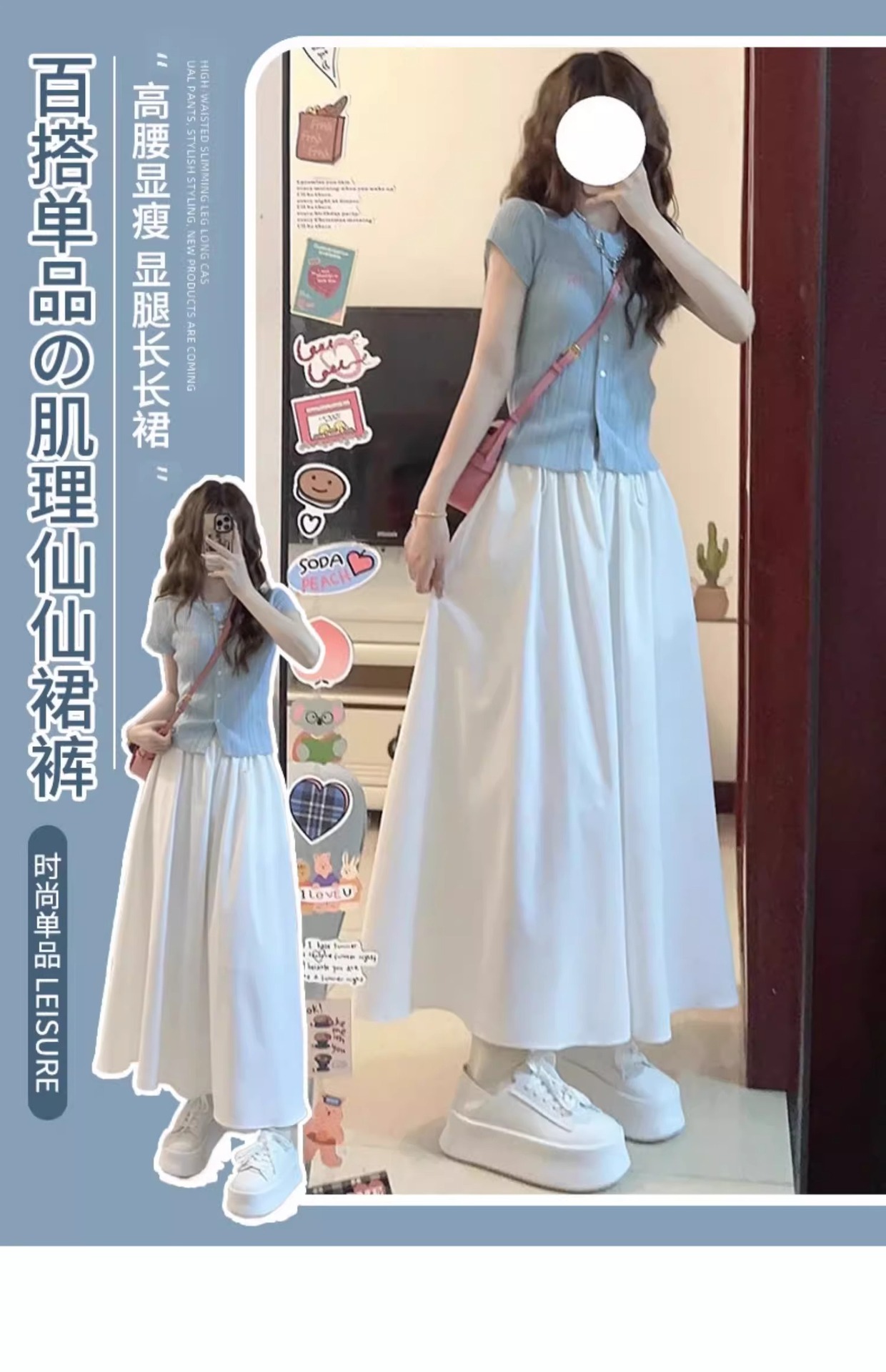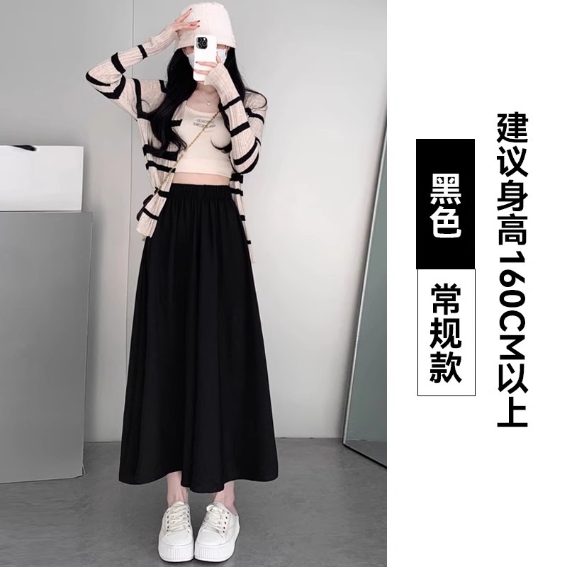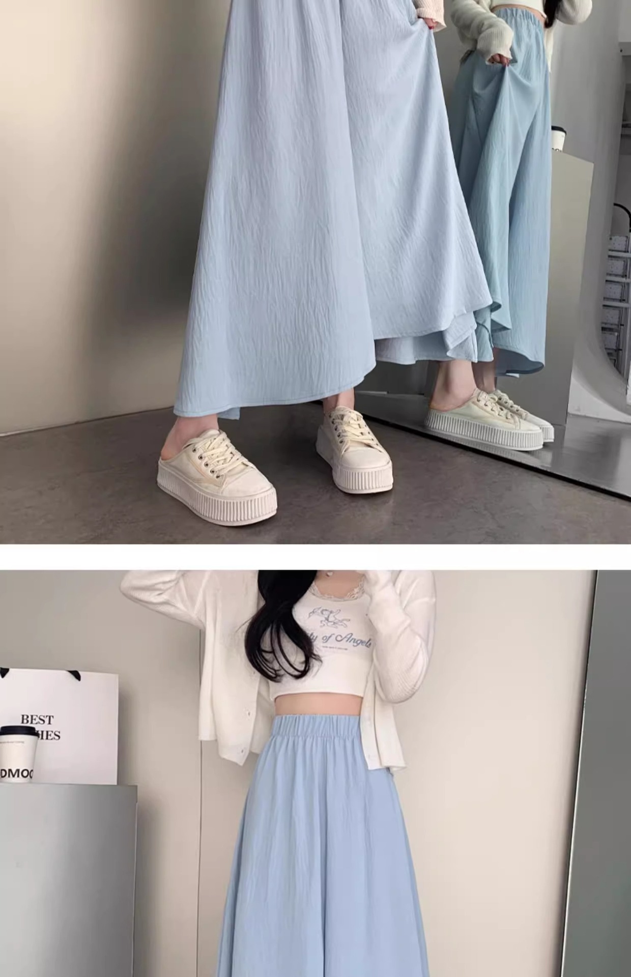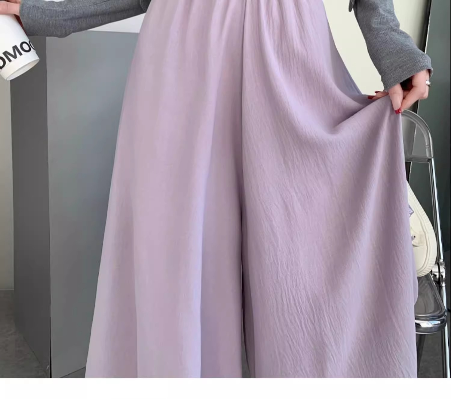 화이트 아이스 실크 바지 스커트 여자 봄과 여름 2025 작은 남자를위한 새로운 높은 허리 A-라인 스커트 쌓인 멋진 넓은 다리 바지스토어 가기