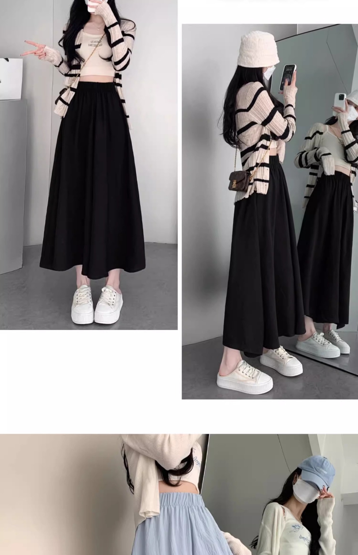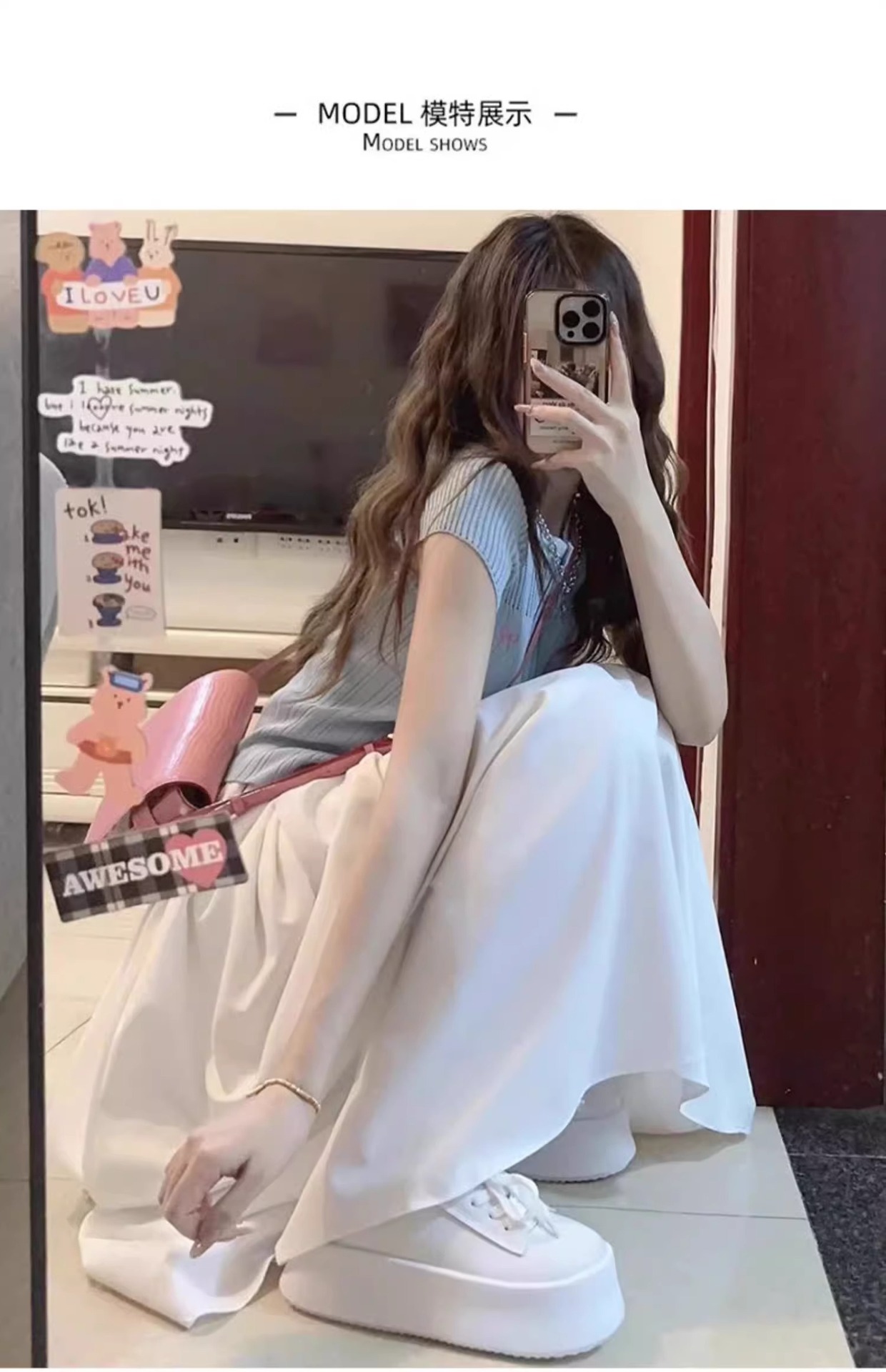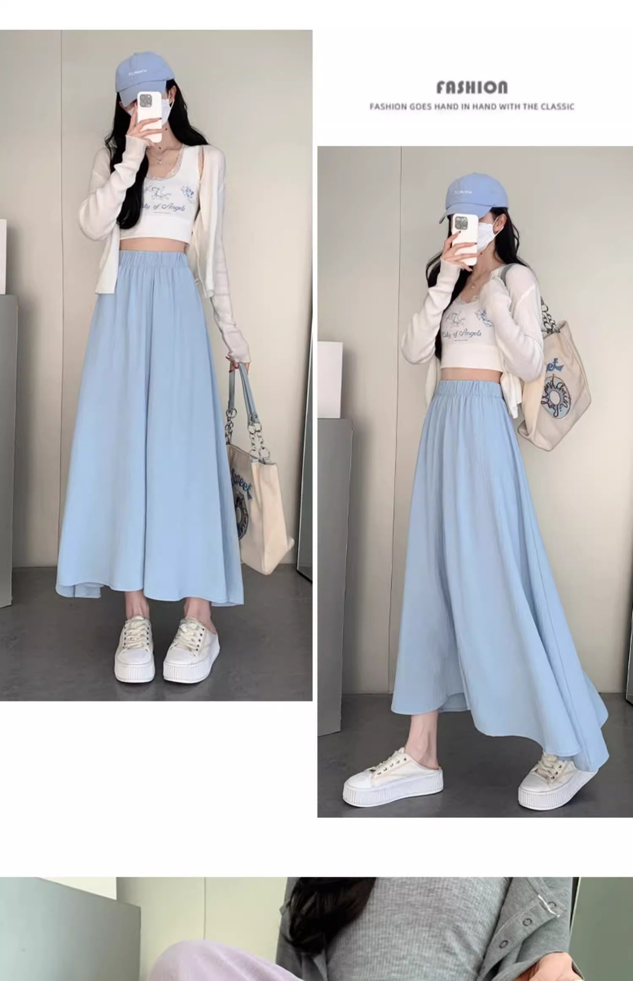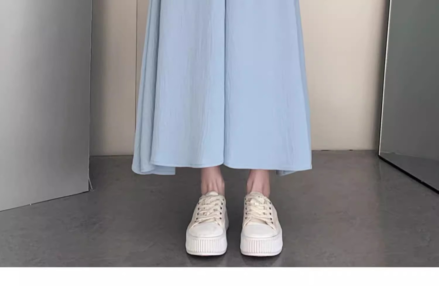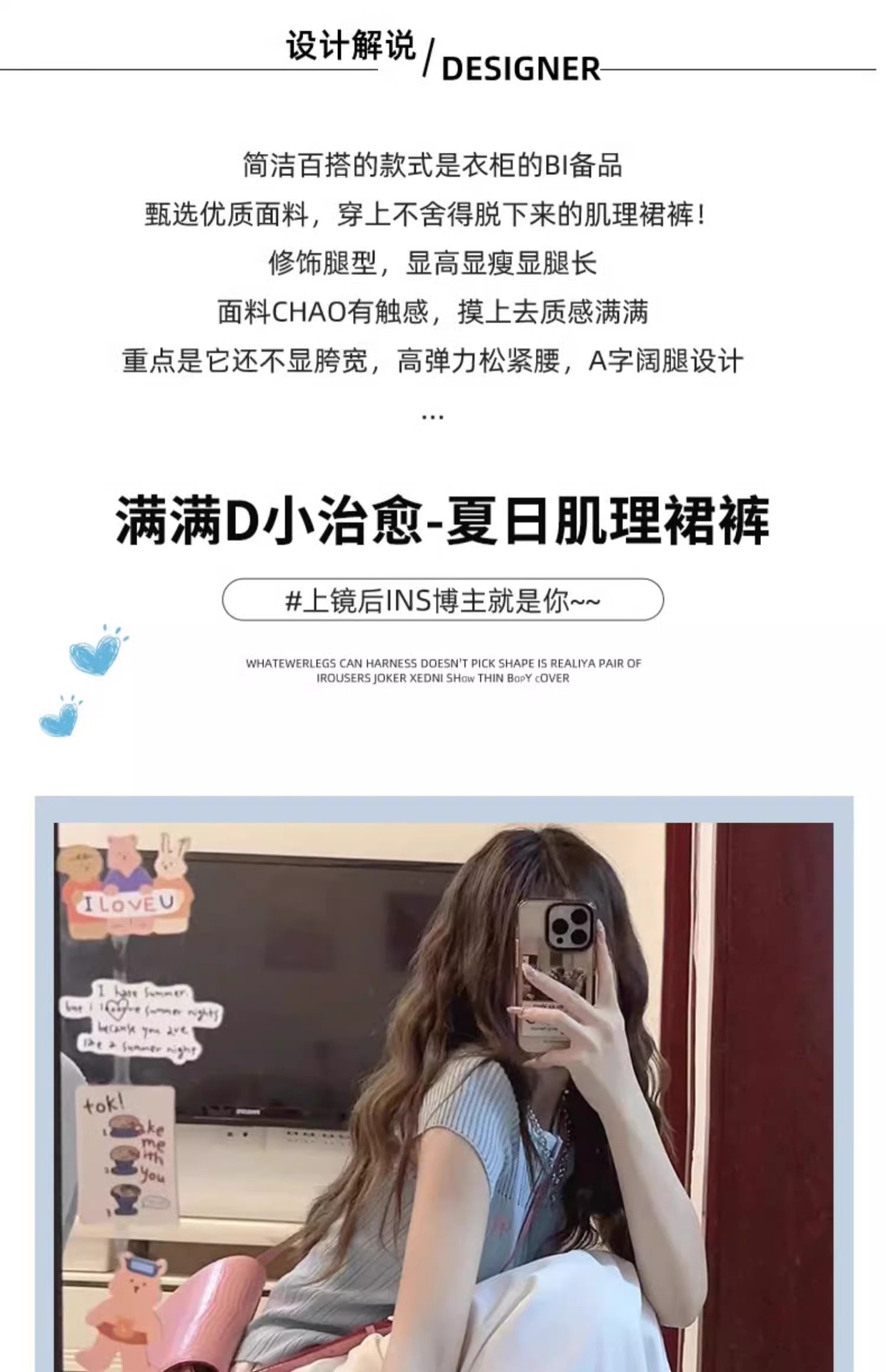 화이트 아이스 실크 바지 스커트 여자 봄과 여름 2025 작은 남자를위한 새로운 높은 허리 A-라인 스커트 쌓인 멋진 넓은 다리 바지스토어 가기