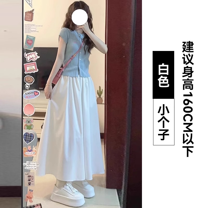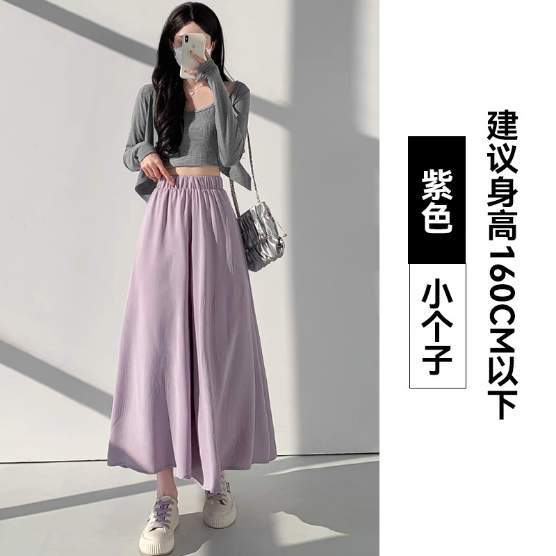 화이트 아이스 실크 바지 스커트 여자 봄과 여름 2025 작은 남자를위한 새로운 높은 허리 A-라인 스커트 쌓인 멋진 넓은 다리 바지