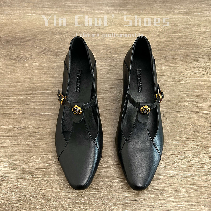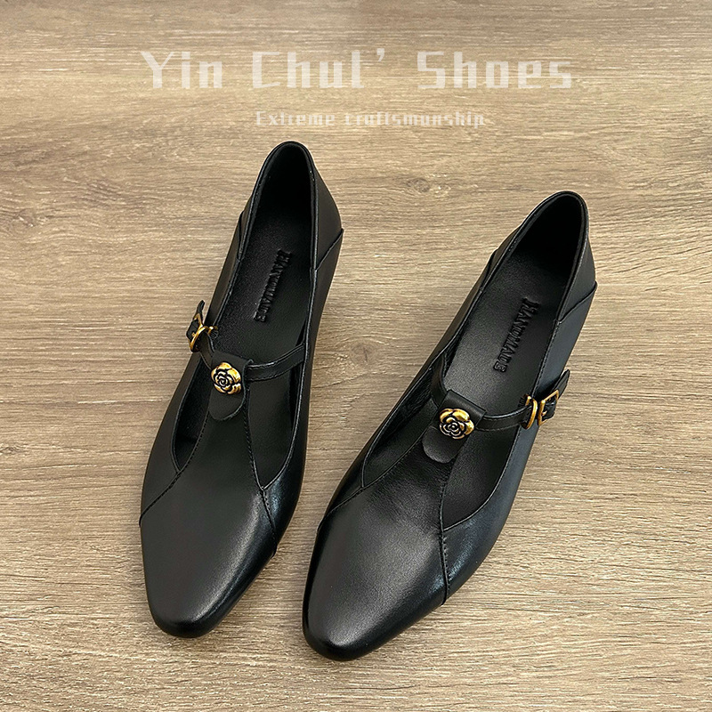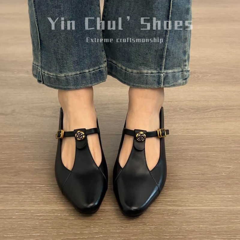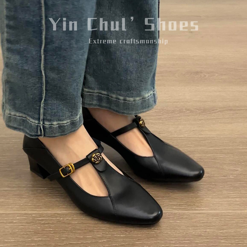 [당일 출고 가능] 청두 복고풍 스타일 T 자형 버클 메리 제인 신발 여성 프랑스 봄과 가을 두꺼운 뒤꿈치 신발