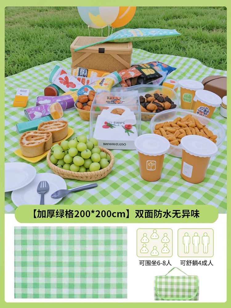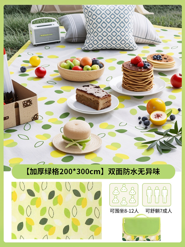 • 두꺼운 녹색 격자 무늬 2* 2m [4-8명이 앉을 수 있음] 양면 방수/무취