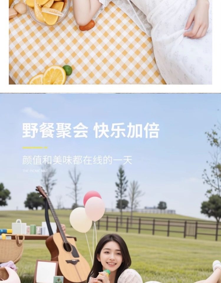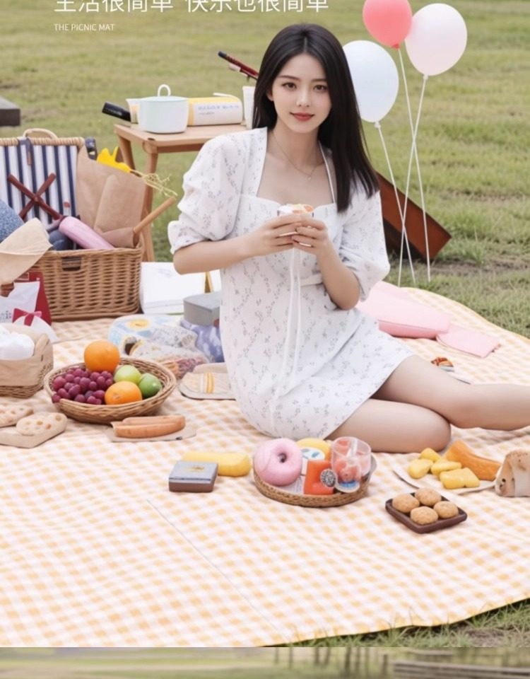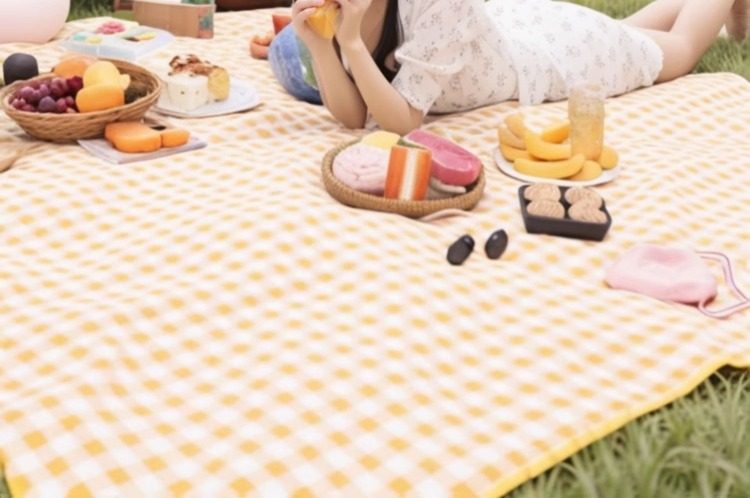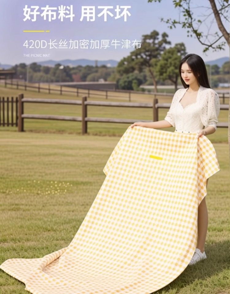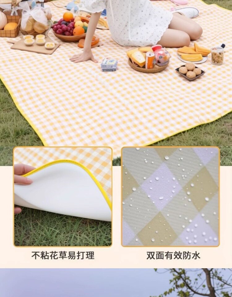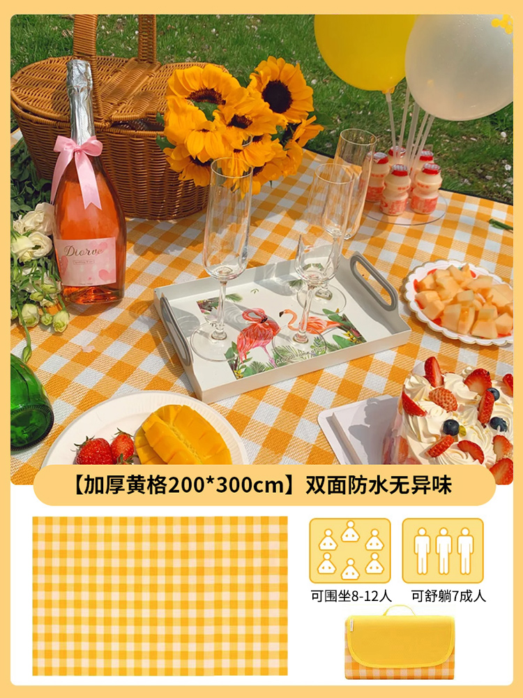 • 두꺼운 노란색 격자 무늬 2* 2m [4-8명이 앉을 수 있음] 양면 방수/무취