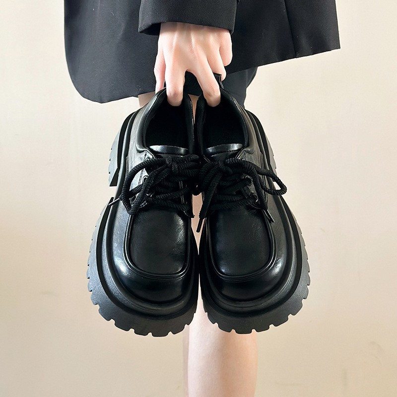 빅 헤드 레이스 업 작은 가죽 신발 여성의 2025 봄 새로운 두꺼운 단독 올 매치 영국 아카데미 스타일 레트로 JK 러브 싱글 레이어 신발스토어 가기