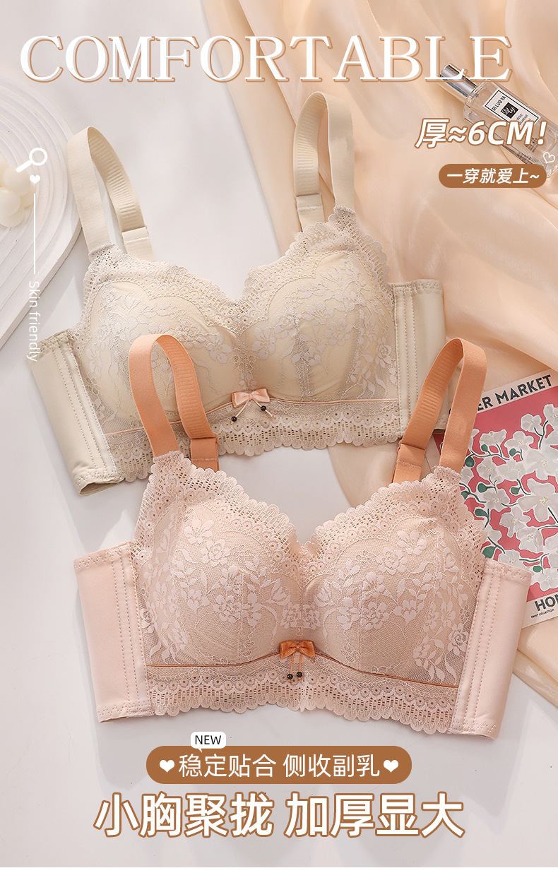가슴이 작은 여성을 위한 두꺼운 속옷, 푸쉬업 및 확대, 매우 두꺼운 여성용 브라, 매우 두꺼운 6CM 섹시한 레이스 와이어 프리 브라스토어 가기