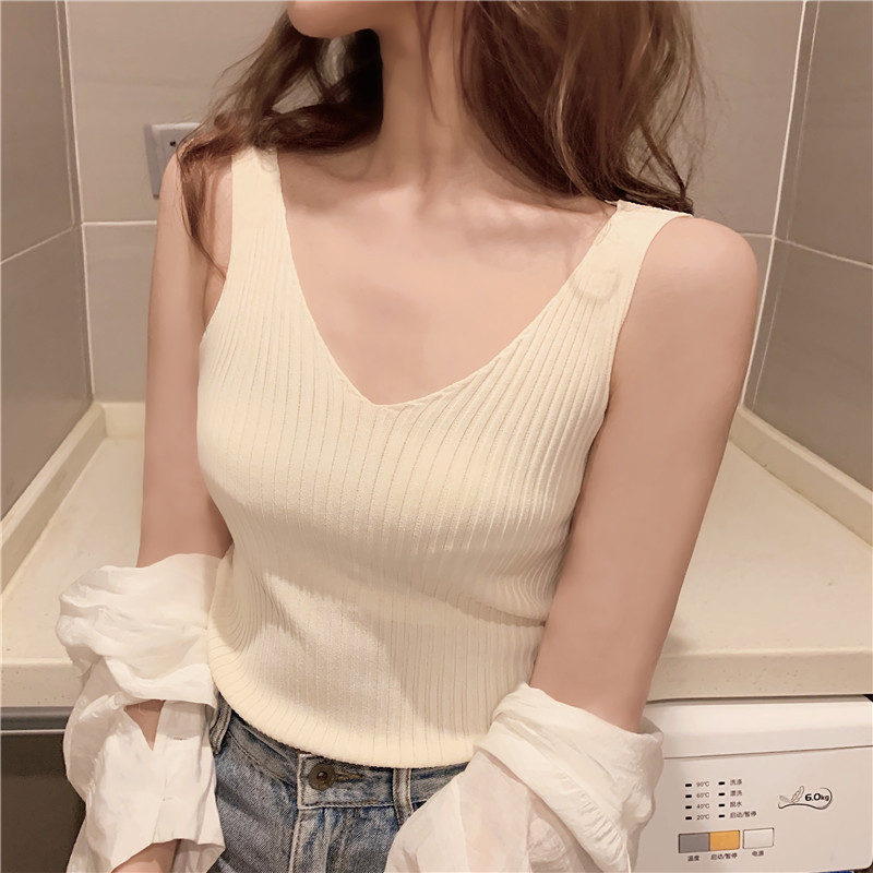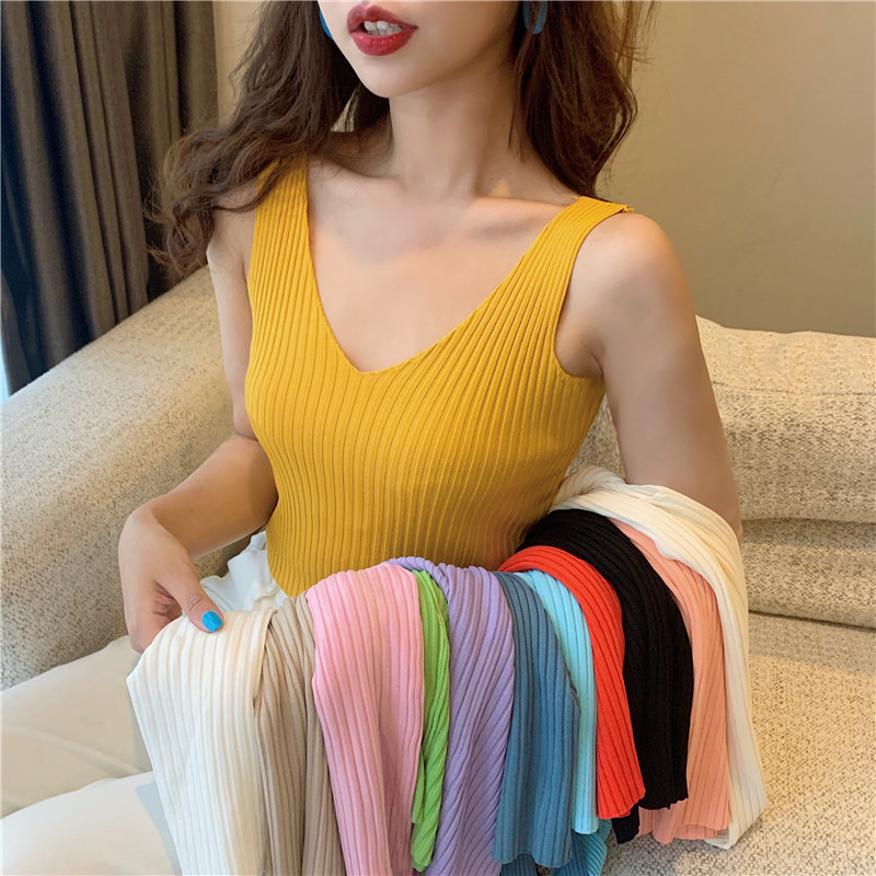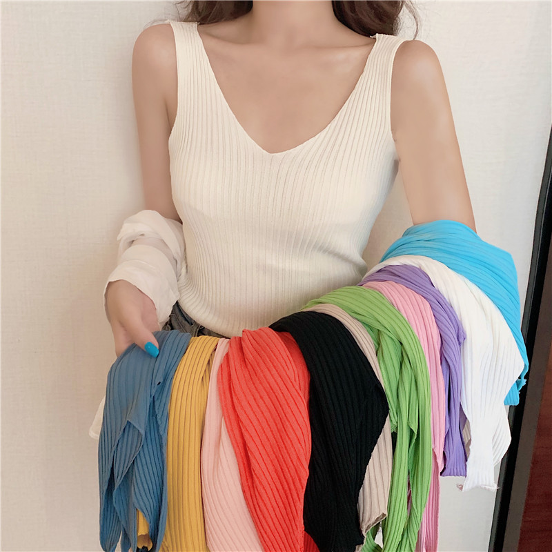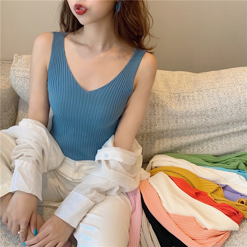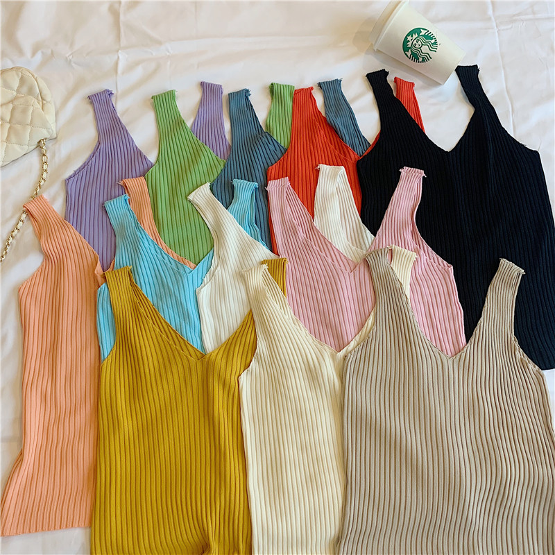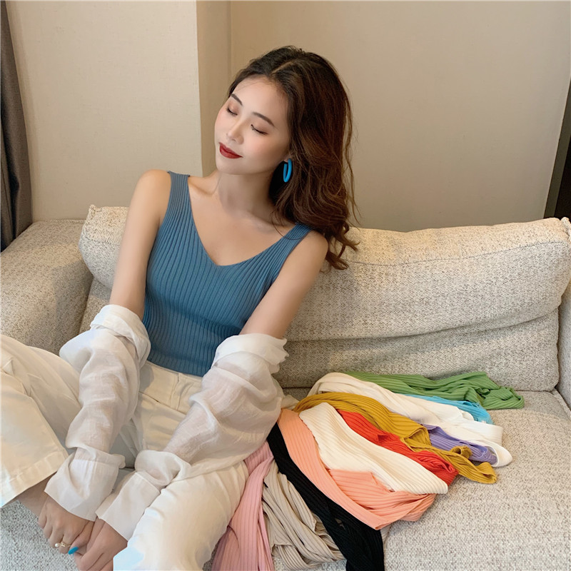 针织背心女外穿V领吊带小背心内搭打底衫修身夏季外穿短款无袖스토어 가기