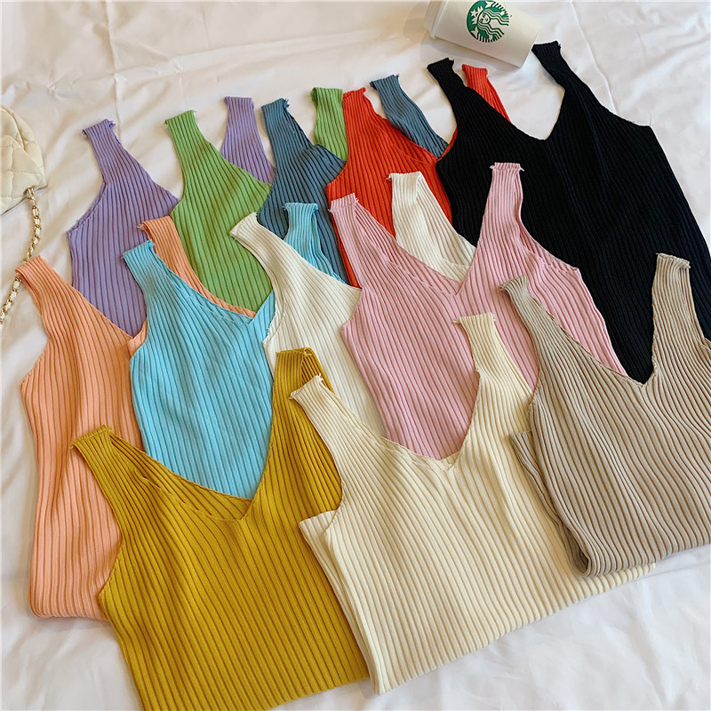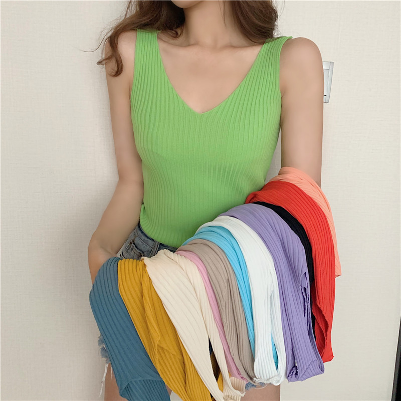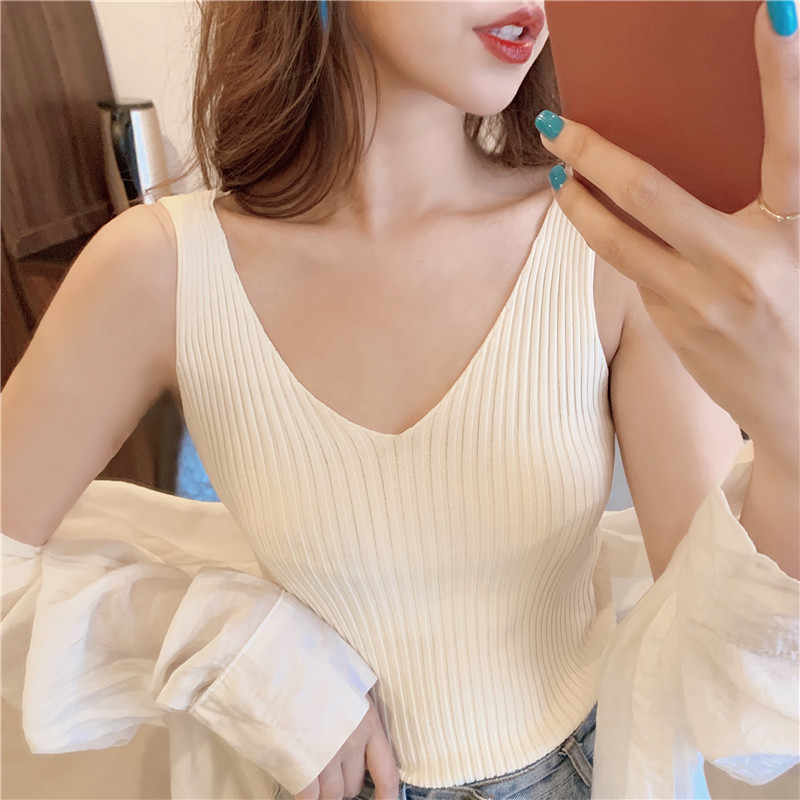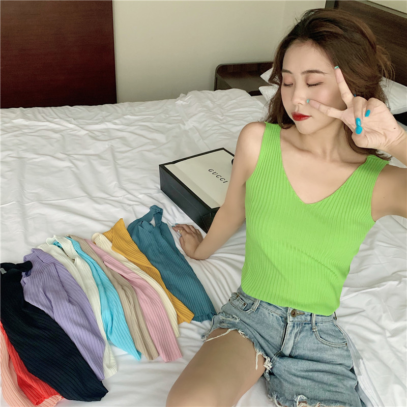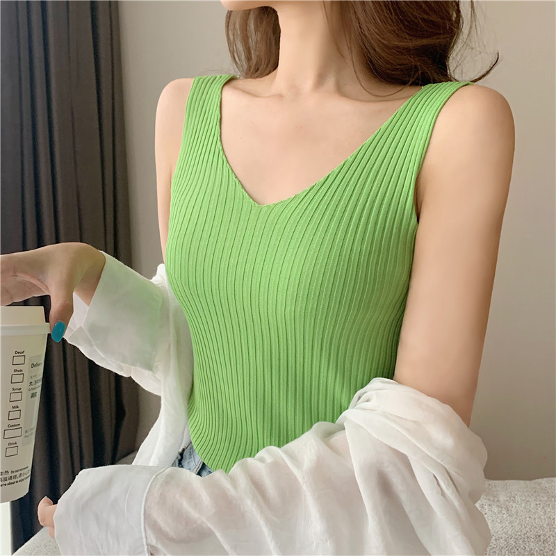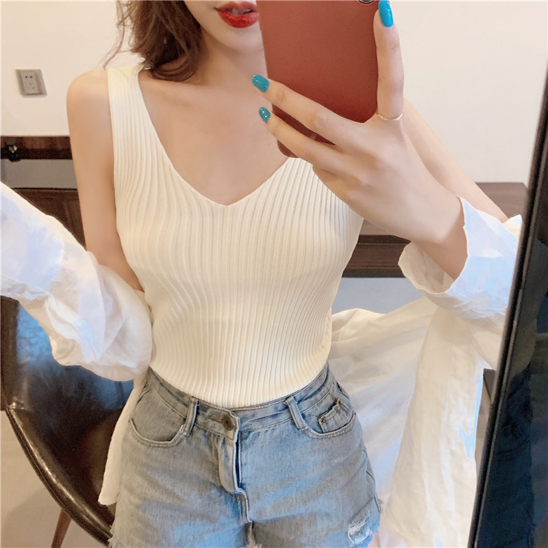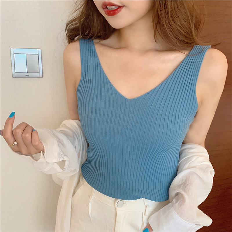 针织背心女外穿V领吊带小背心内搭打底衫修身夏季外穿短款无袖스토어 가기