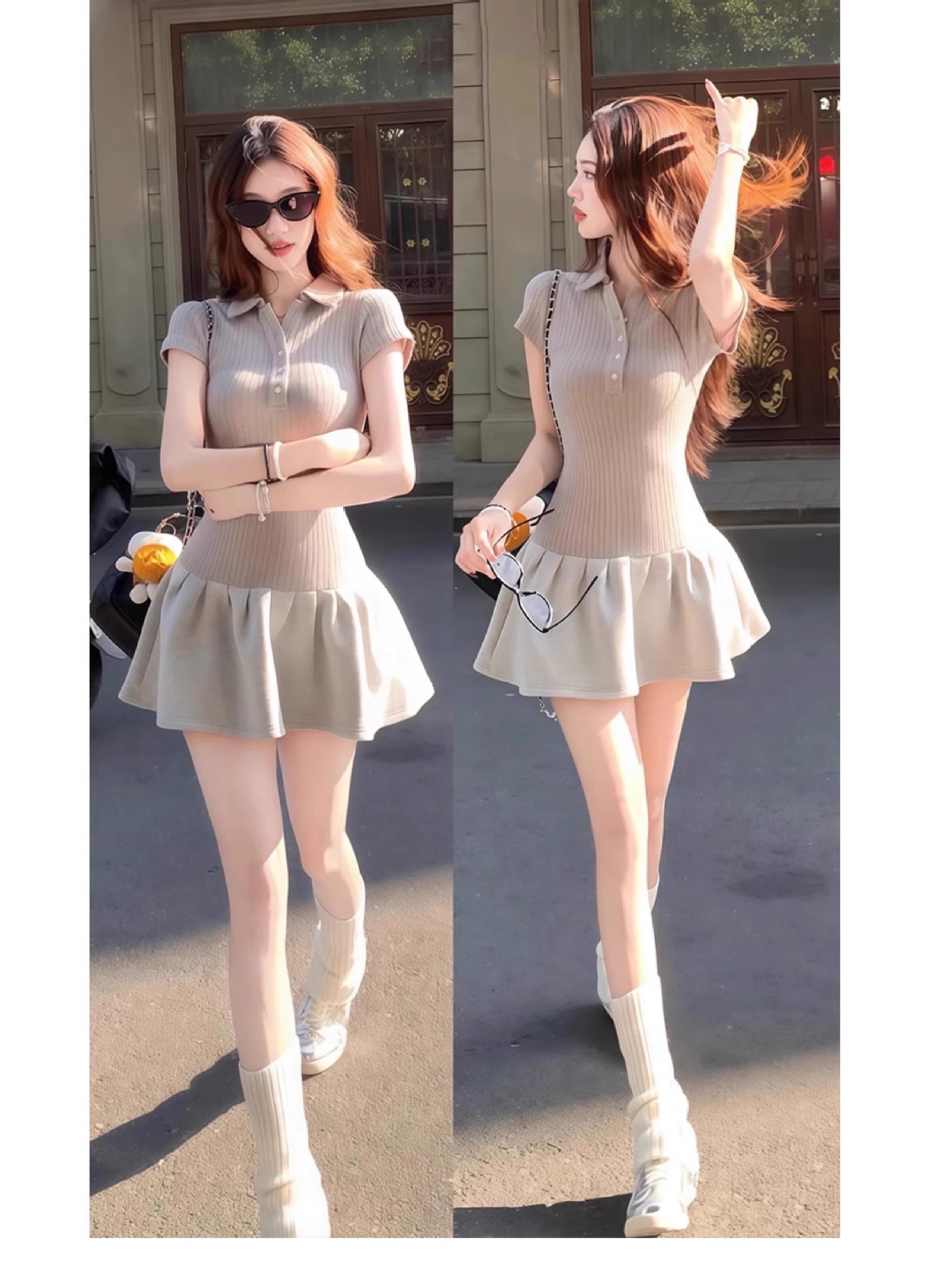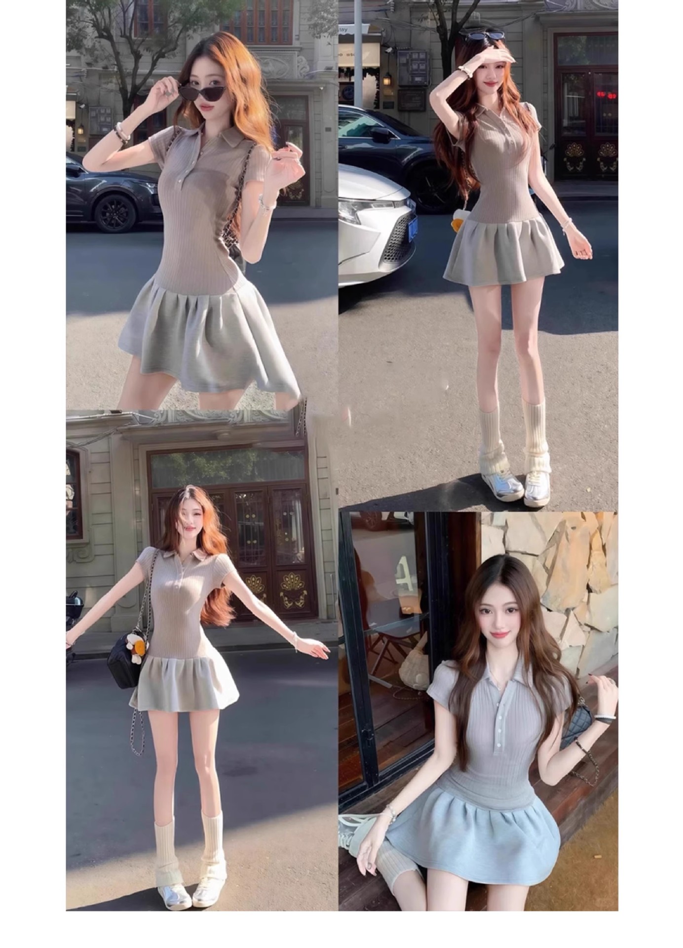 프랑스 스타일 폴로 칼라 반팔 원피스 여성 여름 하이 엔드 센스 작은 스타일 우아한 슬림 핏 타이트 허리 슬림 핏 힙합 스커트스토어 가기