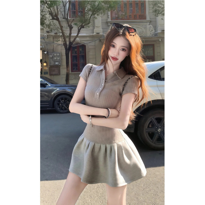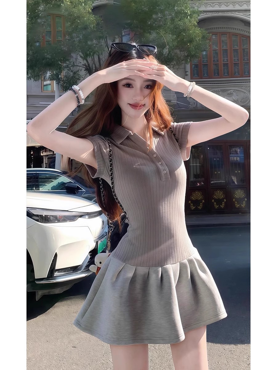 프랑스 스타일 폴로 칼라 반팔 원피스 여성 여름 하이 엔드 센스 작은 스타일 우아한 슬림 핏 타이트 허리 슬림 핏 힙합 스커트