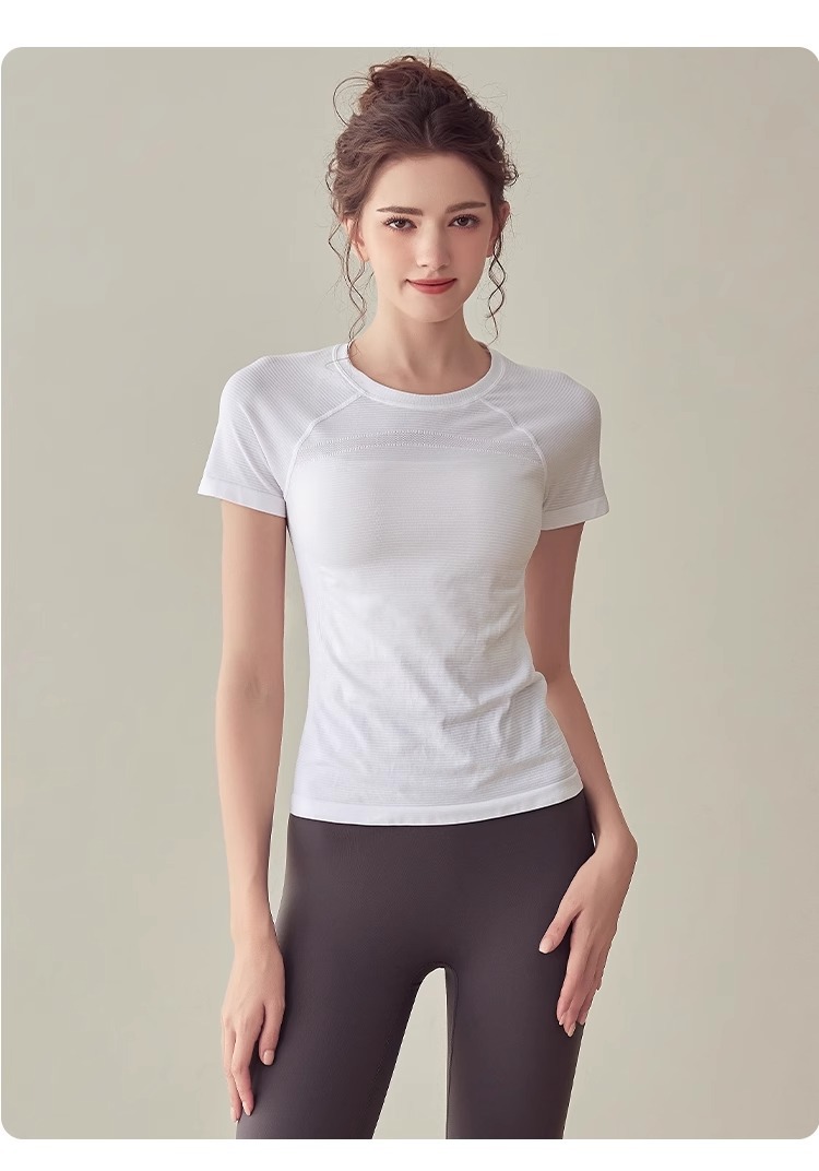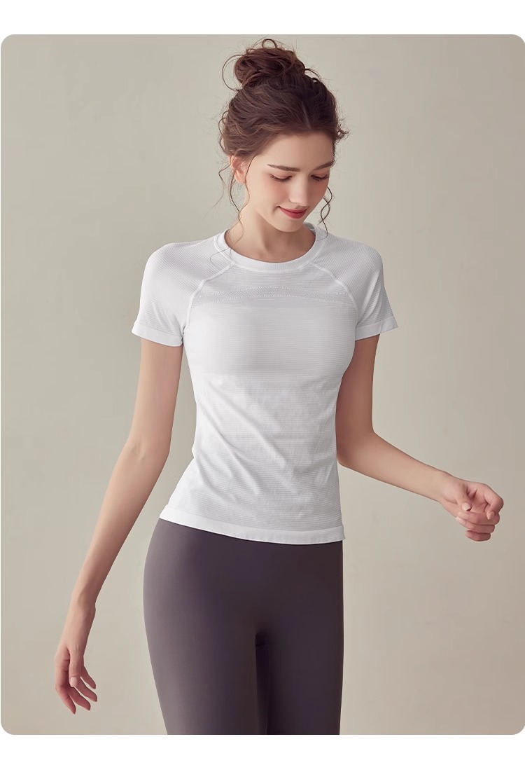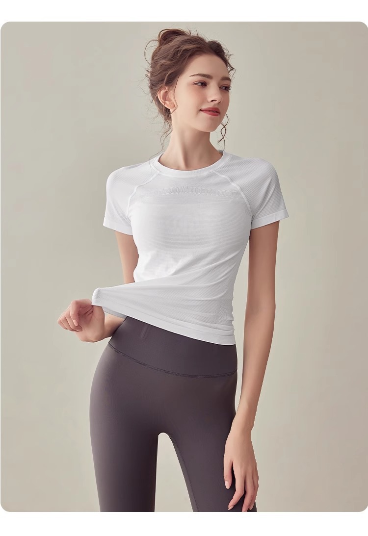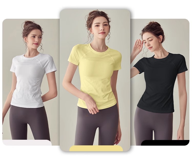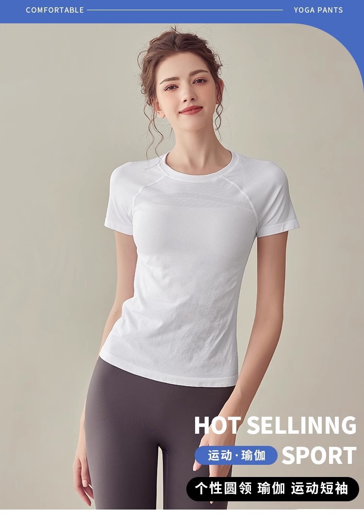 요가 의류 스포츠 최고 여성 반소매 티셔츠 여름 달리기 빠른 건조 의류 피트니스 의류 슬림핏 요가 반팔 탑