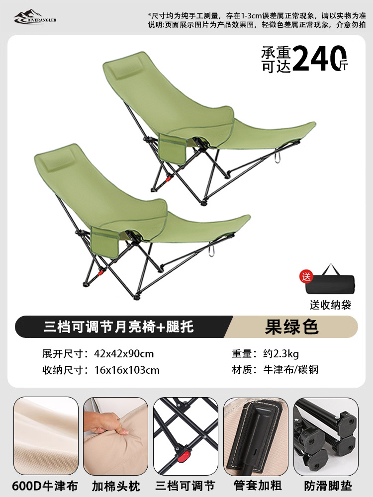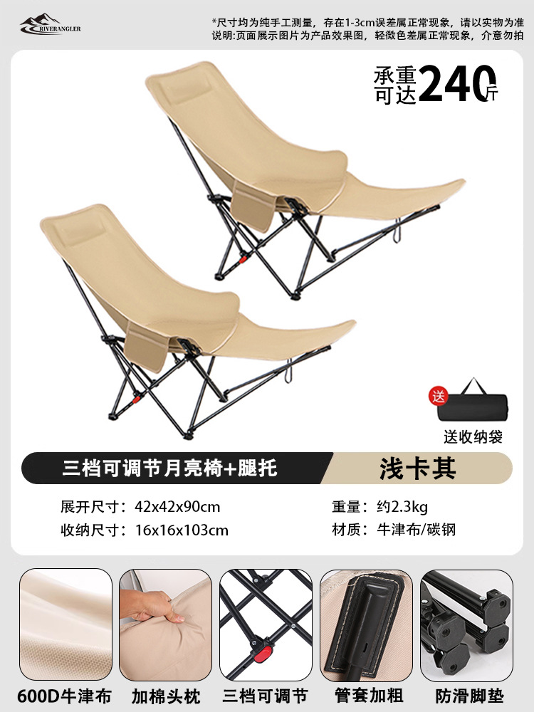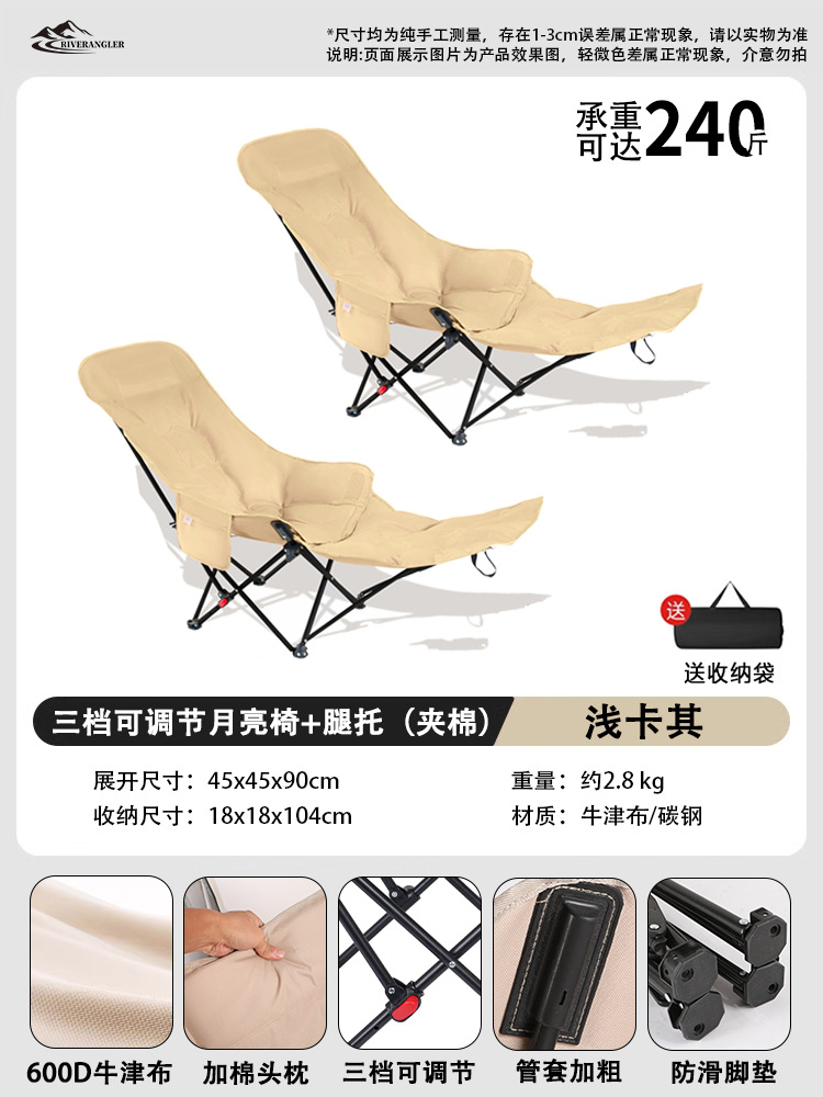 • 앉고 눕기 겸용 - 면을 넣어 따뜻하게 [면을 넣어 + 다리 받침대 + 3단계 조절 가능한 달 의자 - 라이트 카키 X2]