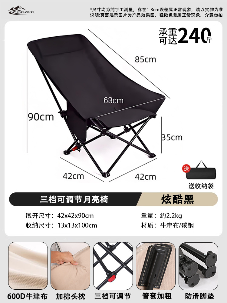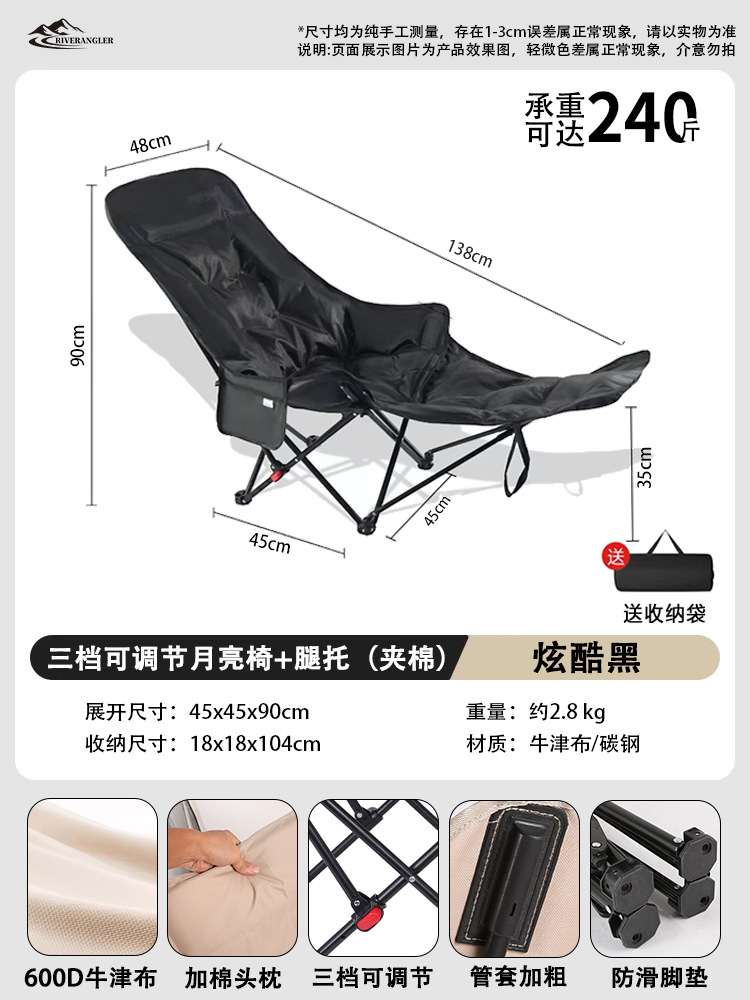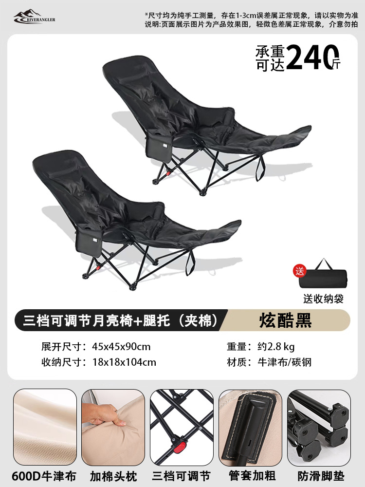 • 앉거나 누울 수 있는 겸용 - 면을 추가하여 따뜻하게 유지 [면 추가 + 다리 받침대 포함 + 3단계 조절 가능한 달 의자 - 쿨 블랙 X2]