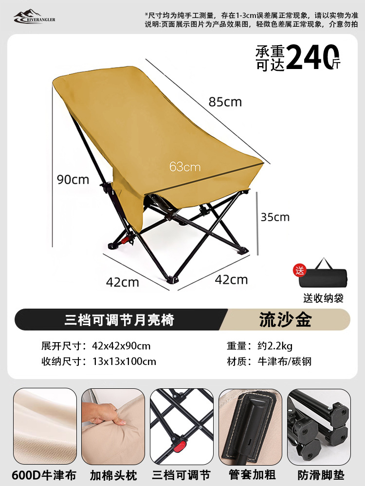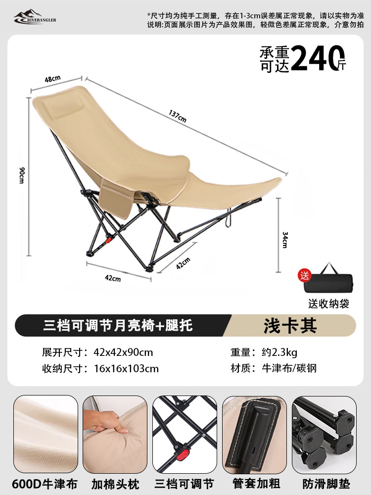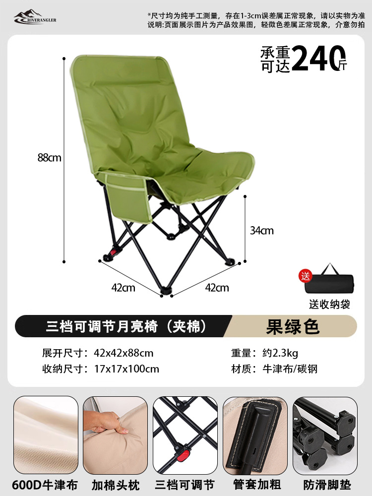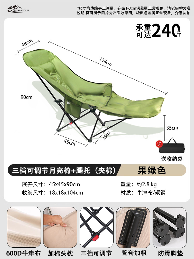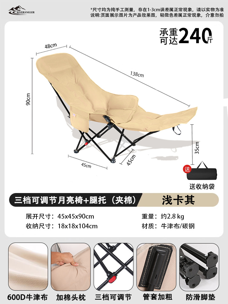 • 앉거나 눕거나 사용 가능 - 면을 추가하여 따뜻하게 유지 [면 추가 + 다리 받침대 포함 + 3단계 조절 가능한 달 의자 - 라이트 카키]