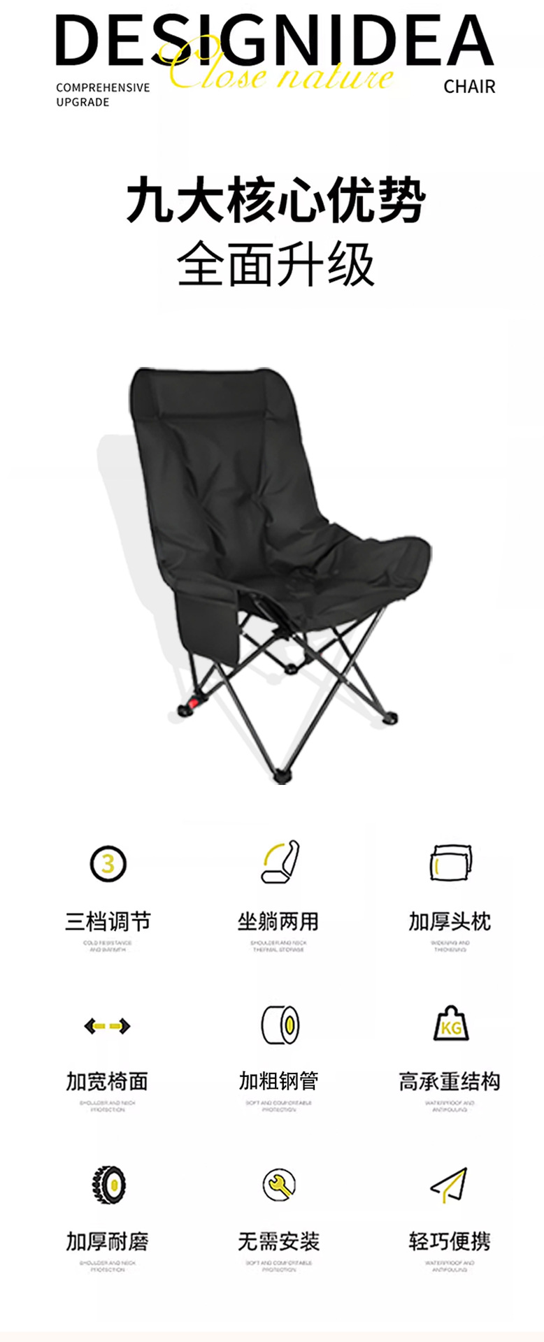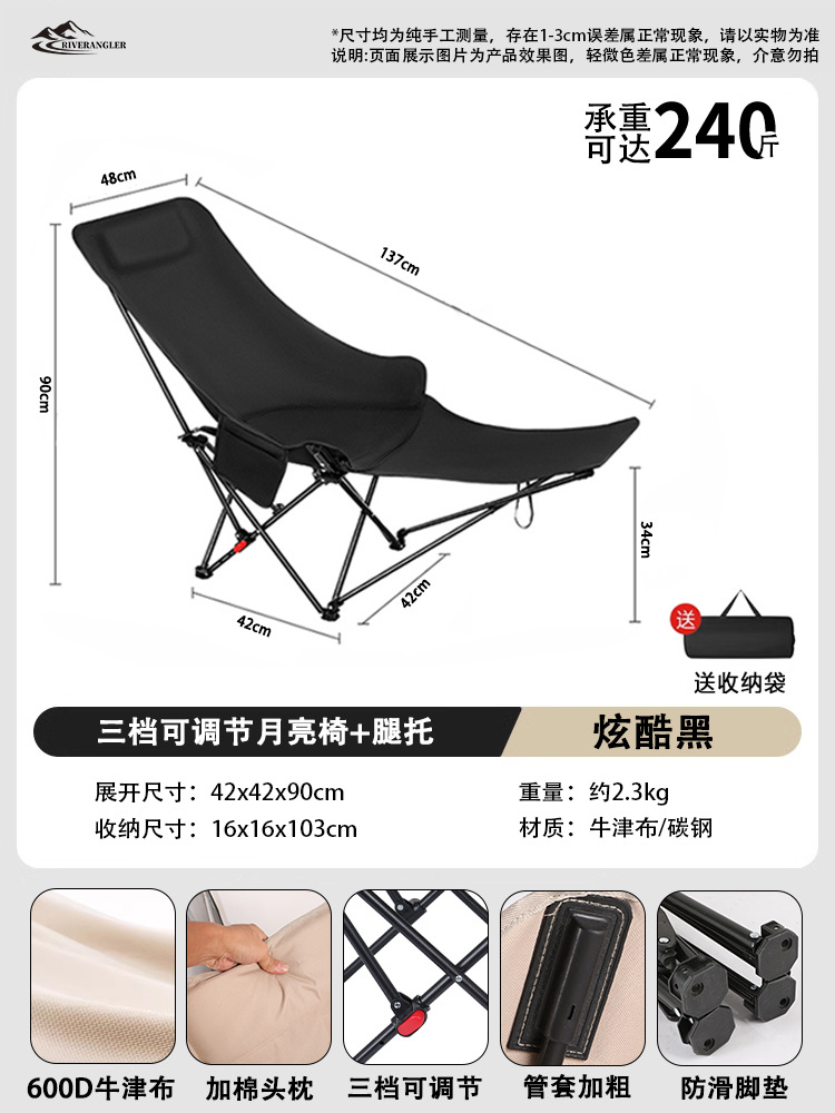 • 업그레이드된 면과 두꺼워진 [면버전 - 3단계 조절 가능한 달의자 - 쿨블랙]