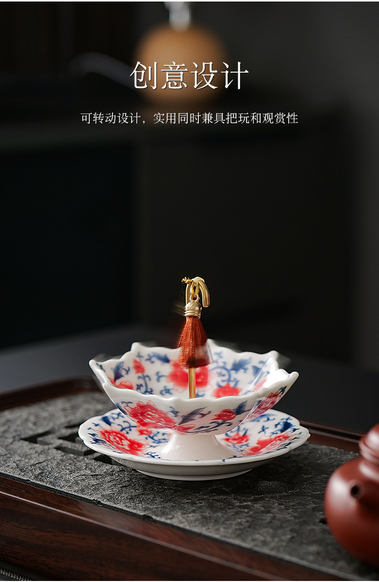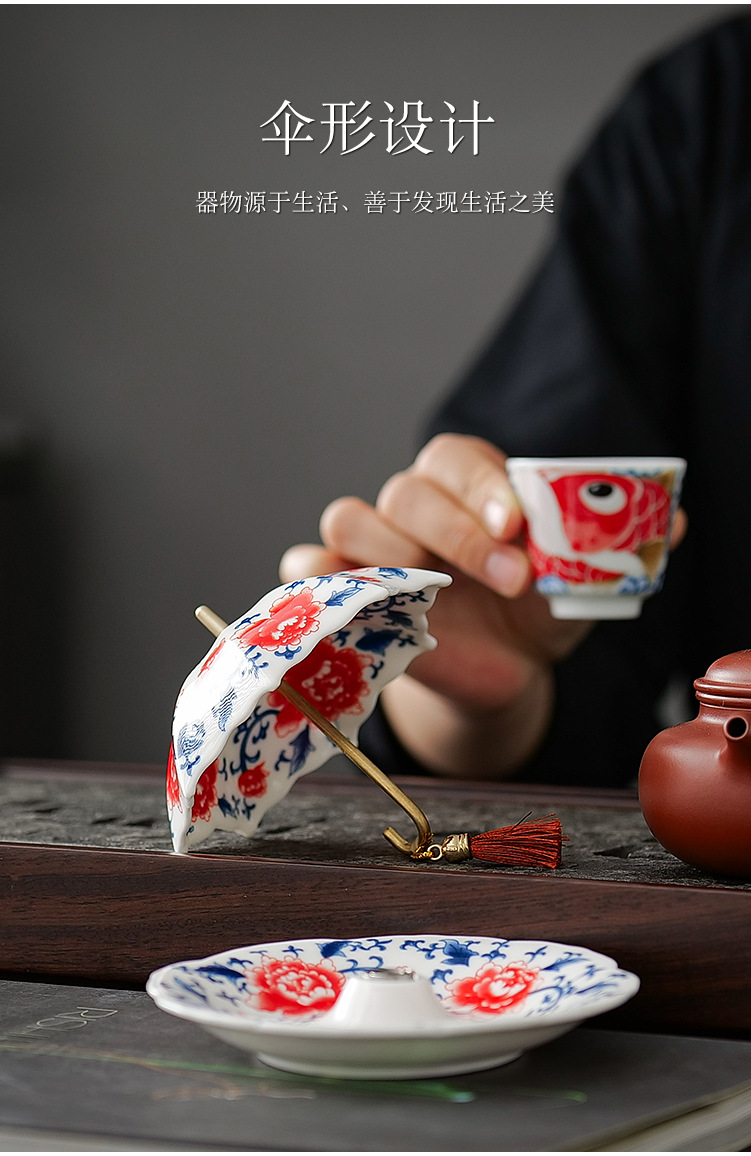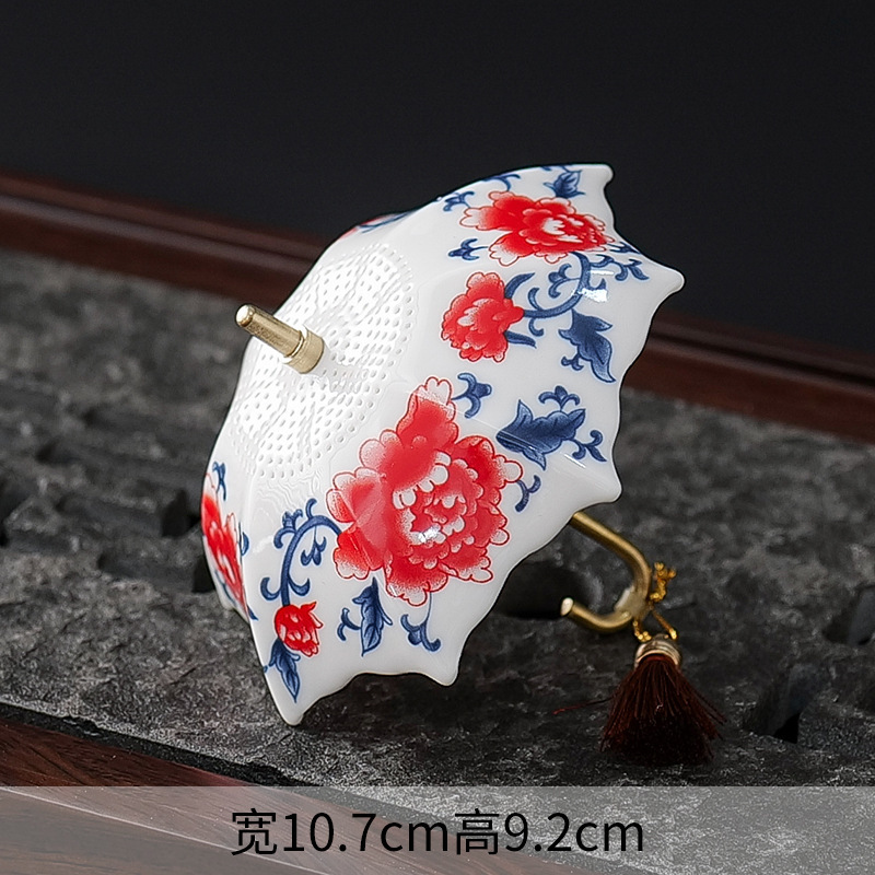 창조적 인 파란색과 꽃 우산 차 누설 차 필터 세라믹 차 필터 다도 액세서리 차 테이블 차 테이블 장식 장식품