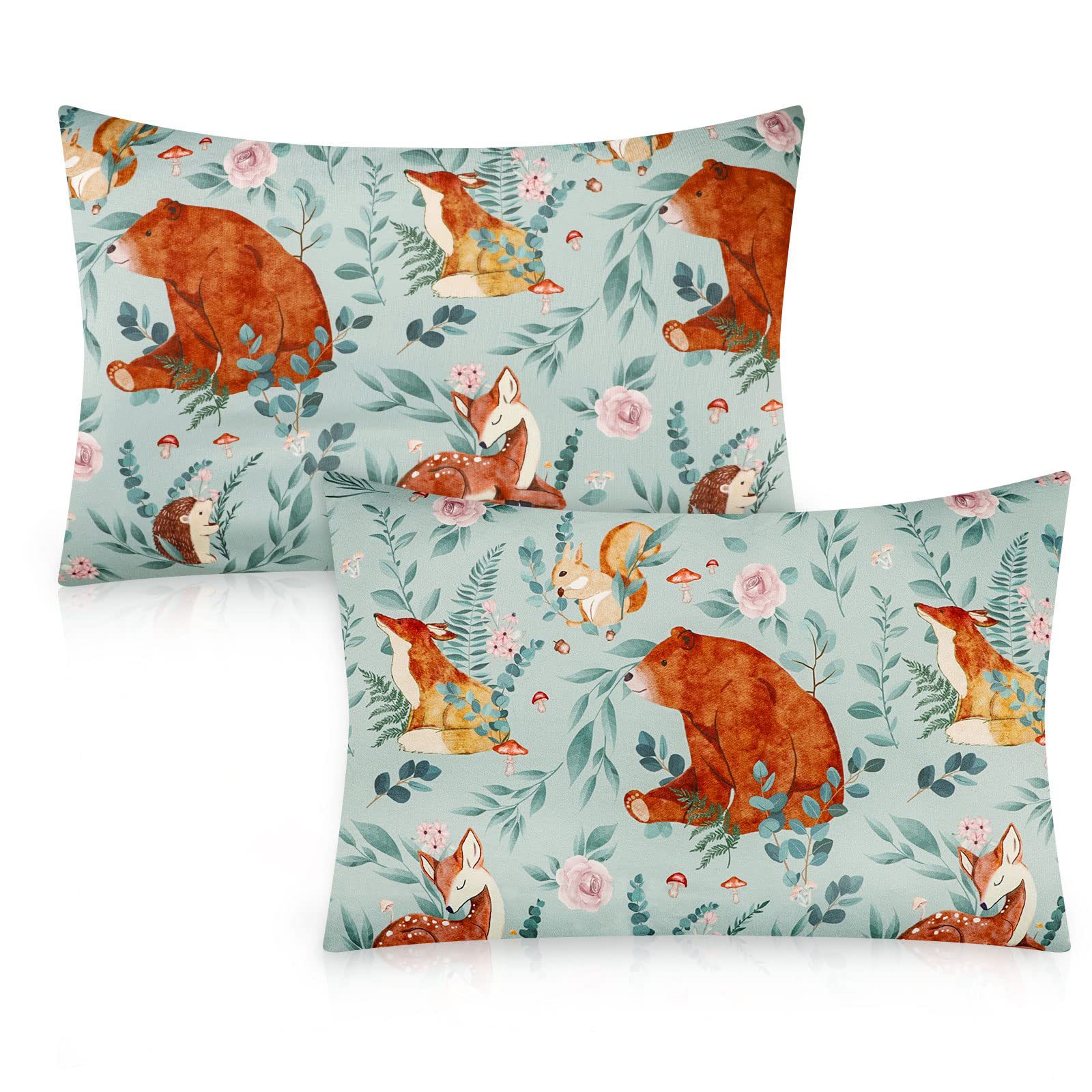 Size: Our toddler pillowcase measures 13x18 inches, it fits toddler or travel pillows 13" x 18", 14" x 19", 12"x16" perfectly.