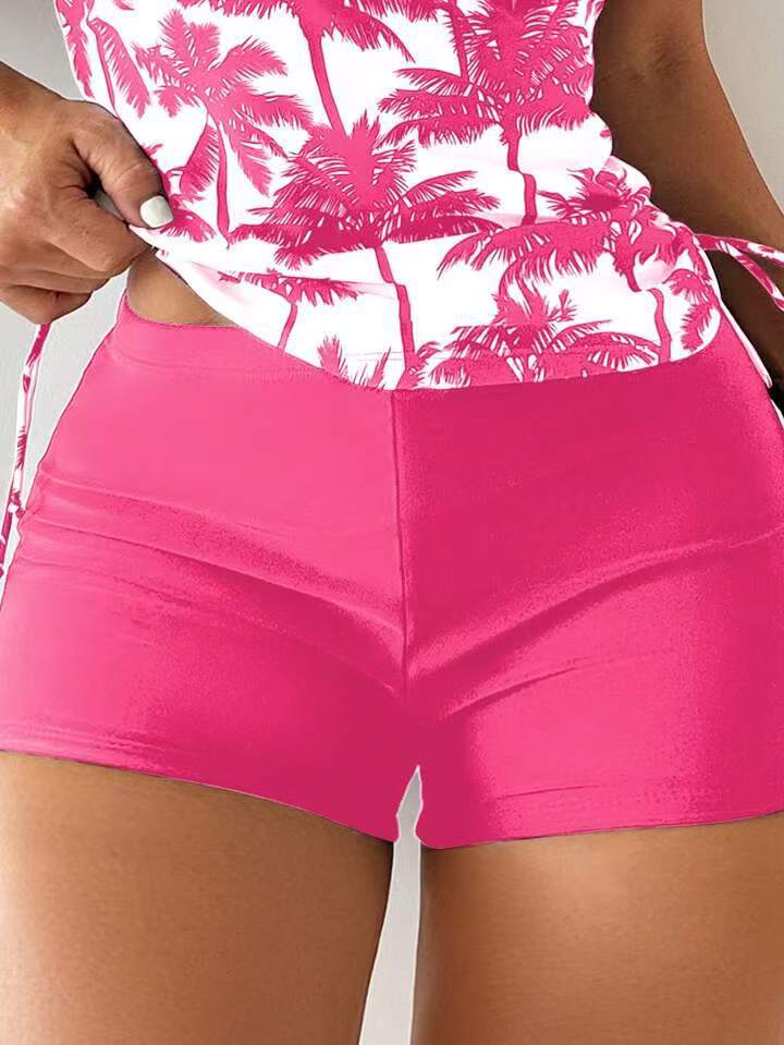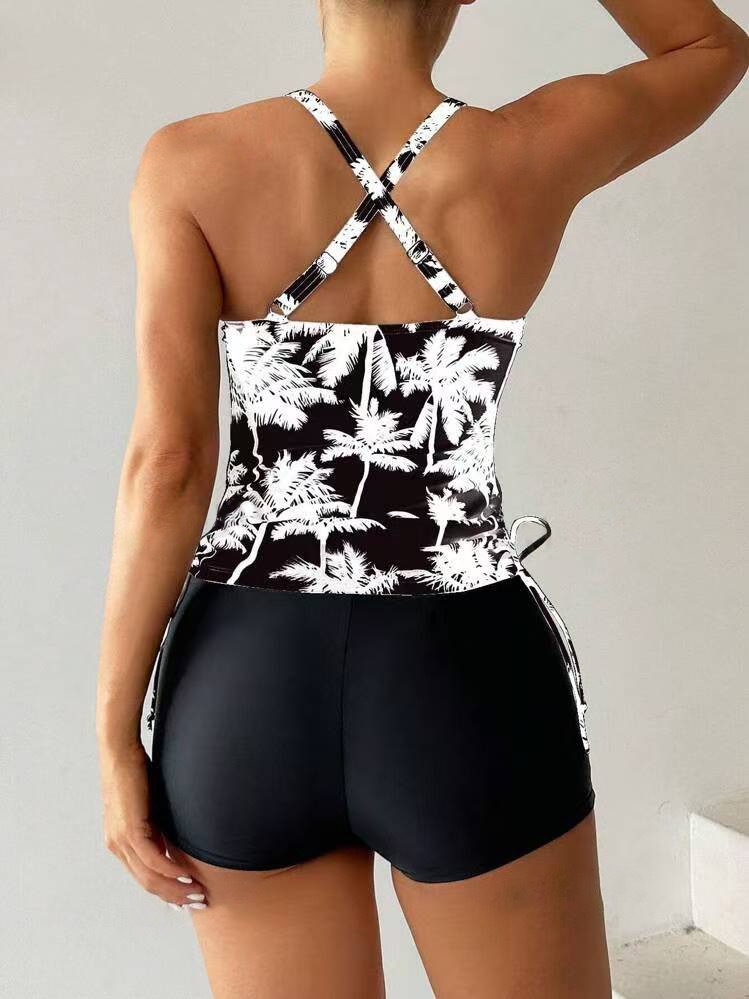 2025 유럽과 미국의 새로운 대외 무역 크로스보더 프린트 핫 소녀 꽉 끼는 등이없는 드로스트링 배를 덮는 슬리밍 스플릿 수영복 여성용