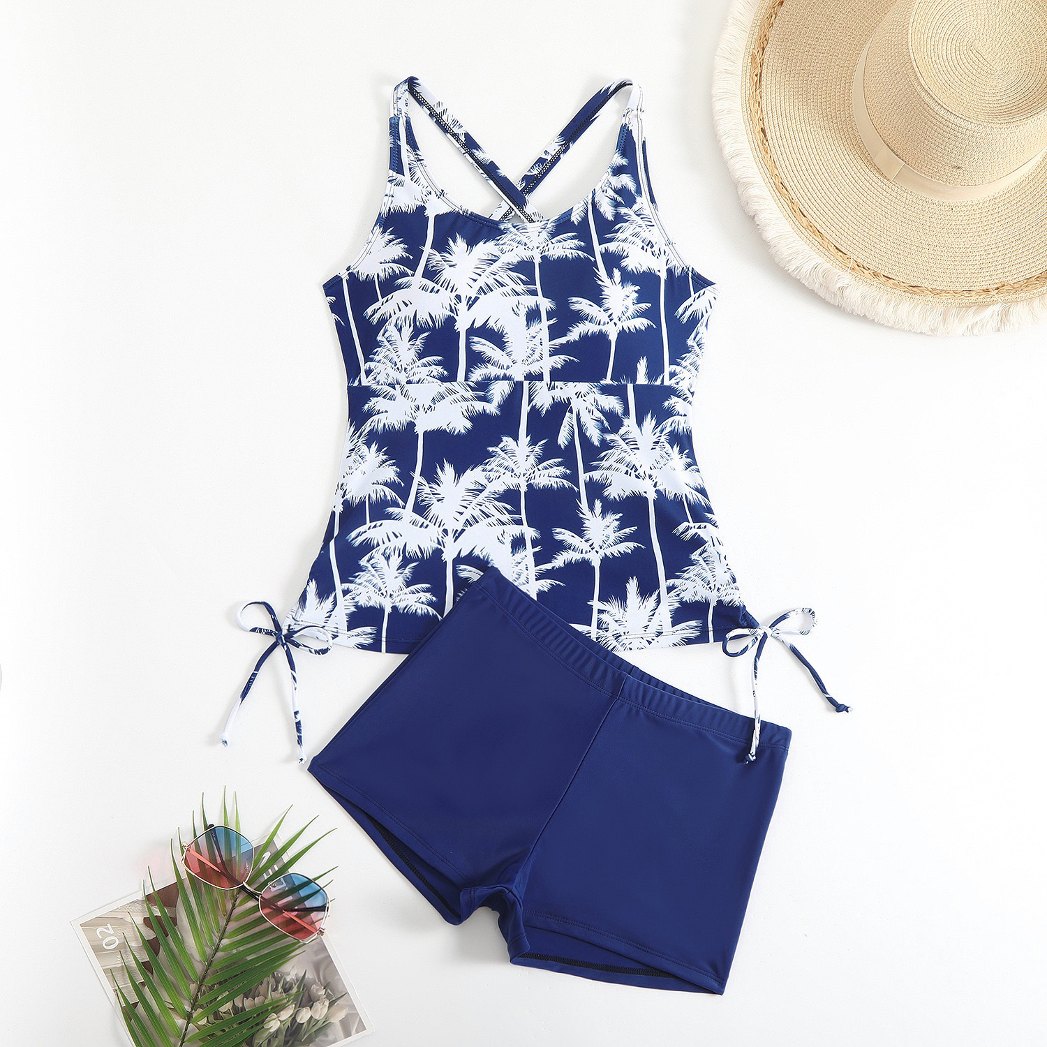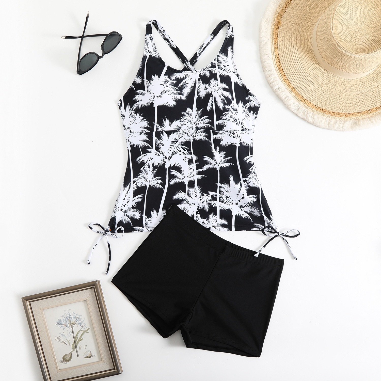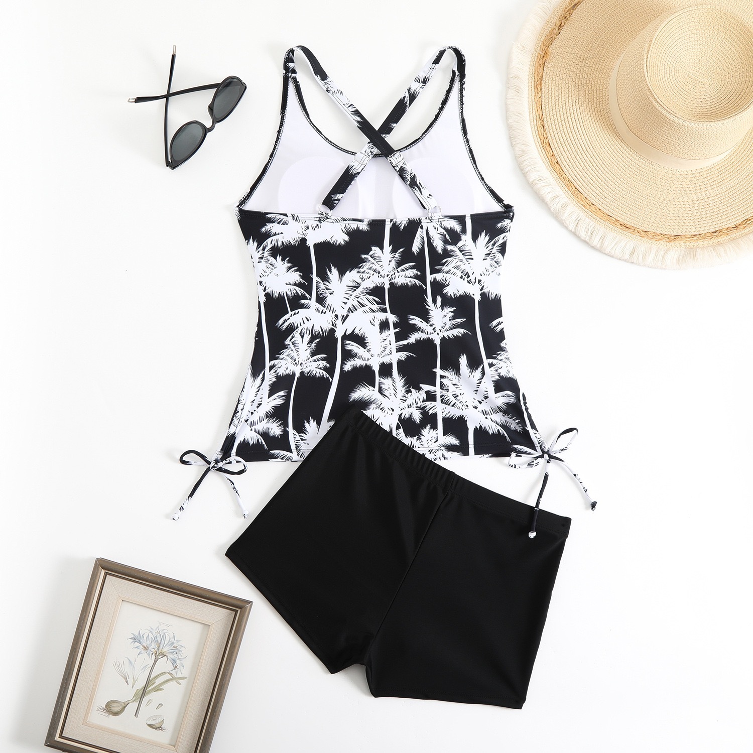 2025 유럽과 미국의 새로운 대외 무역 크로스보더 프린트 핫 소녀 꽉 끼는 등이없는 드로스트링 배를 덮는 슬리밍 스플릿 수영복 여성용스토어 가기