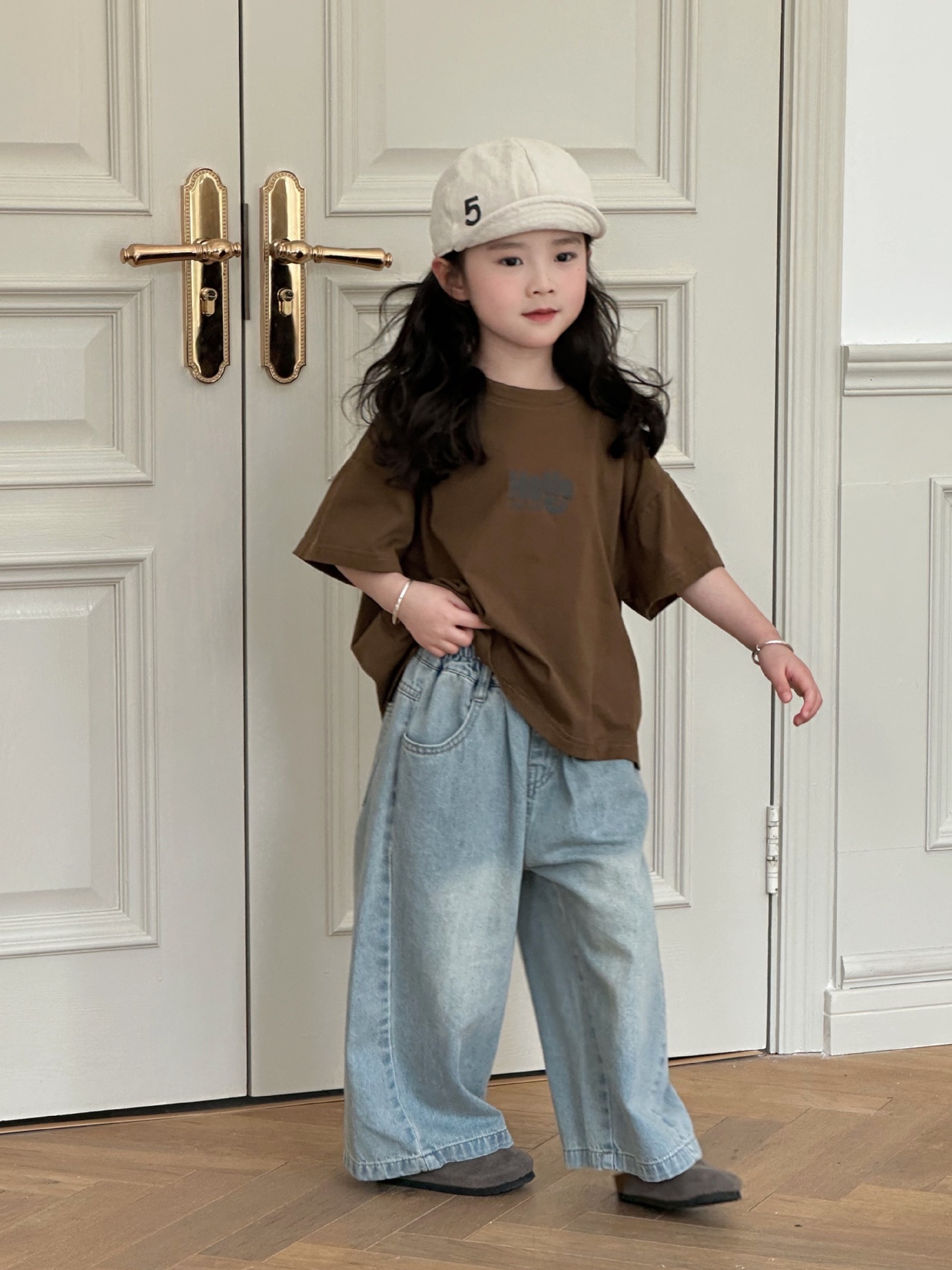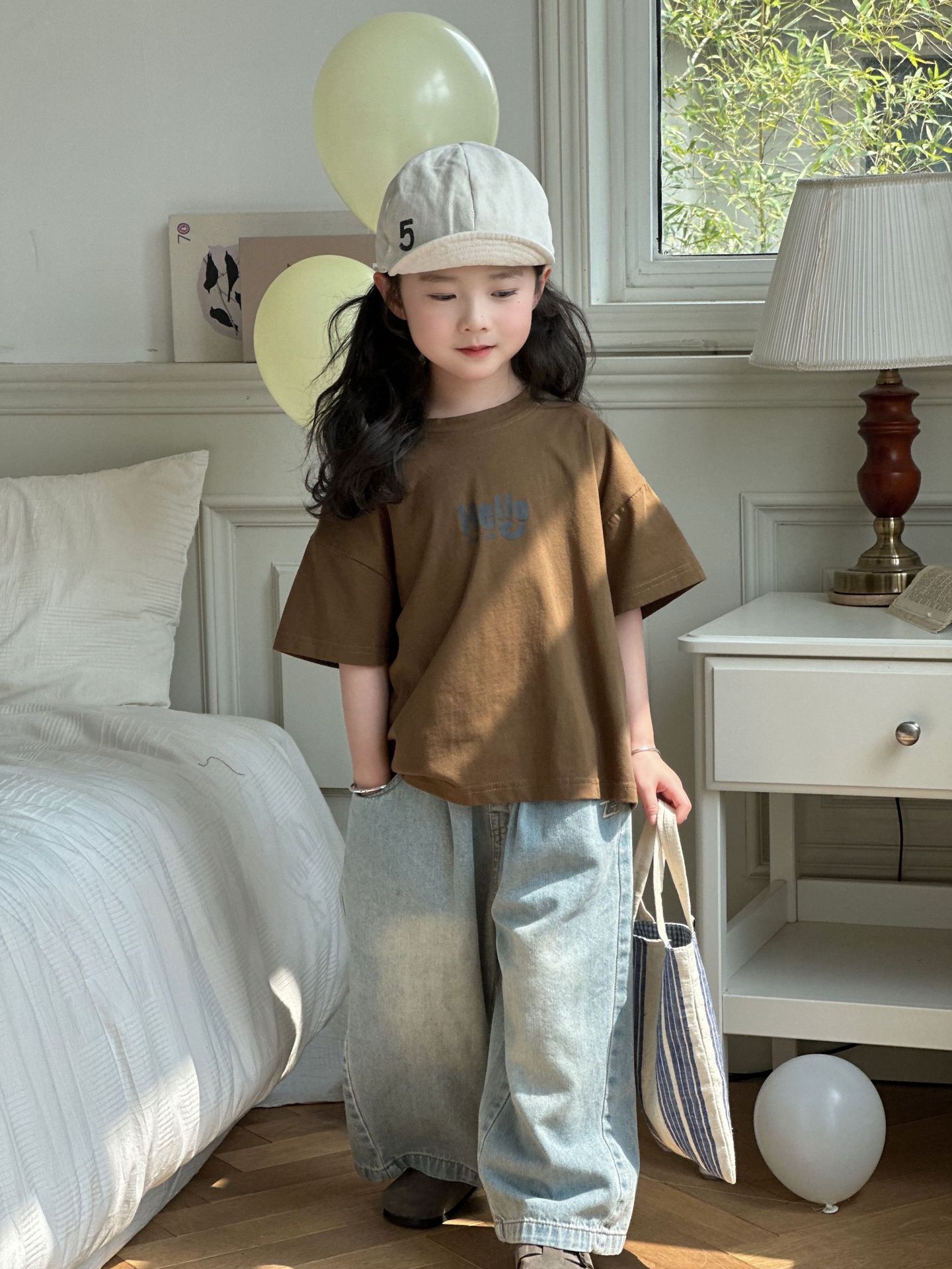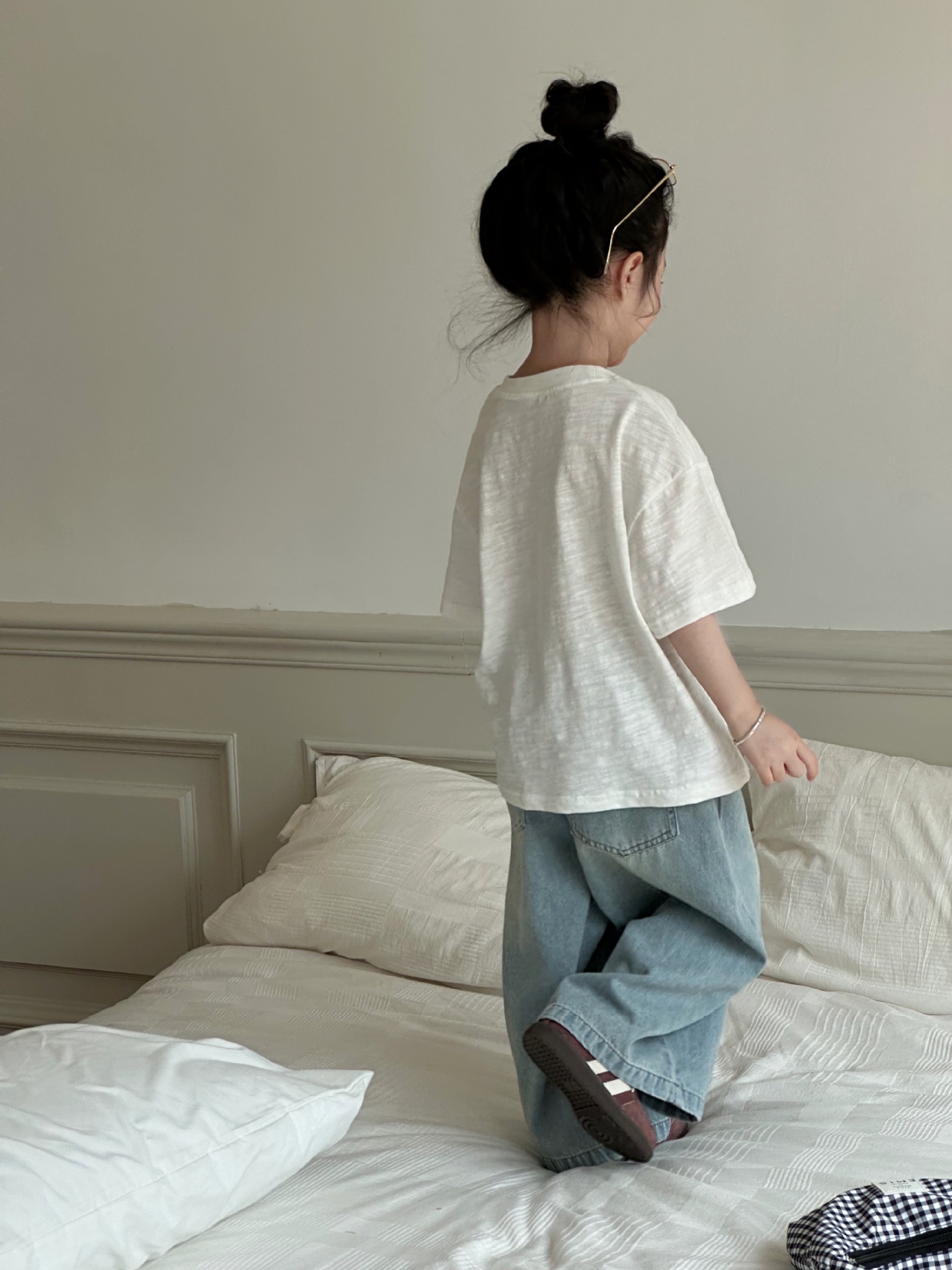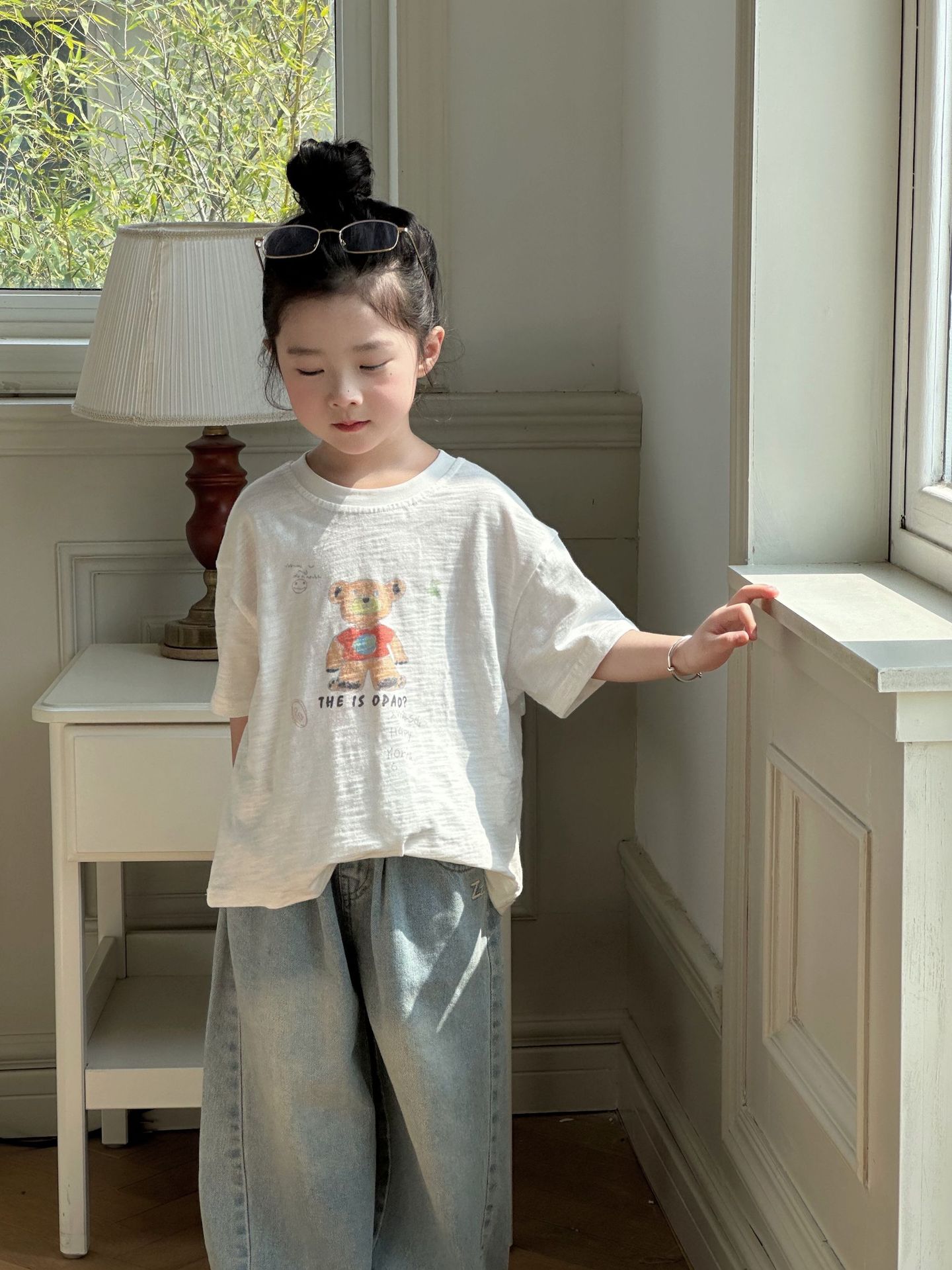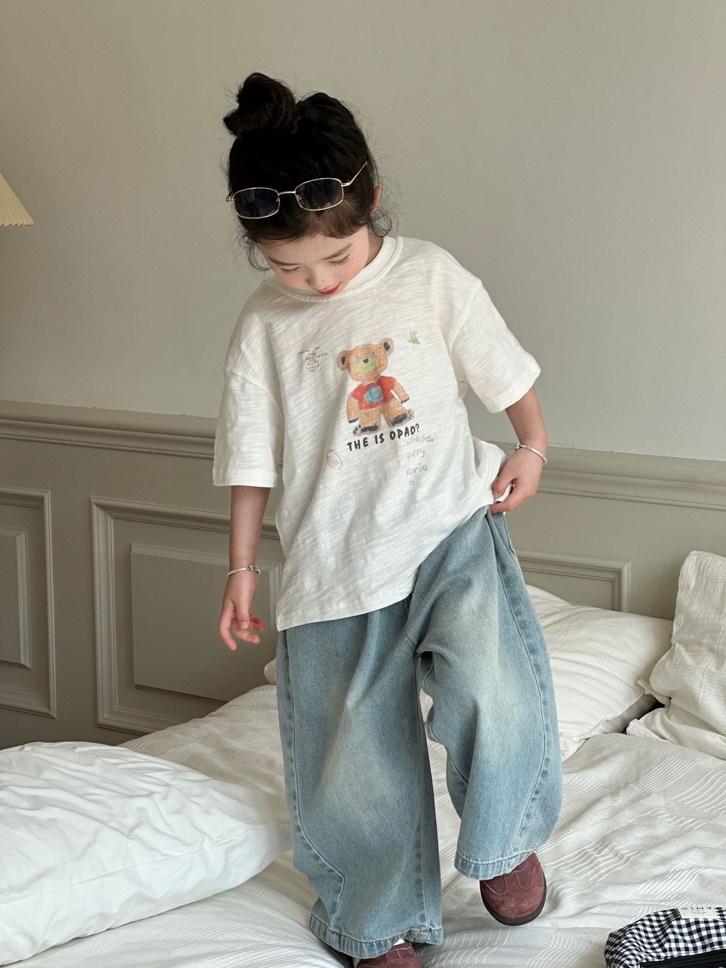 어린이 바지 한국 소녀 오래 된 부드러운 왁스 데님 스트레이트 바지 2024 새로운 아기 넓은 다리 바지스토어 가기