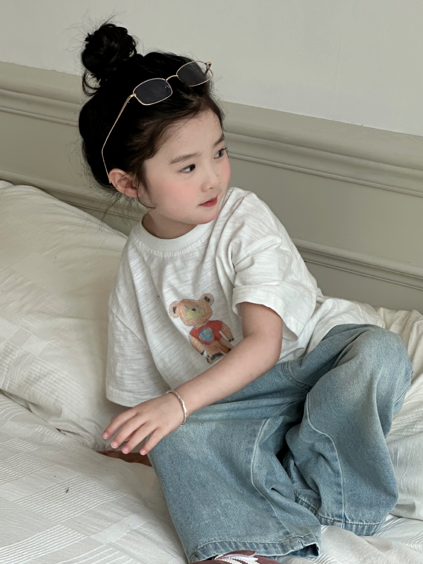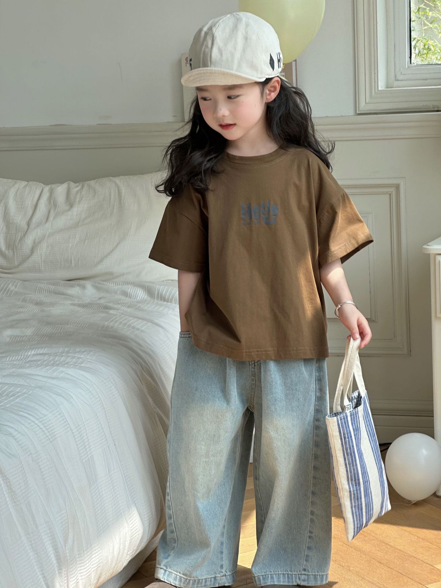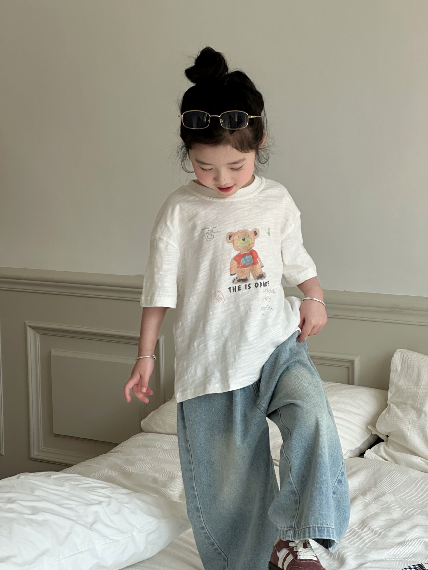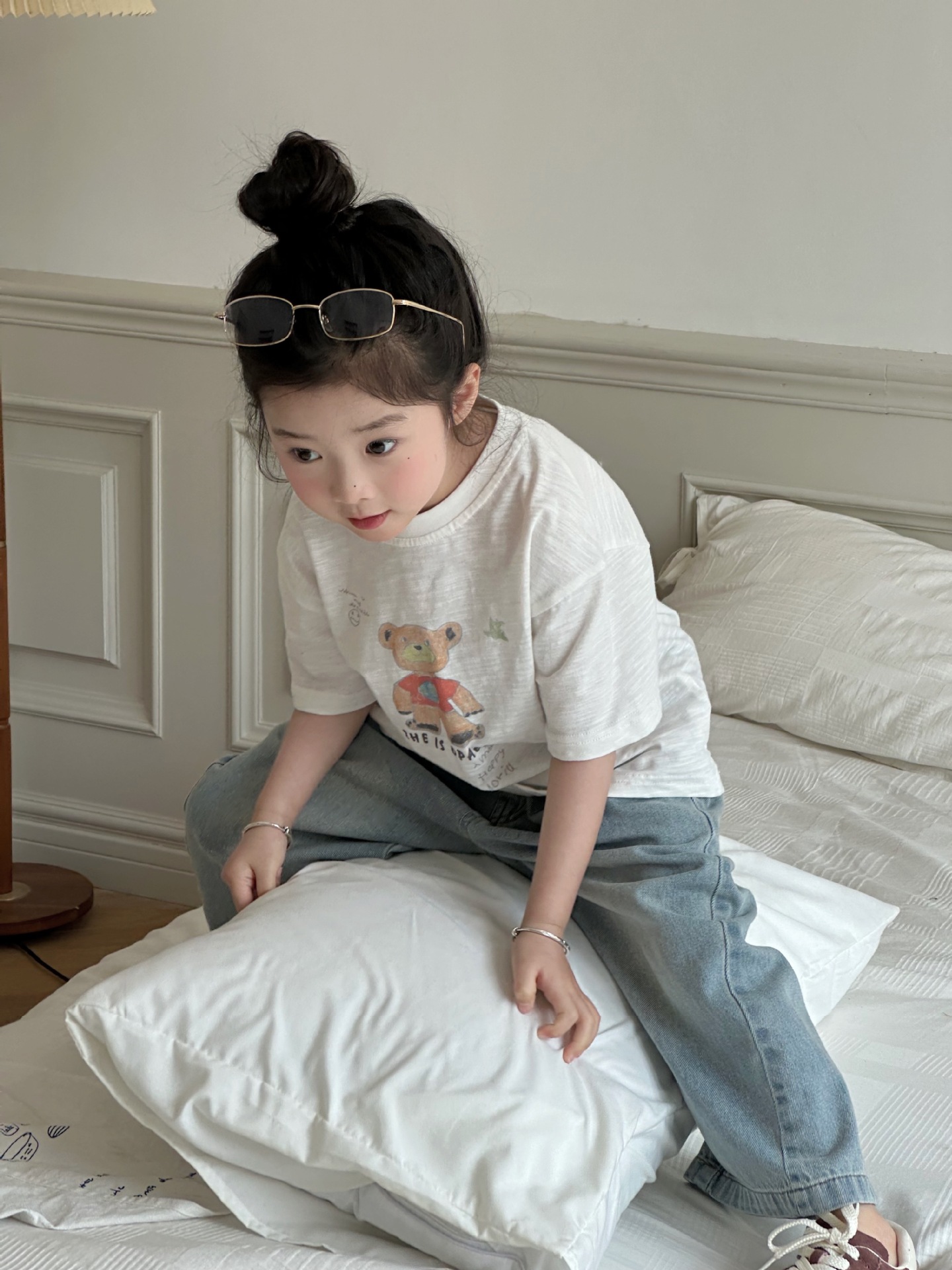 어린이 바지 한국 소녀 오래 된 부드러운 왁스 데님 스트레이트 바지 2024 새로운 아기 넓은 다리 바지스토어 가기