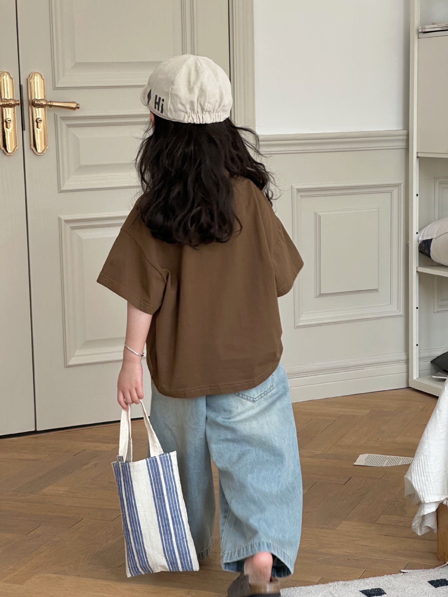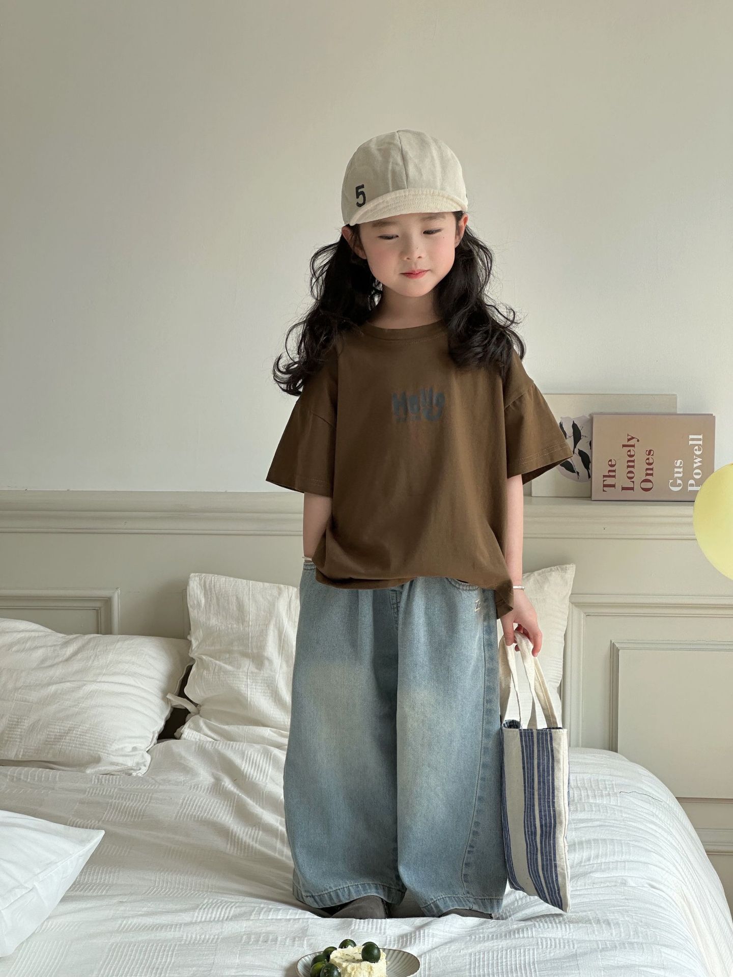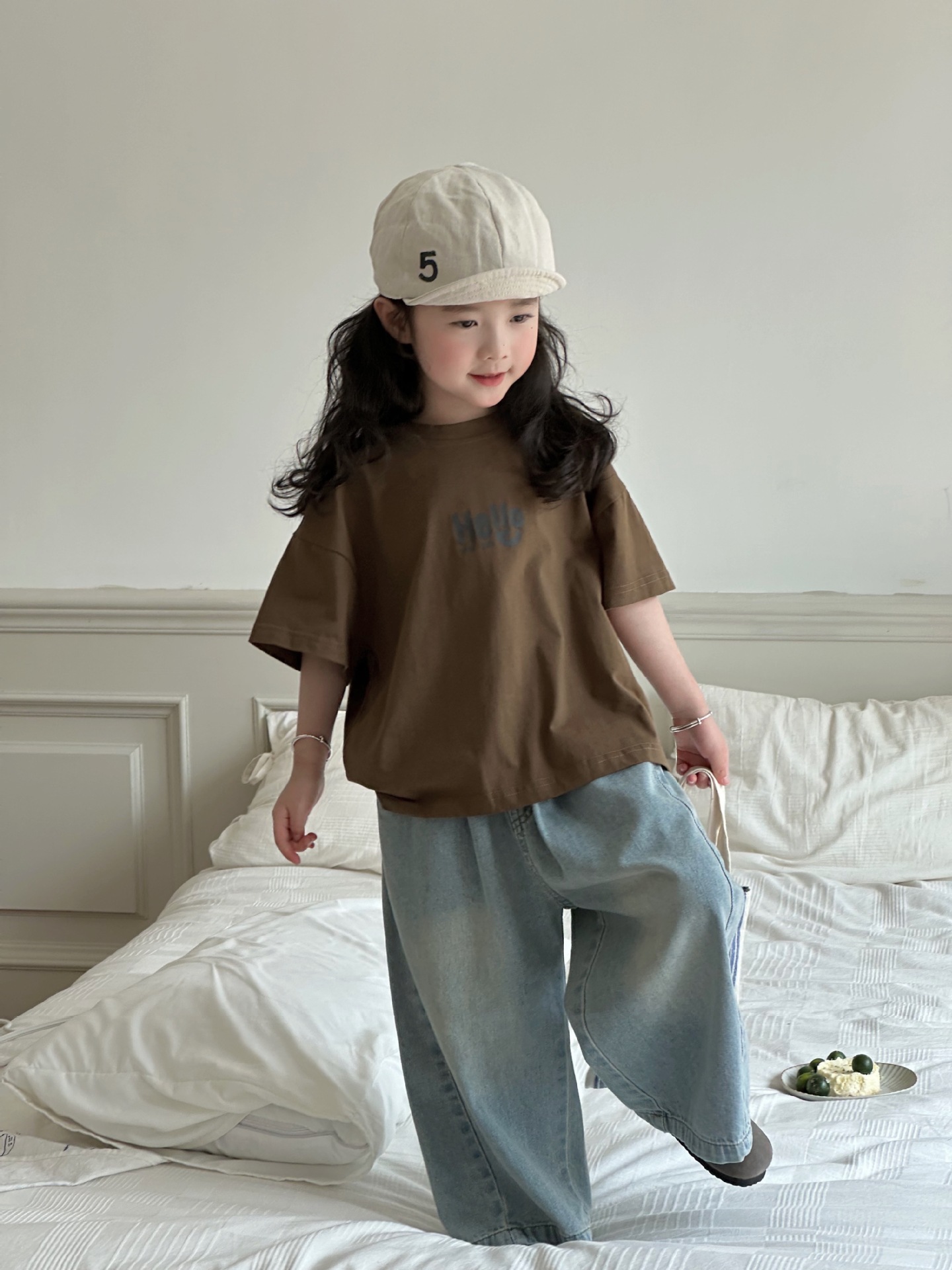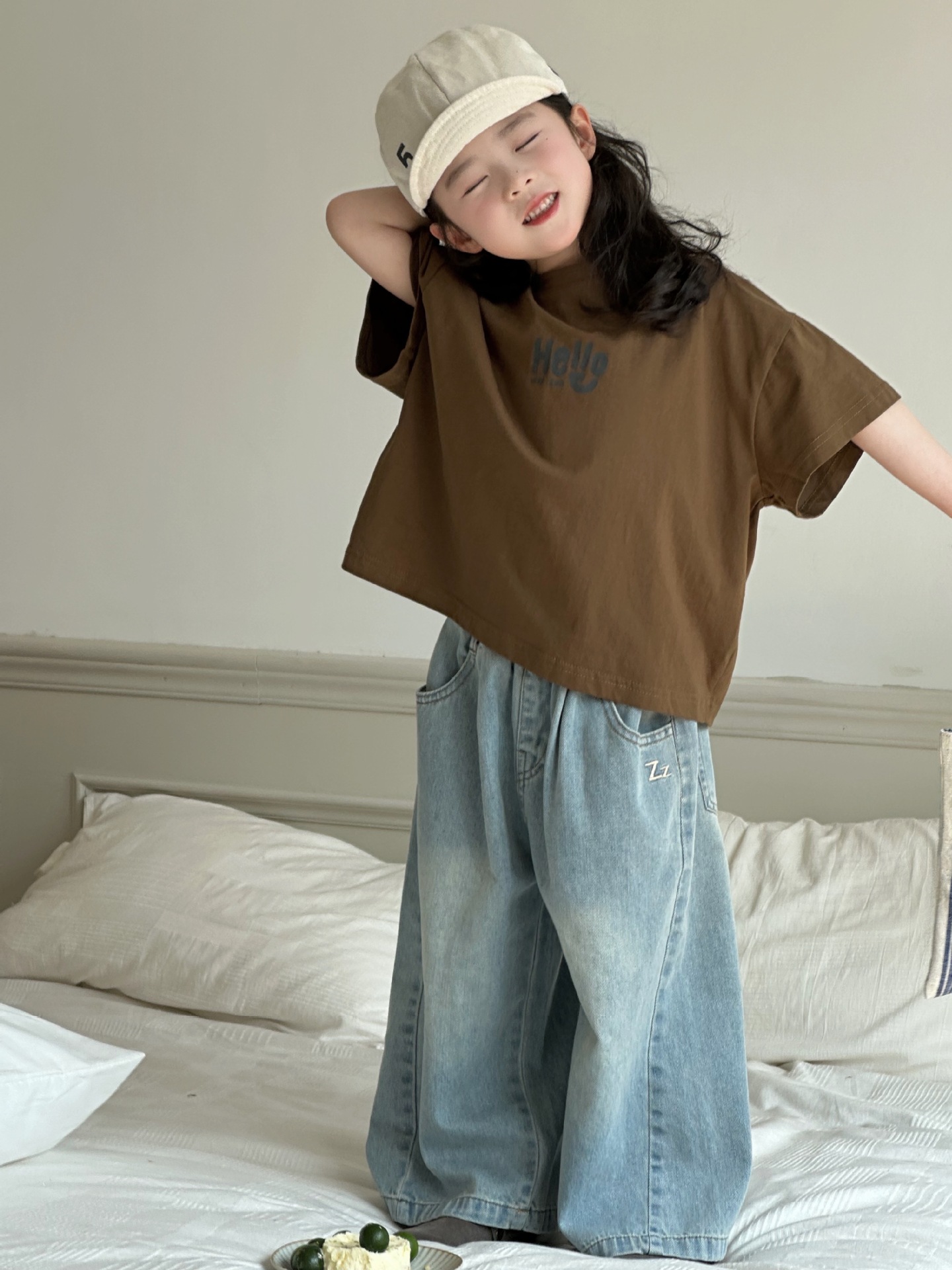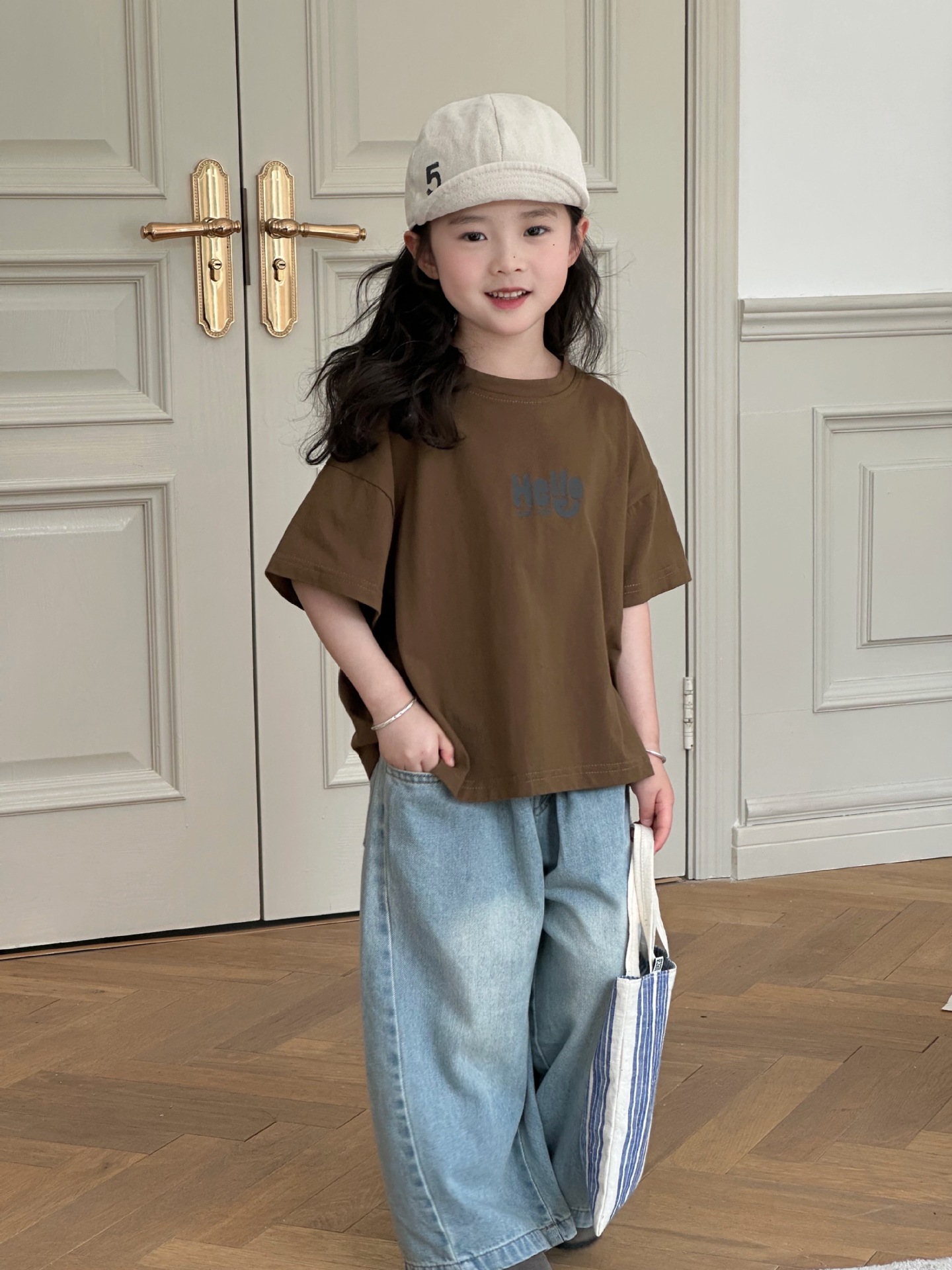 어린이 바지 한국 소녀 오래 된 부드러운 왁스 데님 스트레이트 바지 2024 새로운 아기 넓은 다리 바지스토어 가기
