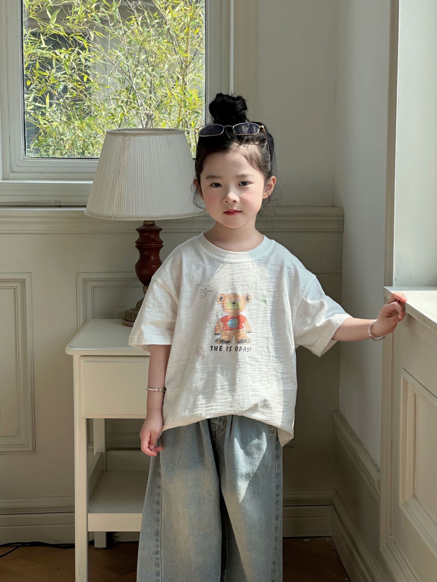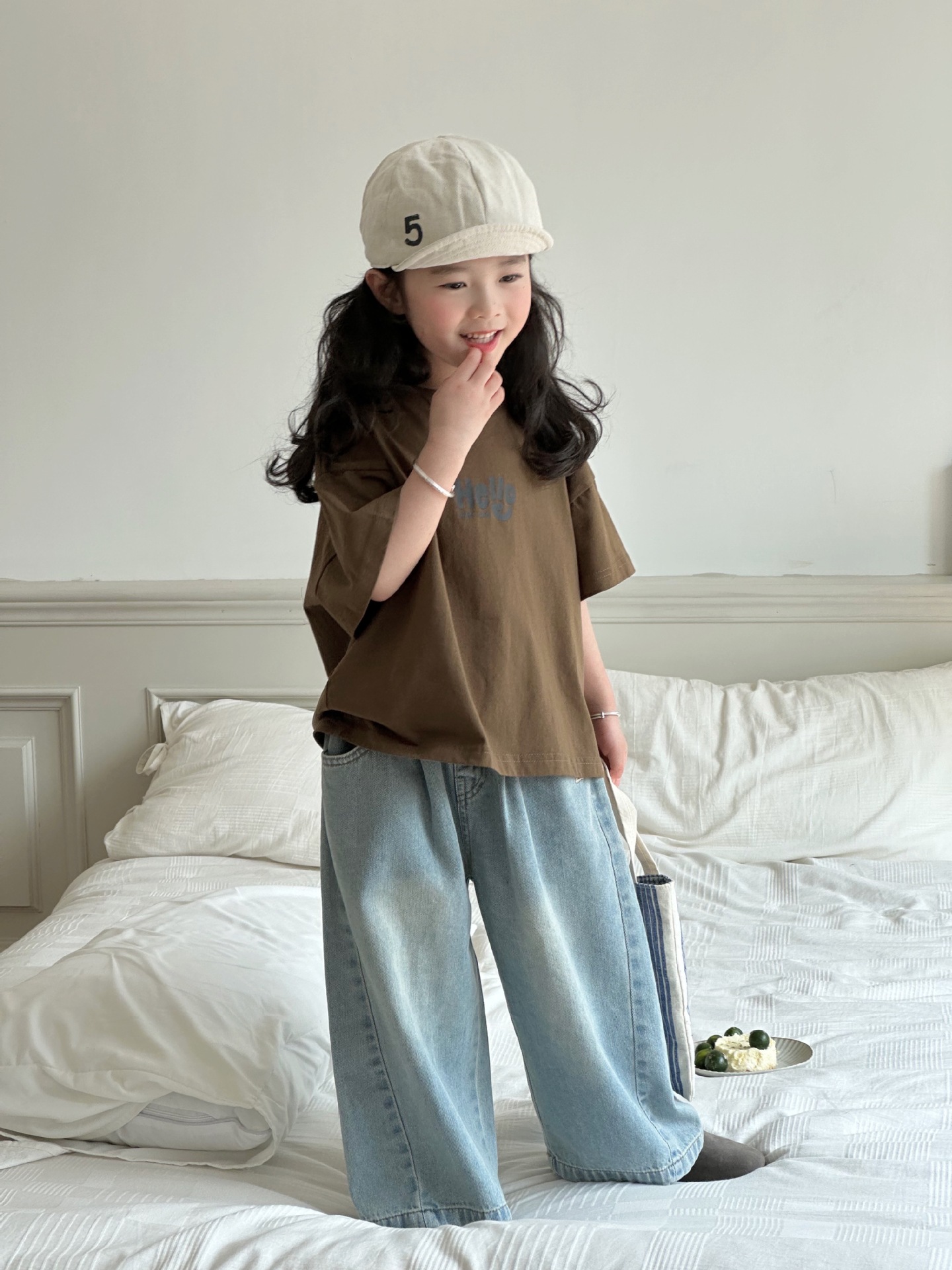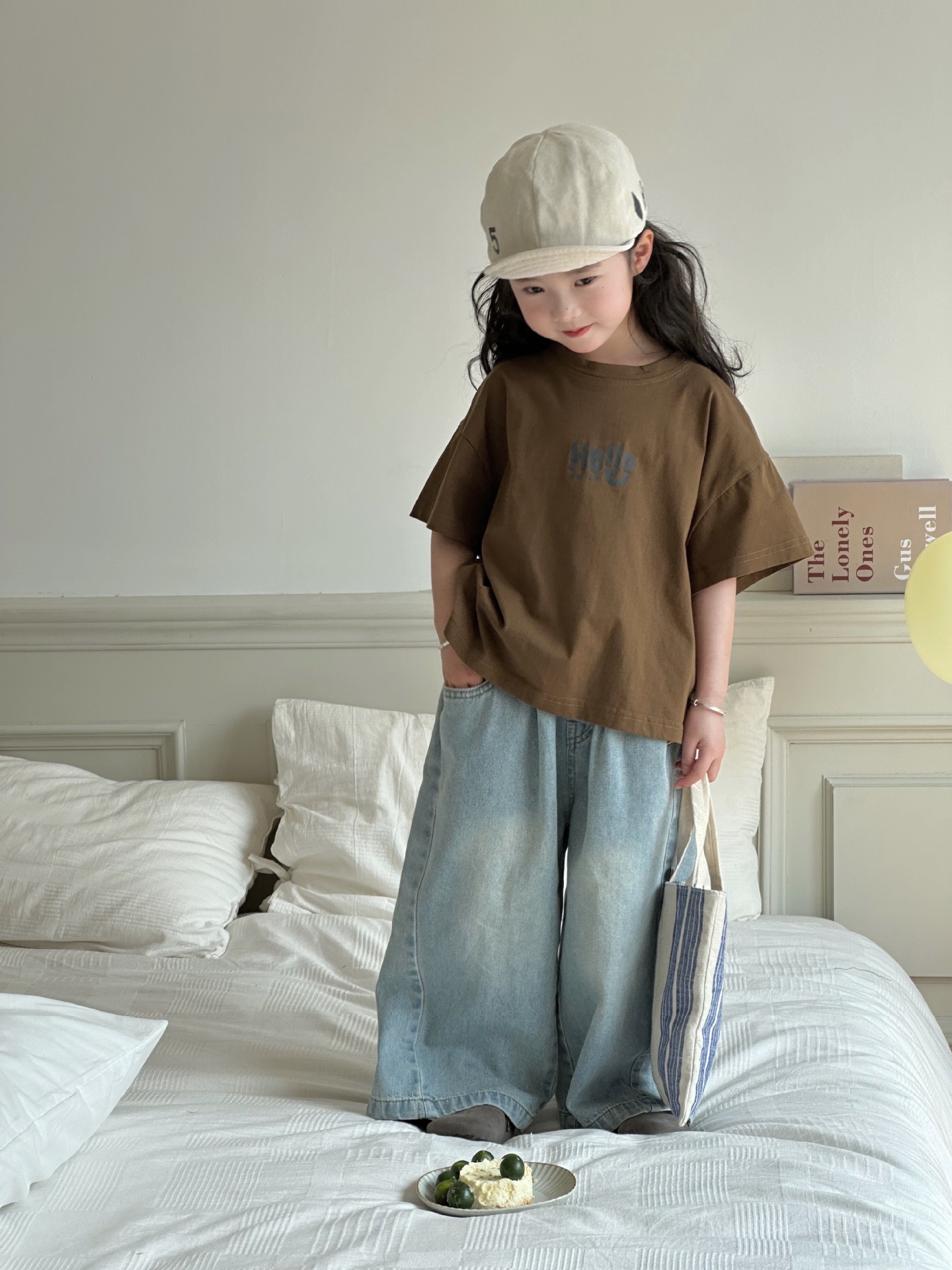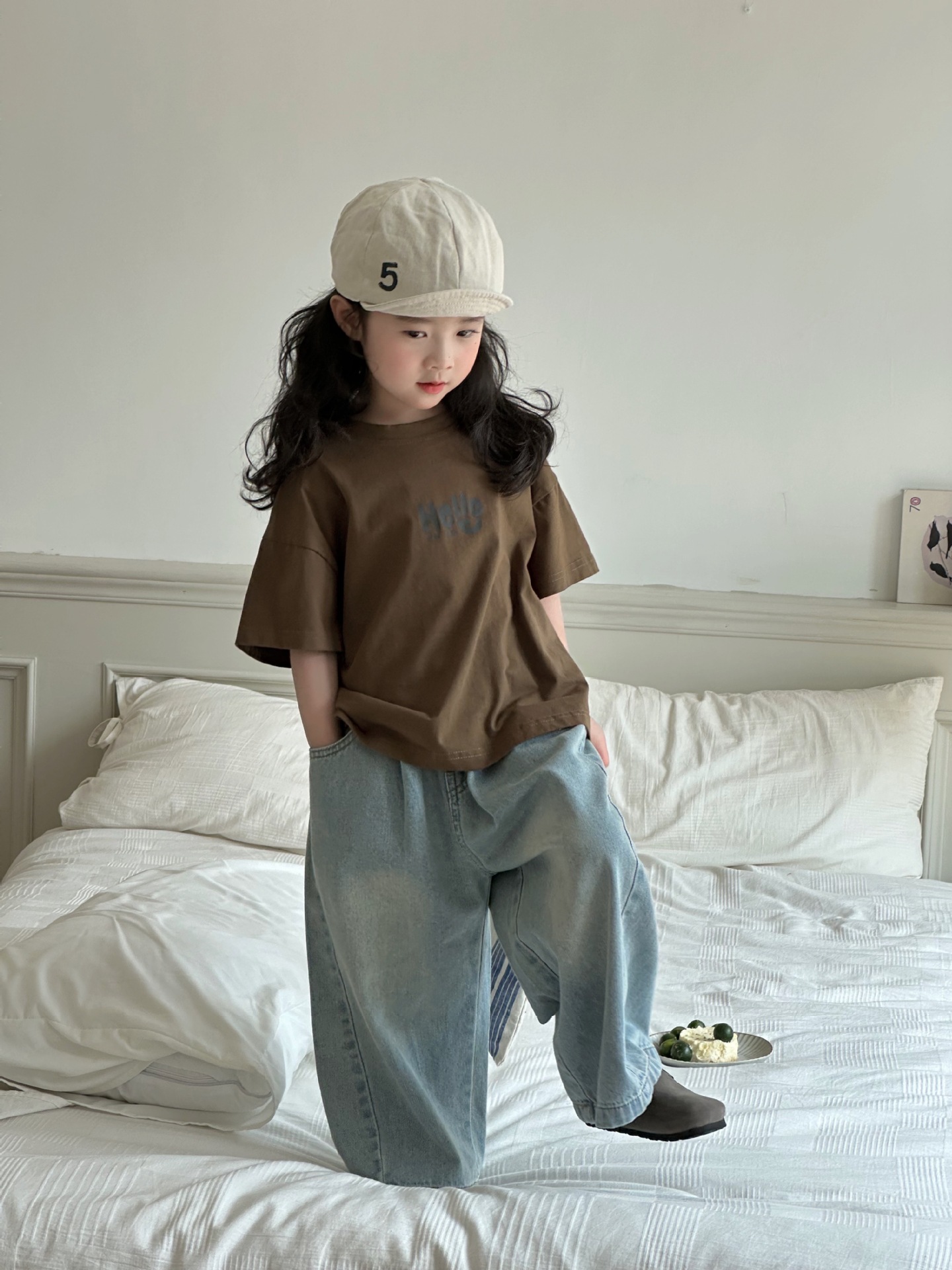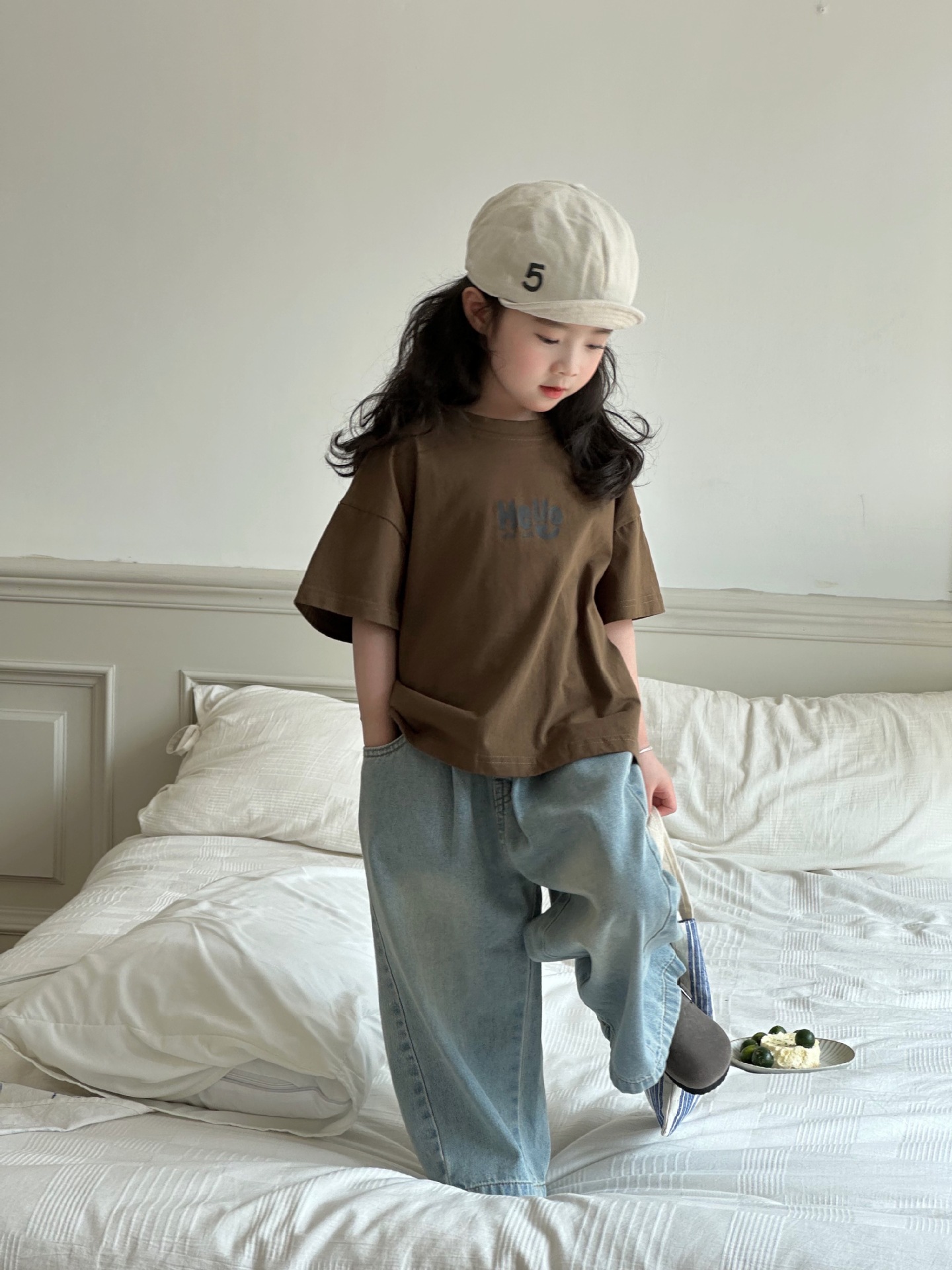 어린이 바지 한국 소녀 오래 된 부드러운 왁스 데님 스트레이트 바지 2024 새로운 아기 넓은 다리 바지스토어 가기
