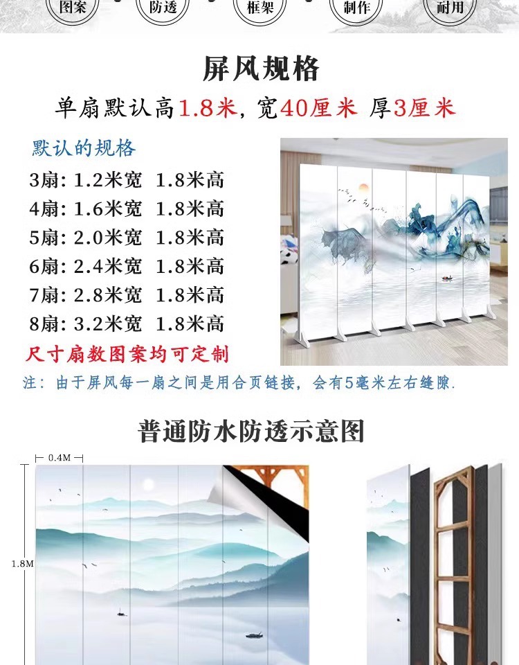 • 4개의 침투 방지 팬: 길이 1.6m * 높이 1.8m (베이스 + 도르래 포함)
