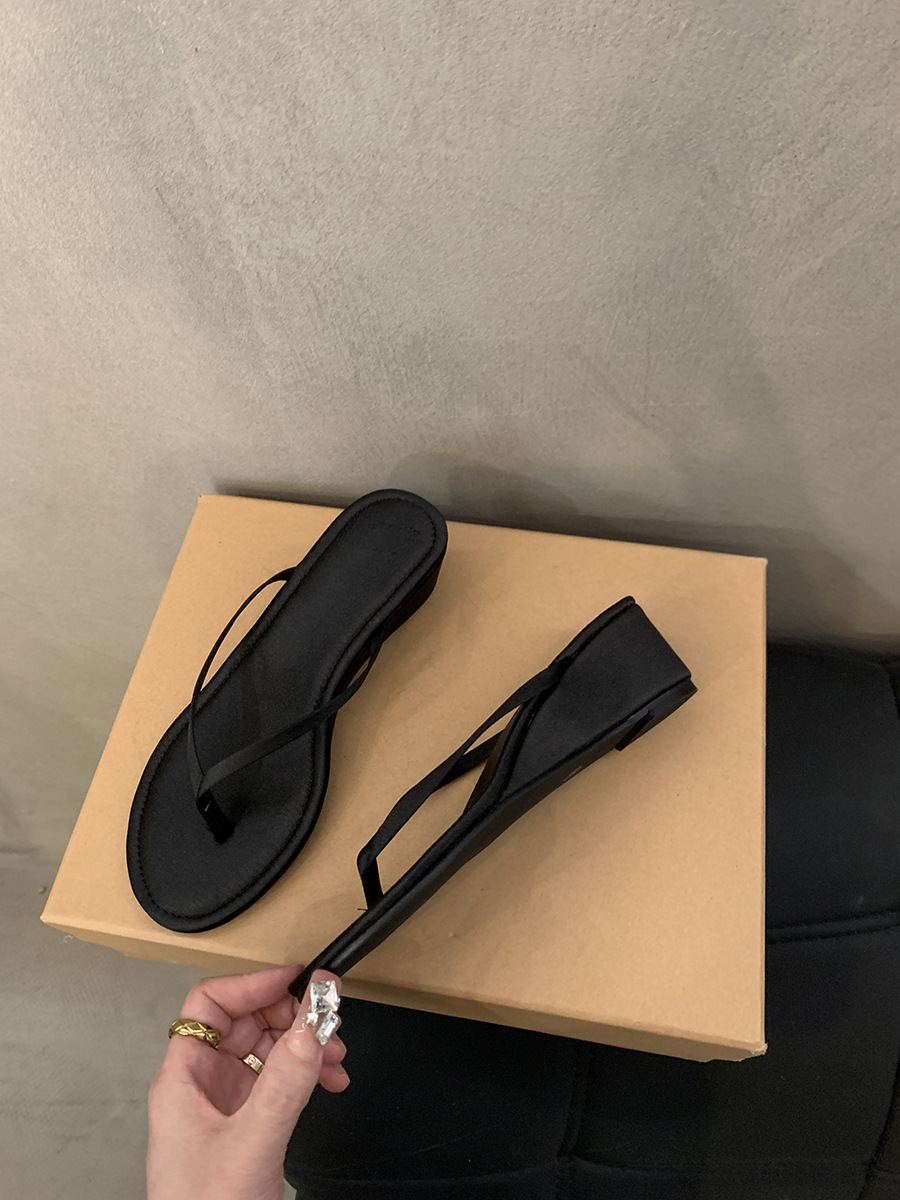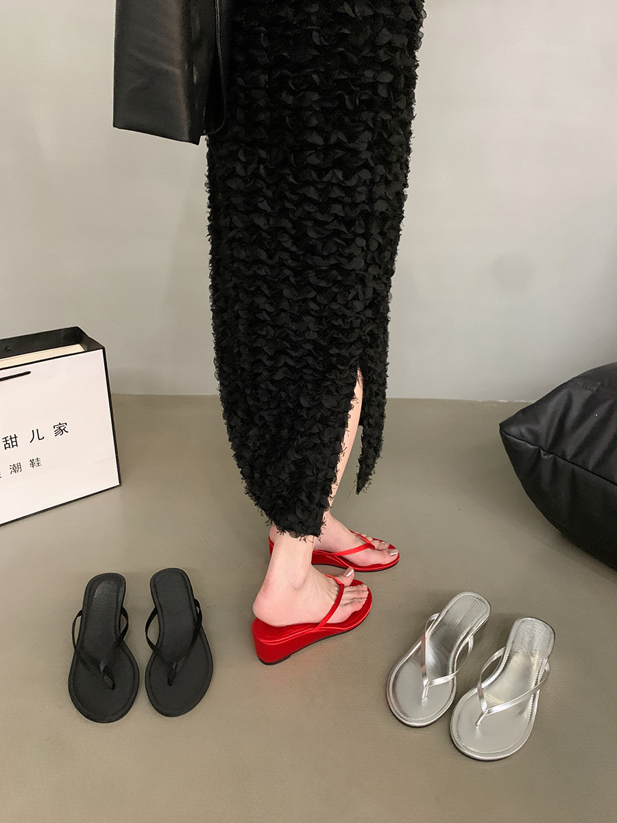 웨지 레드 클립 플립 플롭 페어리 슈즈 외부 착용 2025 여름 우아한 샌들 프렌치 하이힐 샌들스토어 가기