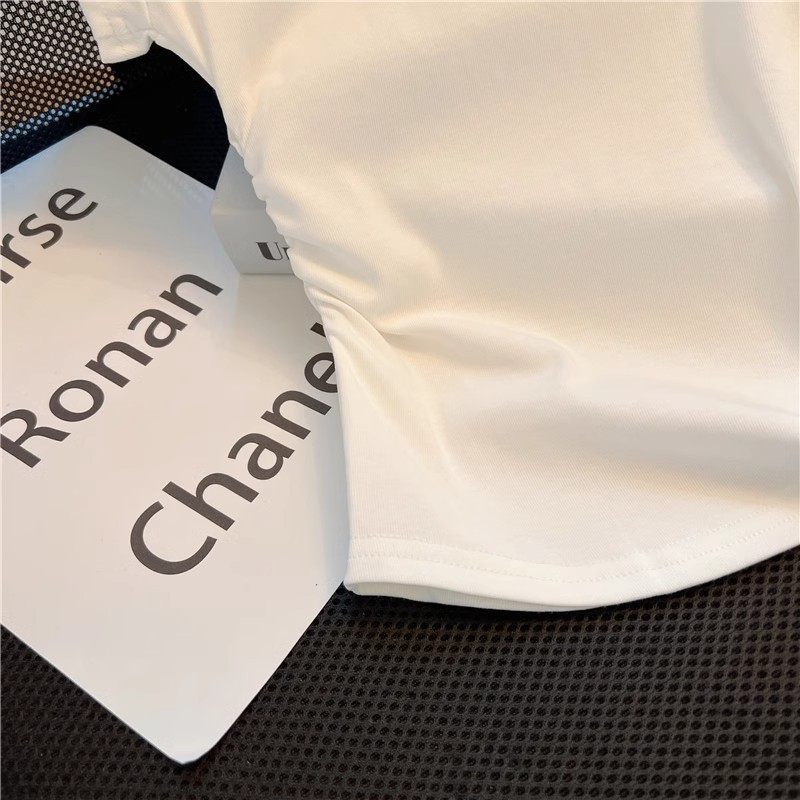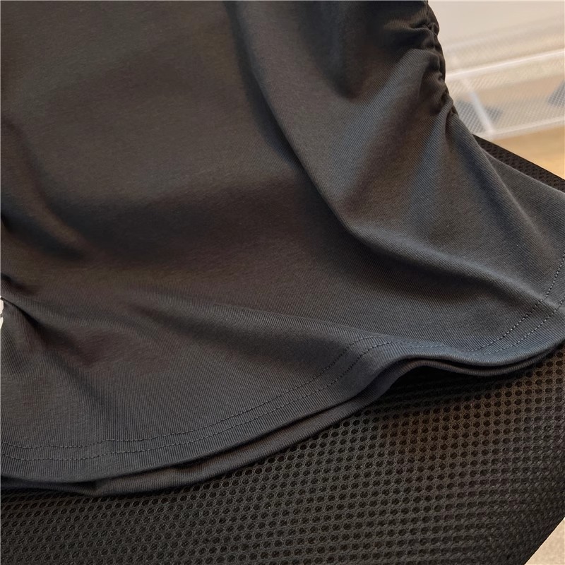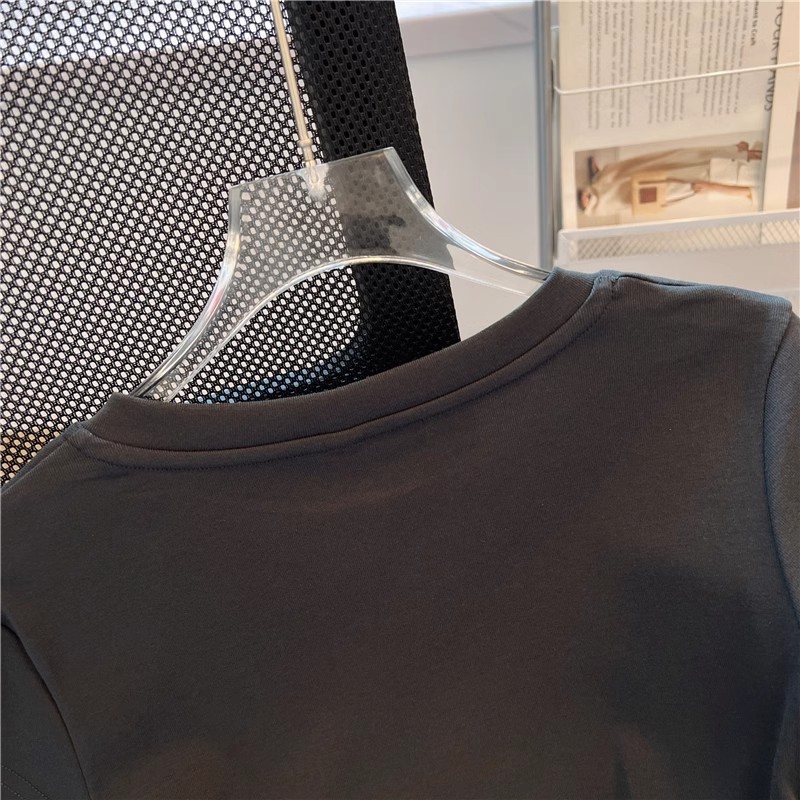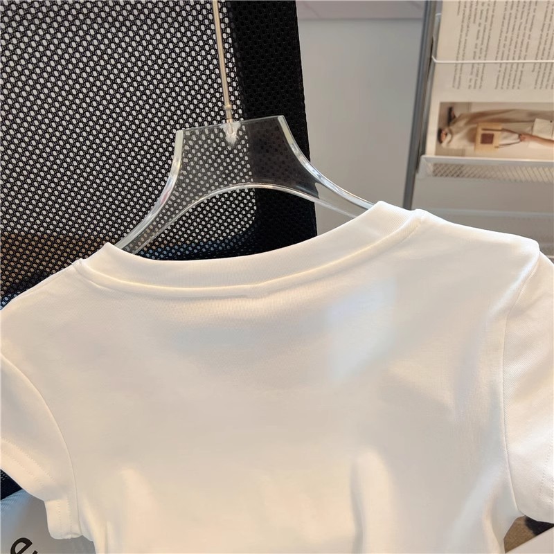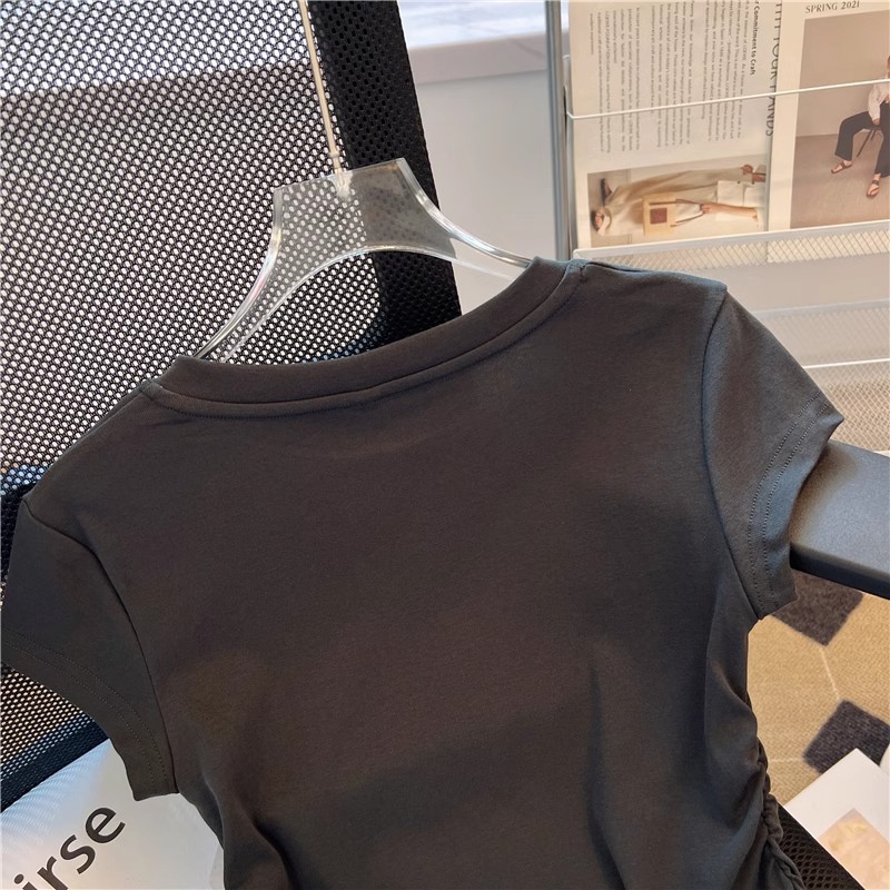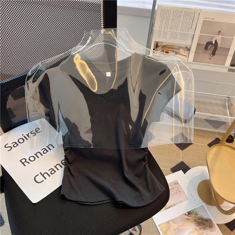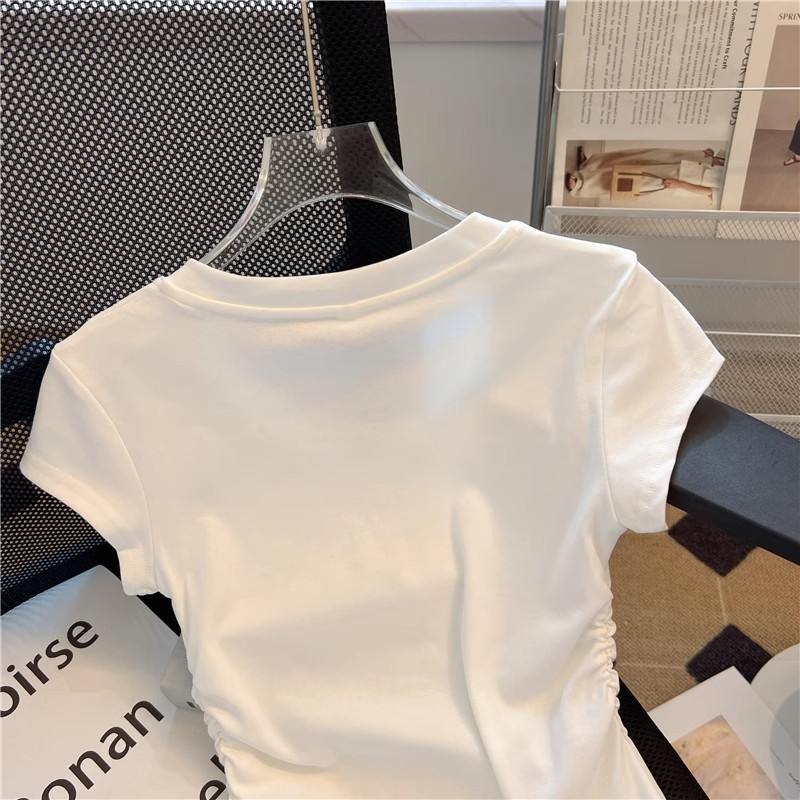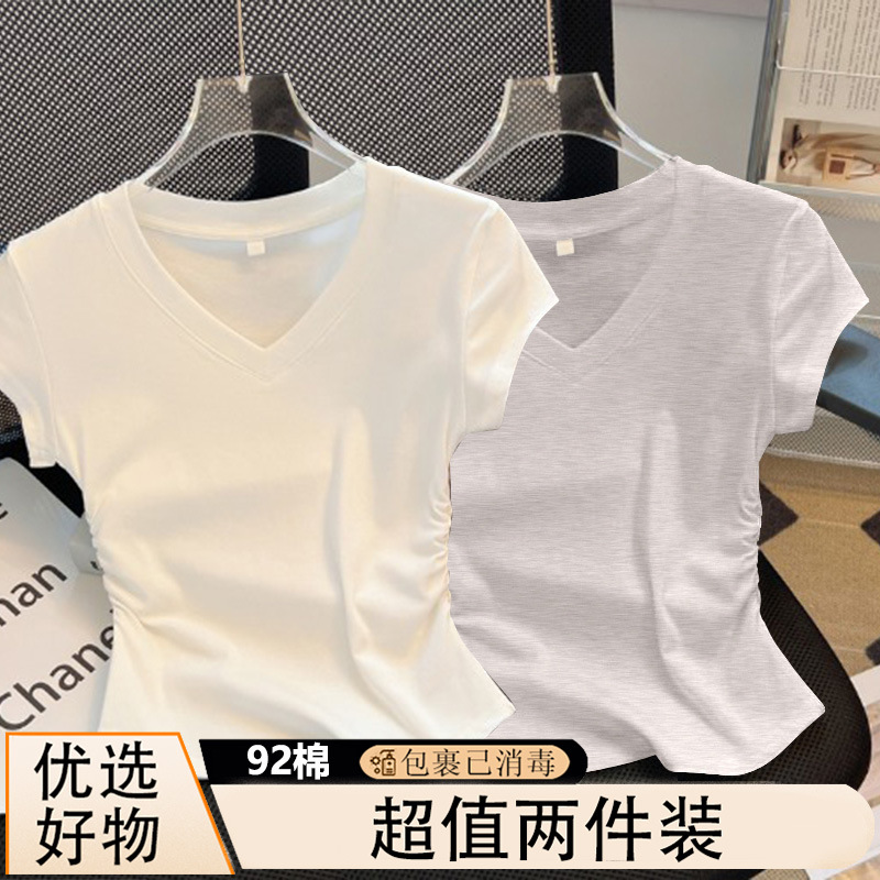 2025 여름 새로운 코튼 V 넥 슬림 핏 반팔 티셔츠 여성용 스파이스 걸스 숄더베이스 셔츠 주름 허리 탑 옷스토어 가기