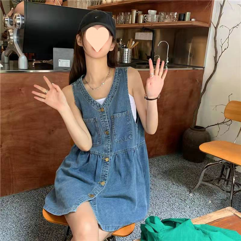 여름 얇은 데님 스커트 슬링 원피스 여성의 2025 새로운 스트랩 스커트 작은 민소매 조끼 스커트스토어 가기