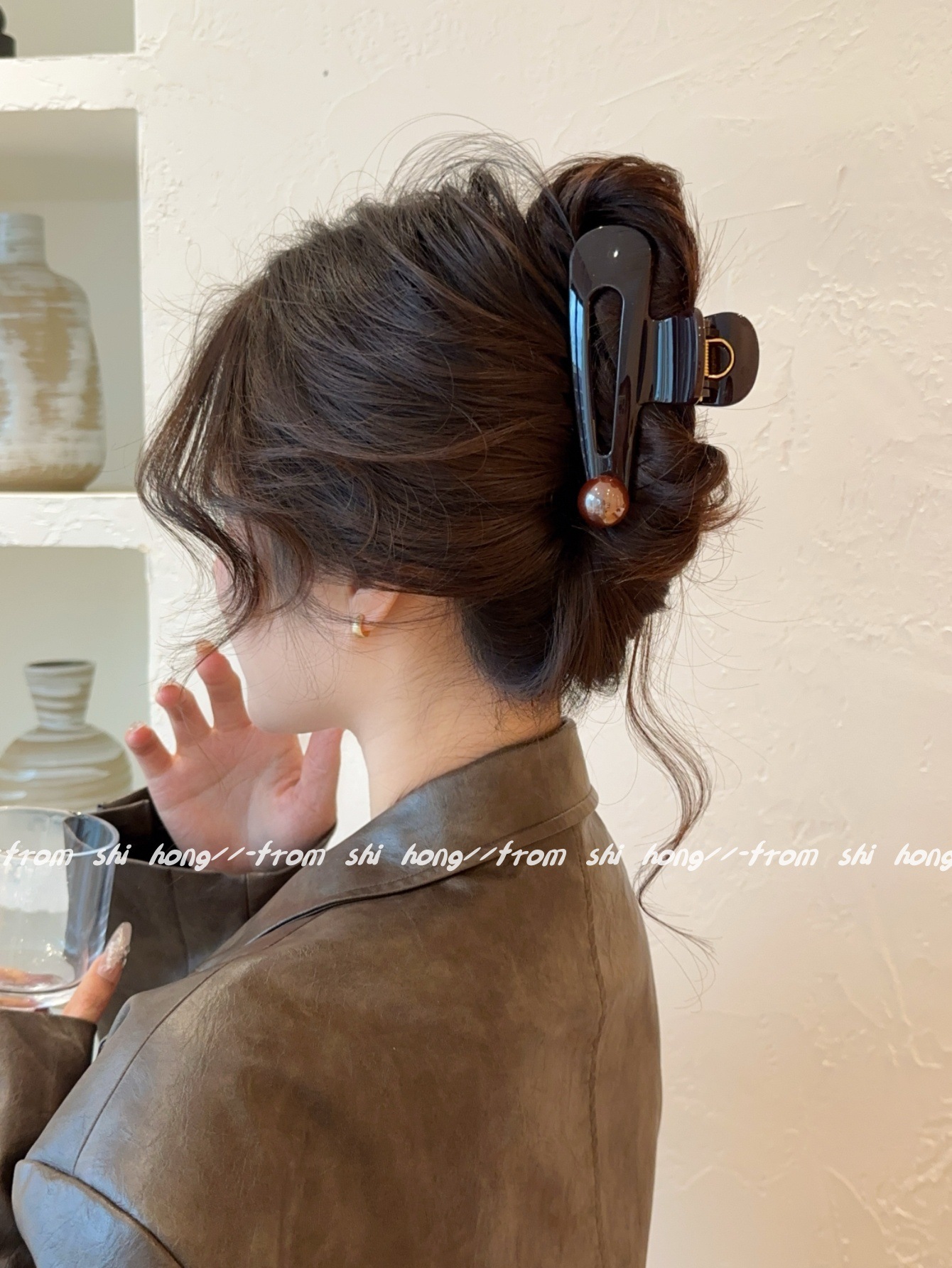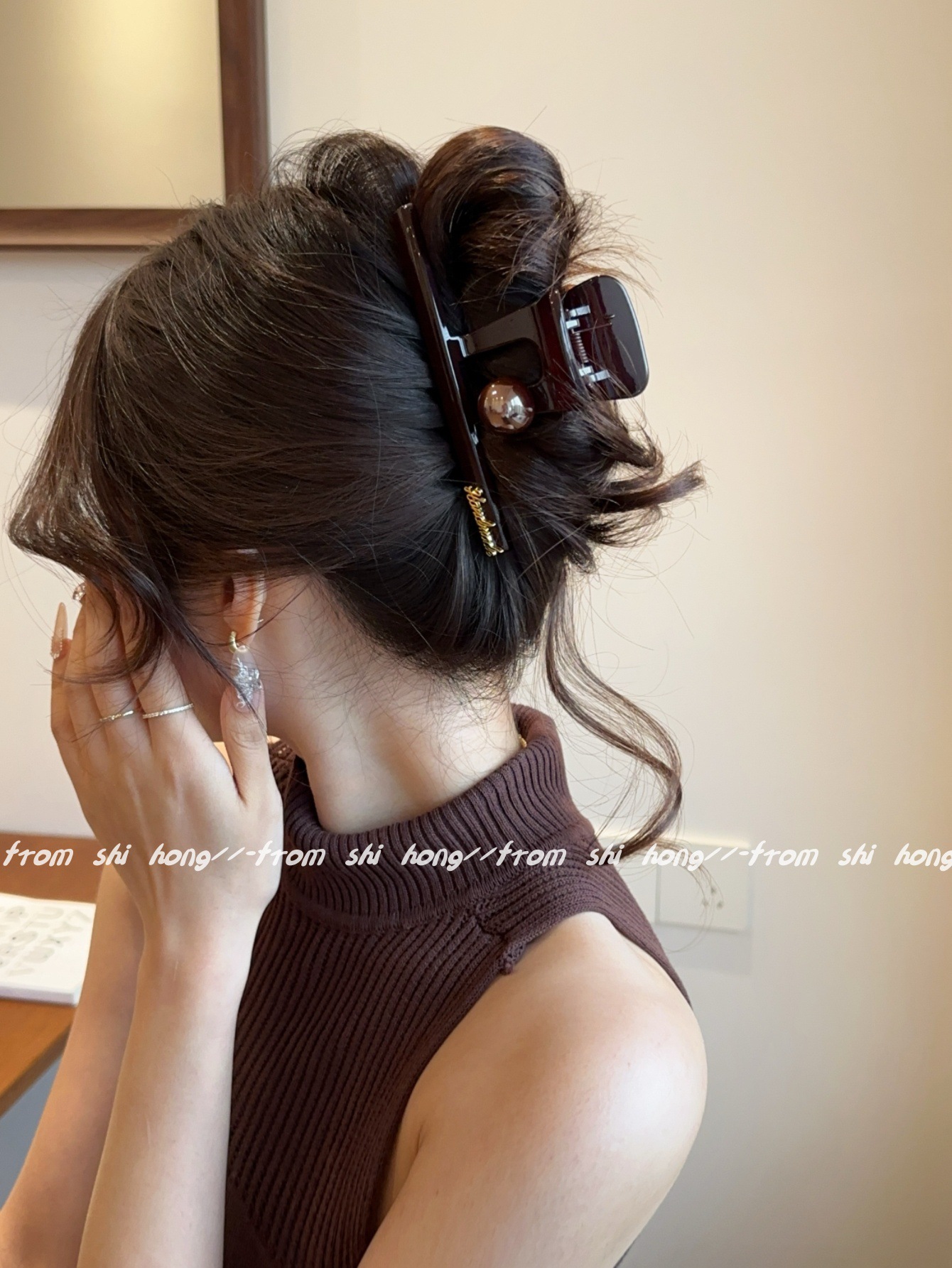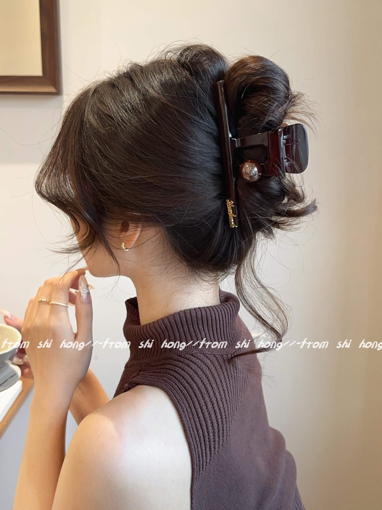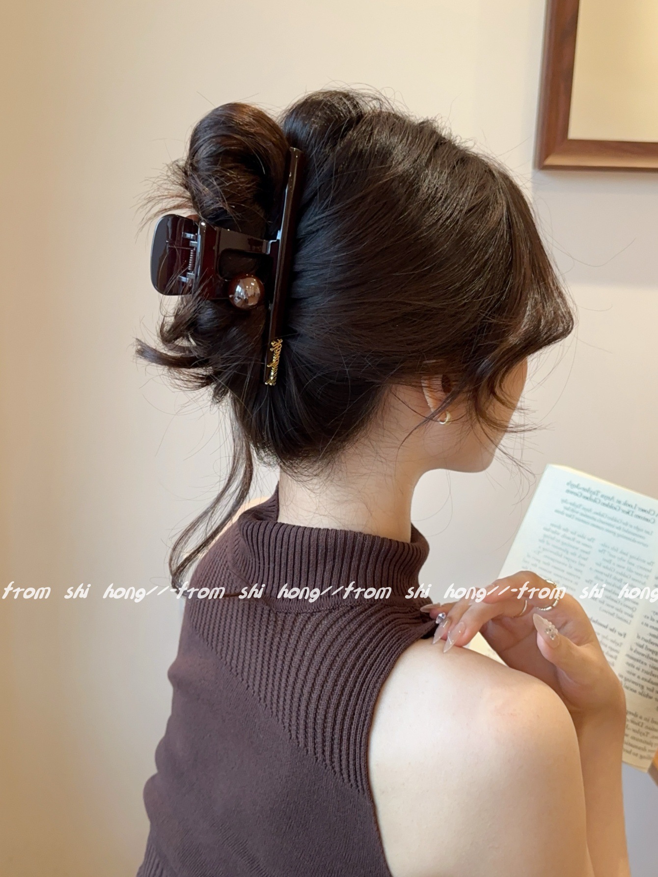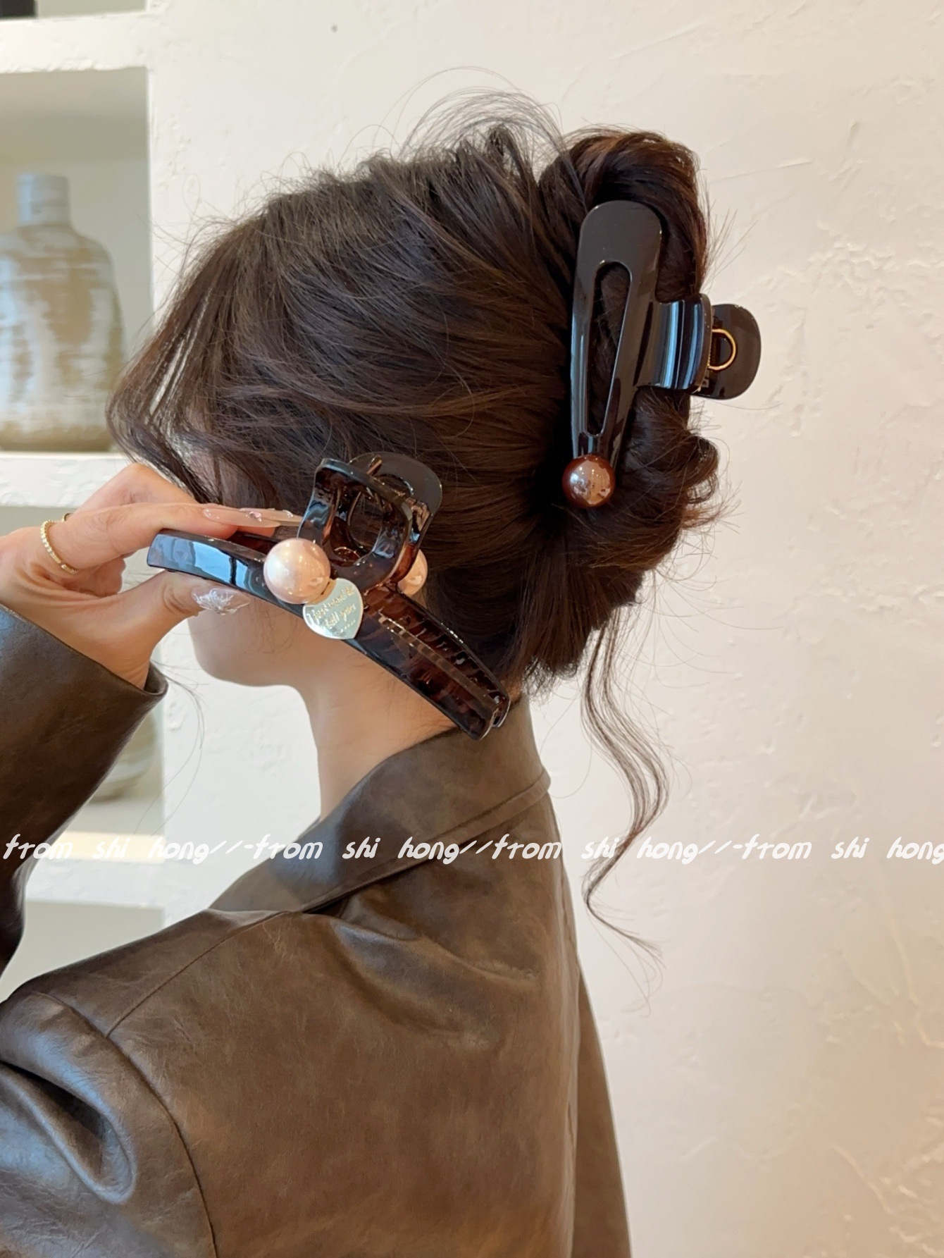 빈티지 다크 브라운 펄 그랩 클립 여성용 하이 엔드 2025 새로운 스타일의 머리 머리 머리 큰 상어 클립 헤어핀 헤드웨어스토어 가기