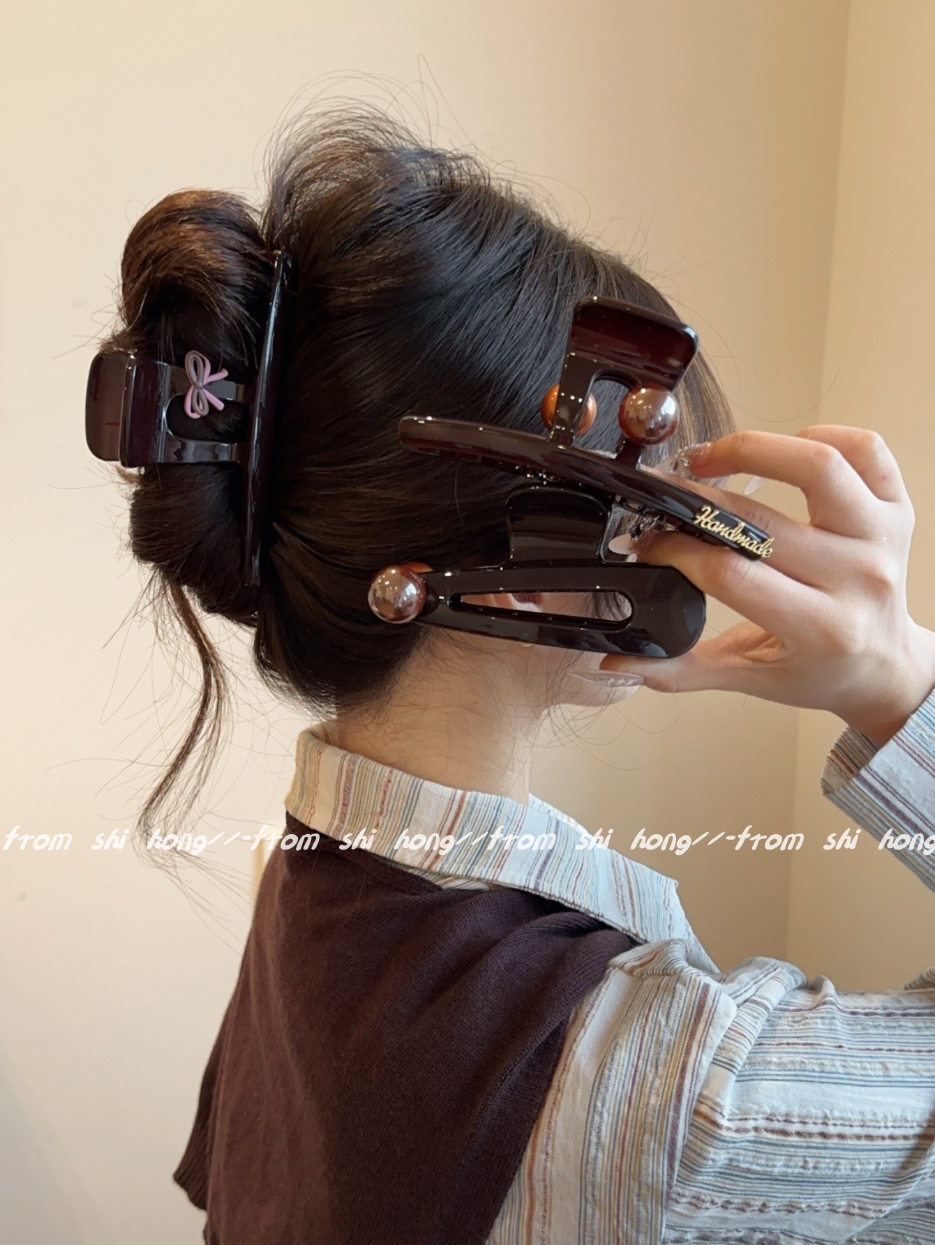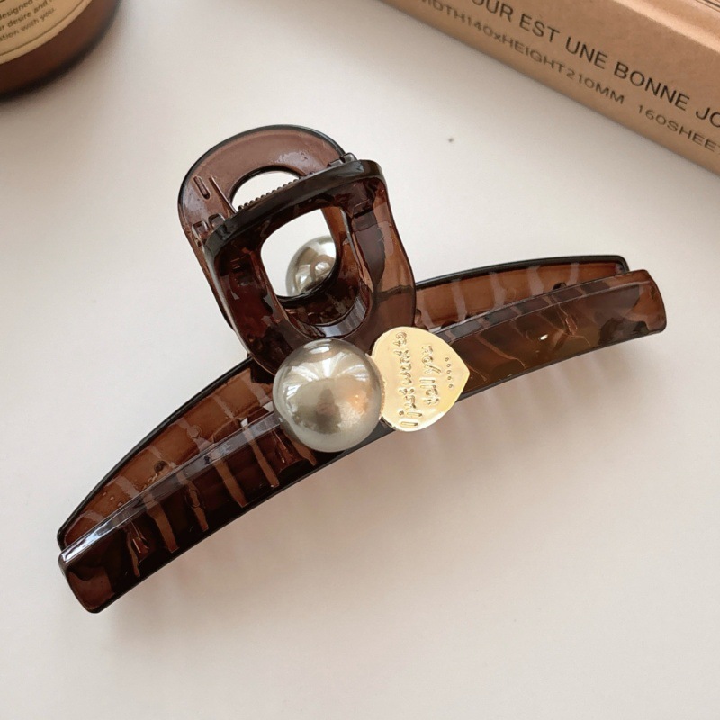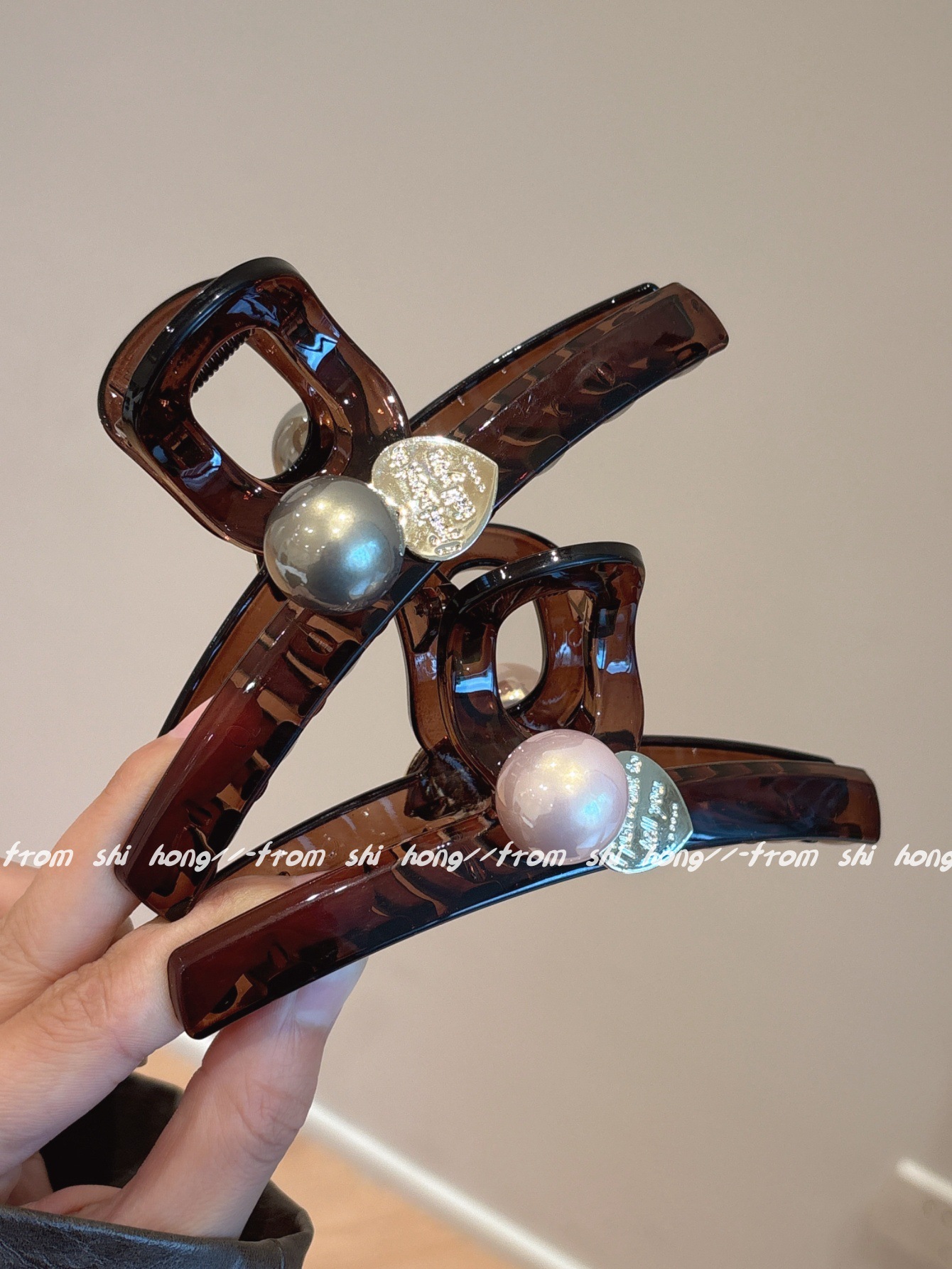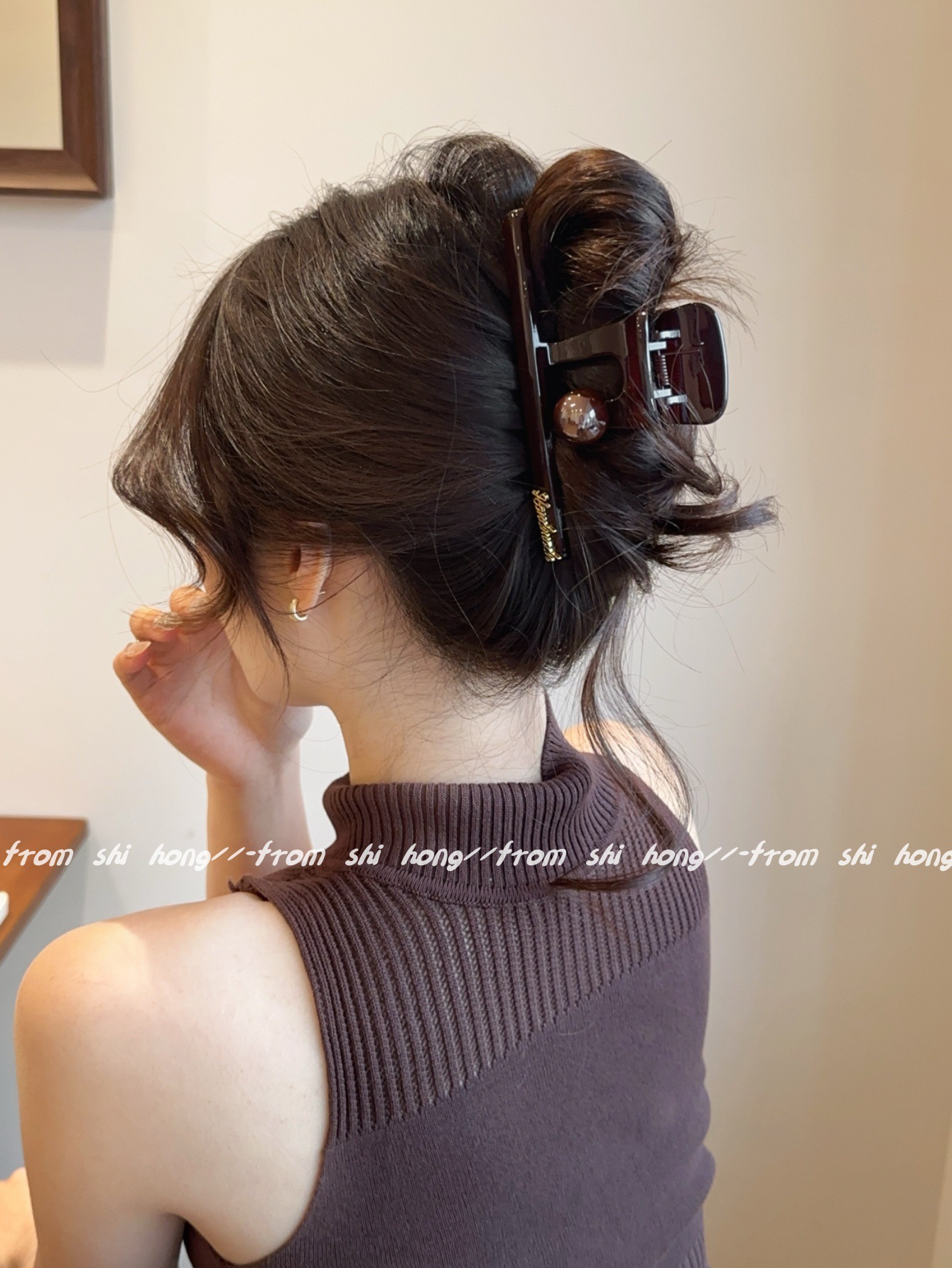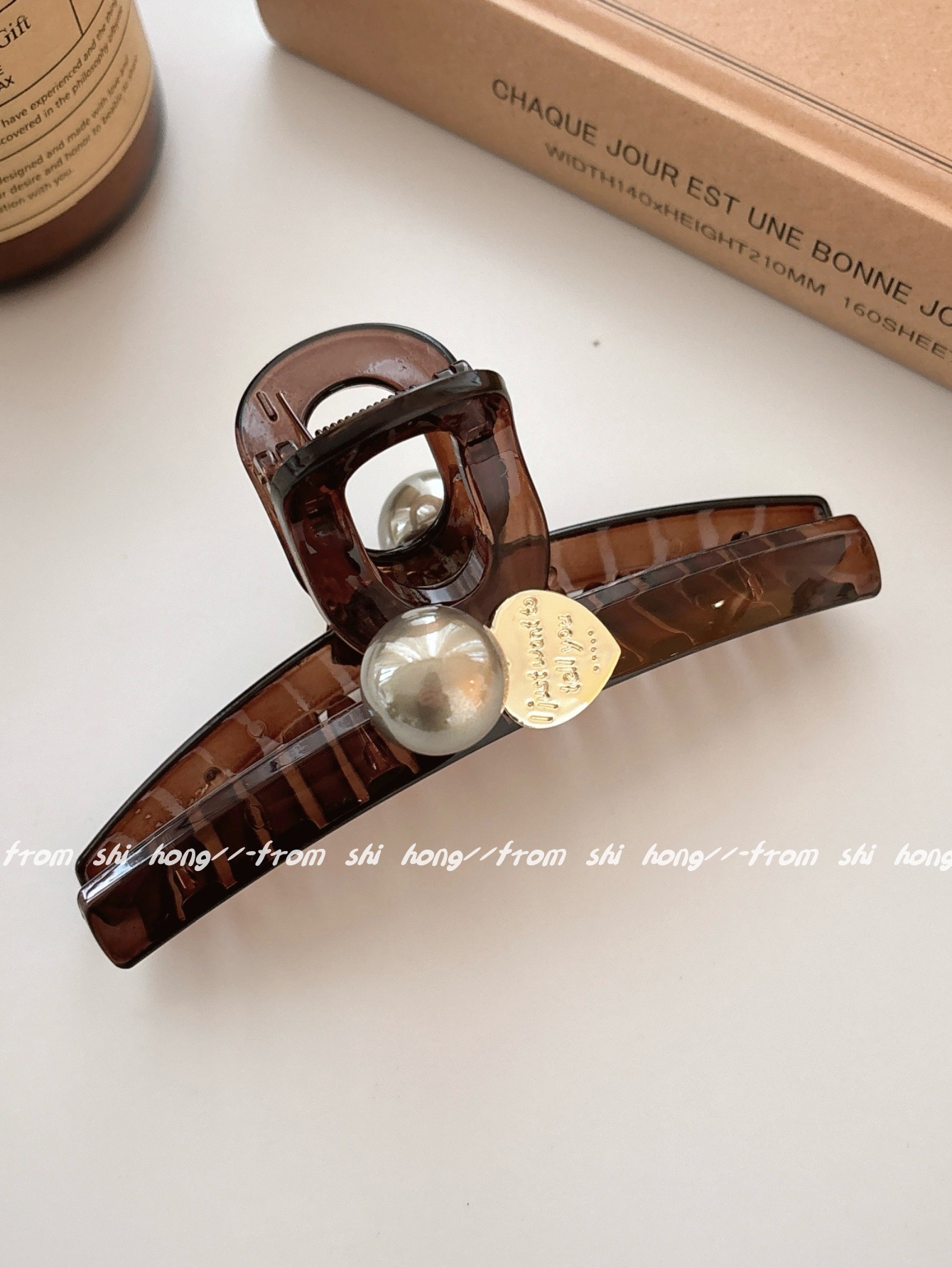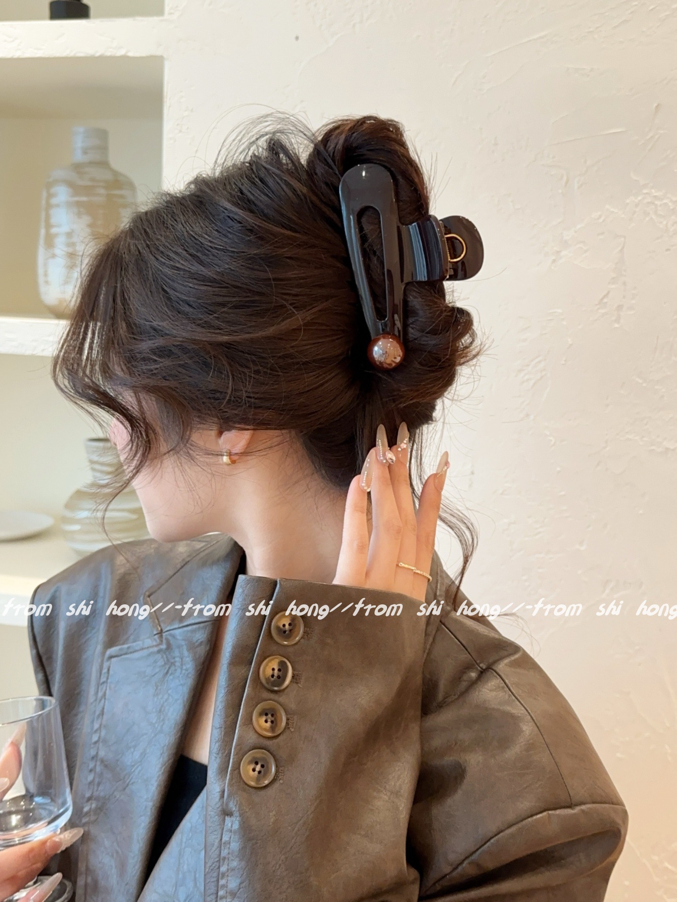 빈티지 다크 브라운 펄 그랩 클립 여성용 하이 엔드 2025 새로운 스타일의 머리 머리 머리 큰 상어 클립 헤어핀 헤드웨어스토어 가기