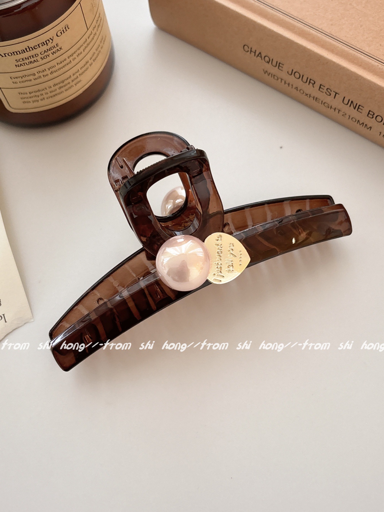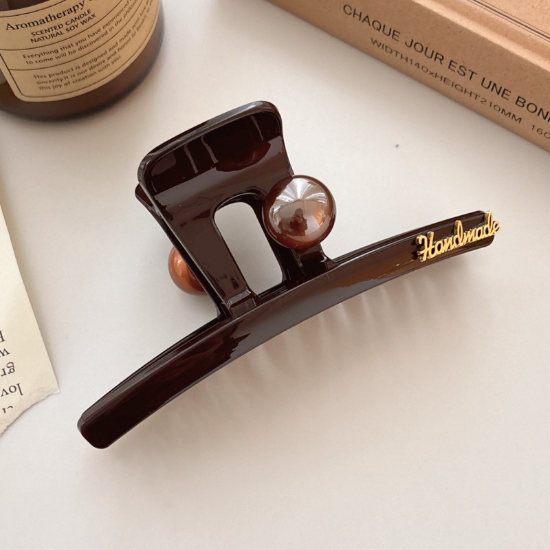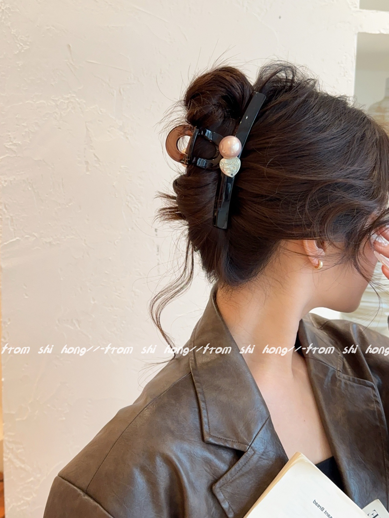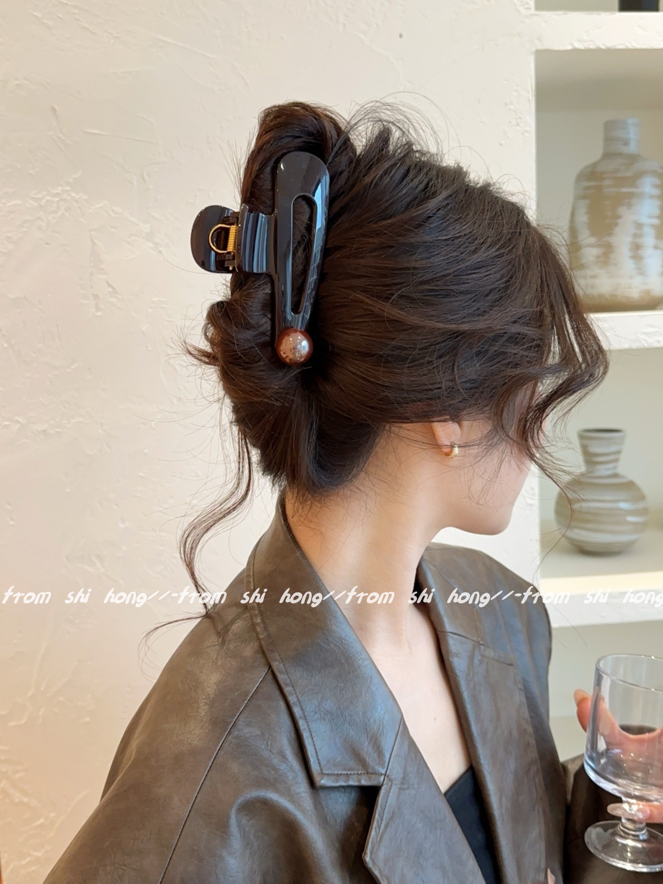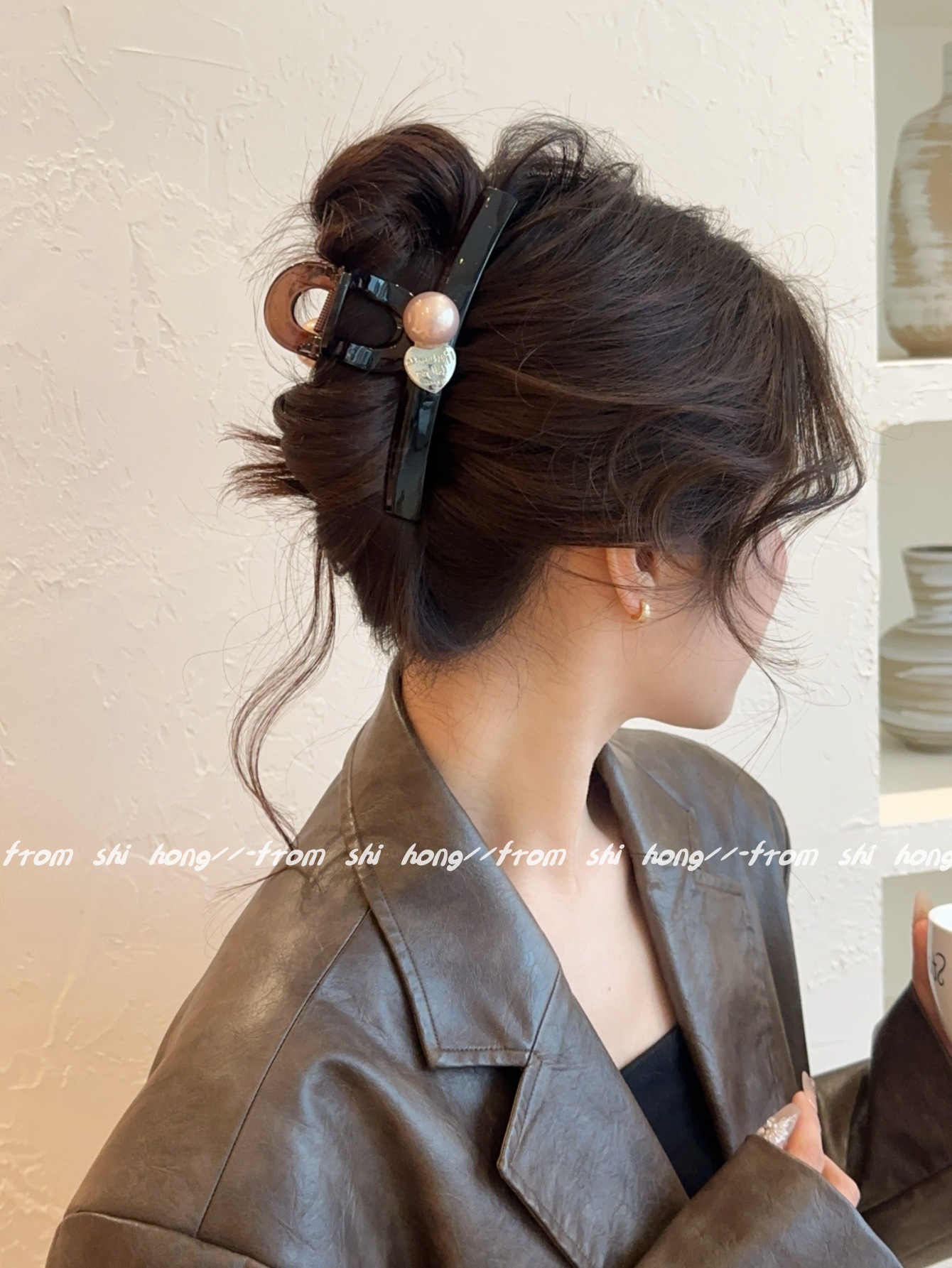 빈티지 다크 브라운 펄 그랩 클립 여성용 하이 엔드 2025 새로운 스타일의 머리 머리 머리 큰 상어 클립 헤어핀 헤드웨어스토어 가기