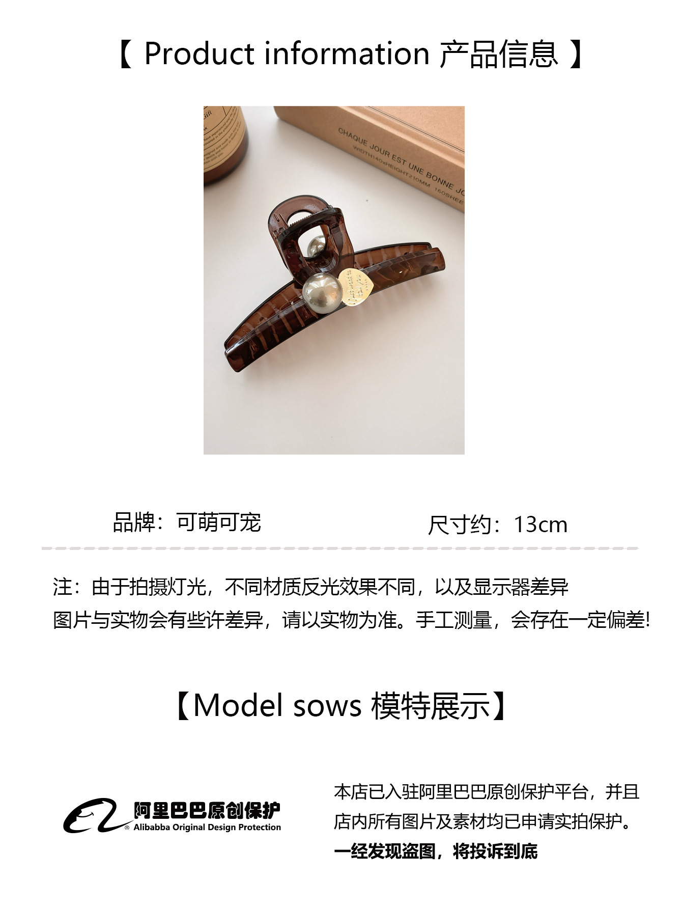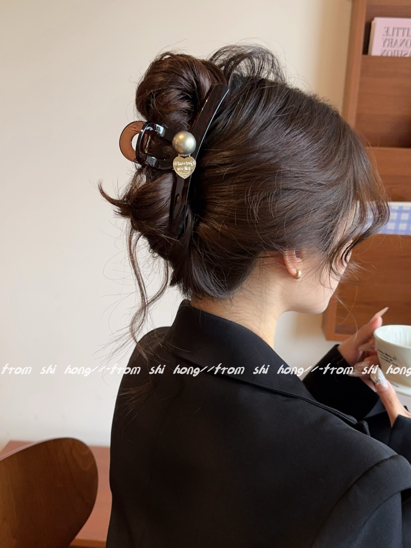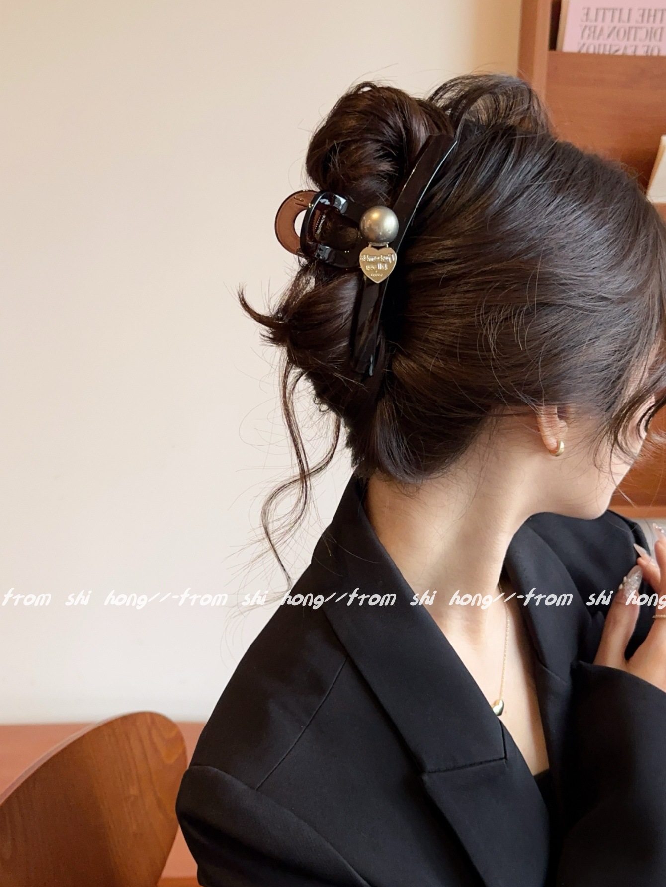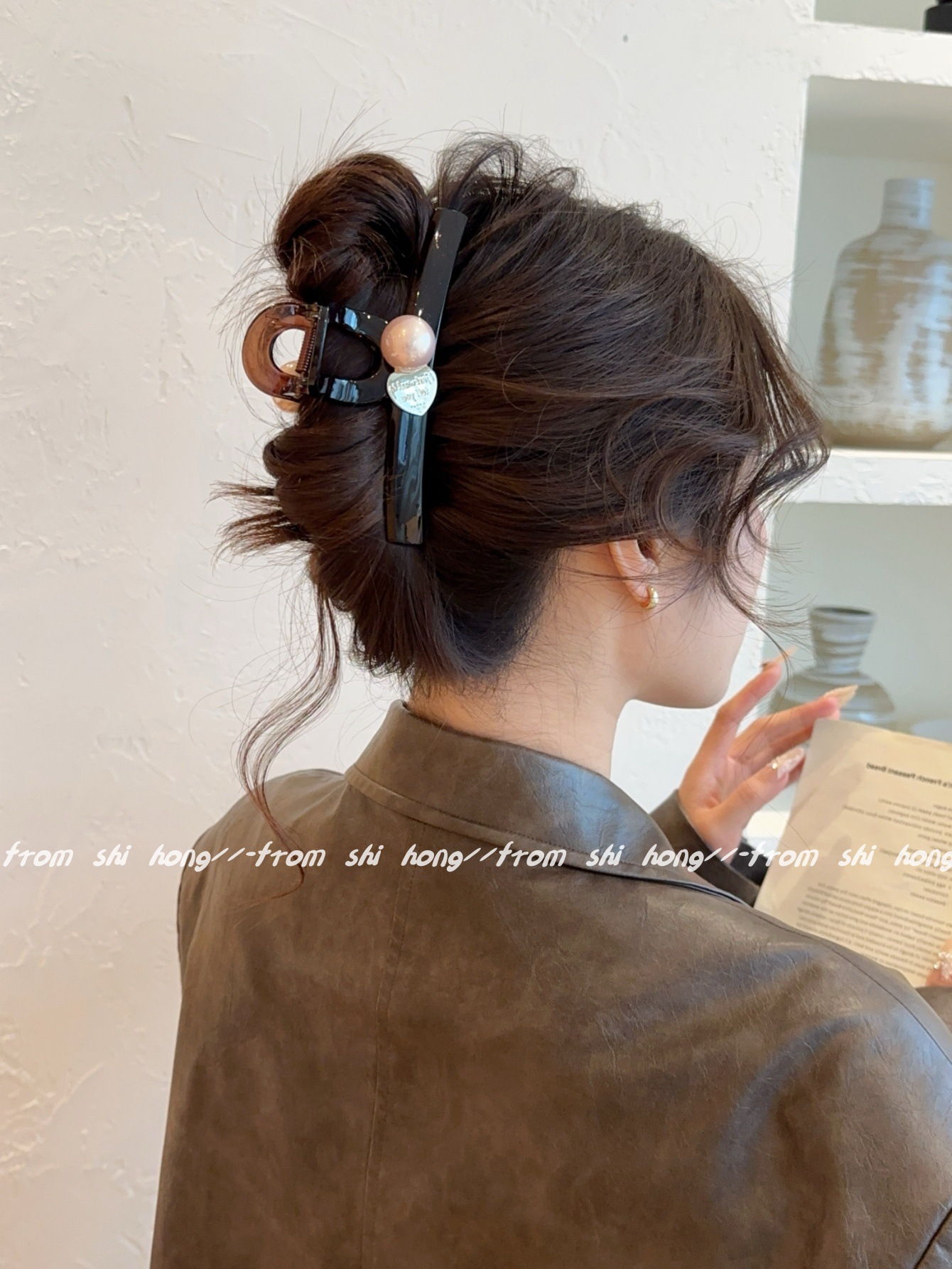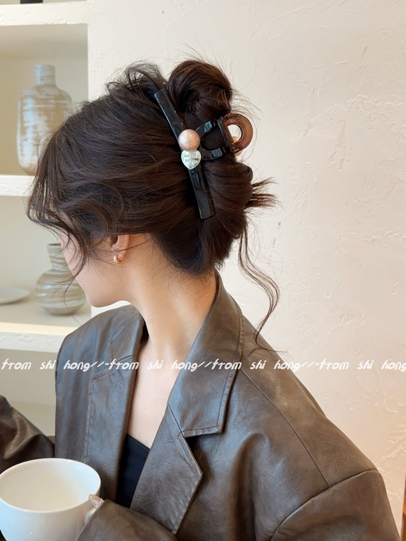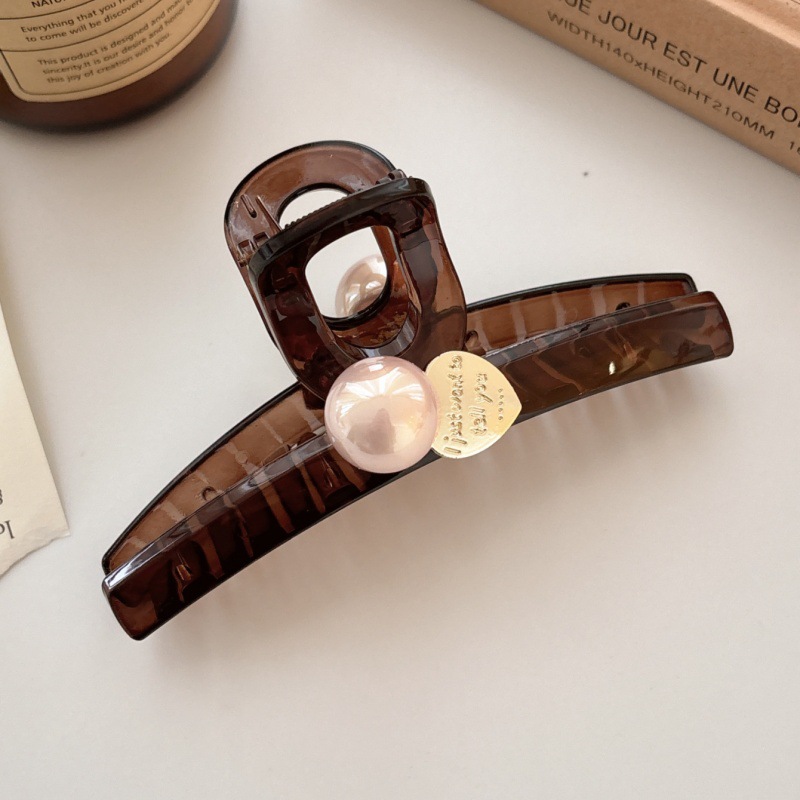 빈티지 다크 브라운 펄 그랩 클립 여성용 하이 엔드 2025 새로운 스타일의 머리 머리 머리 큰 상어 클립 헤어핀 헤드웨어스토어 가기