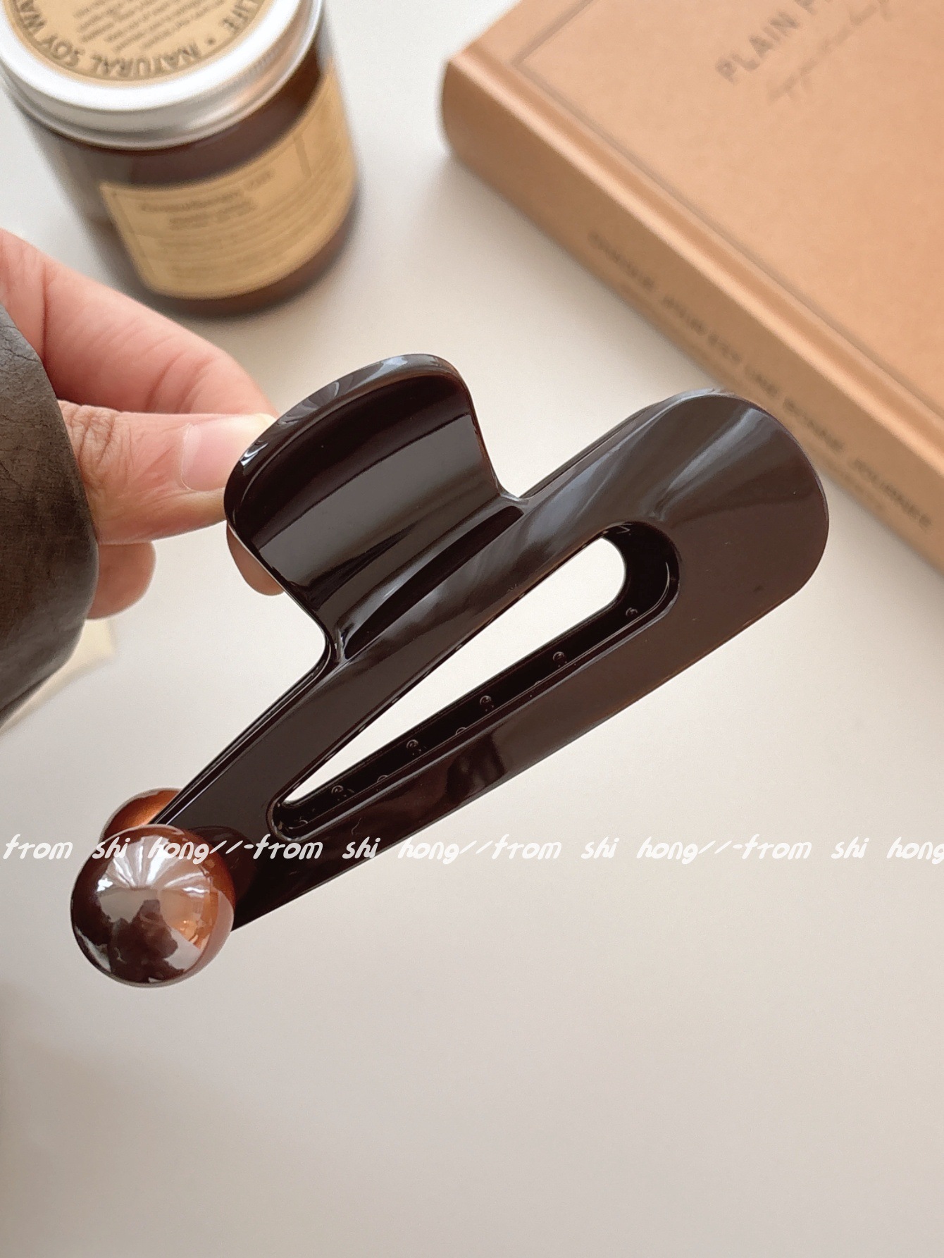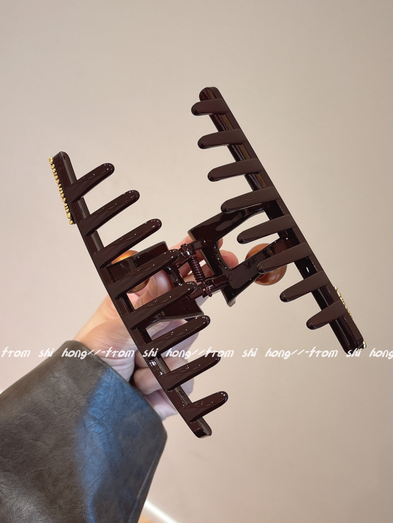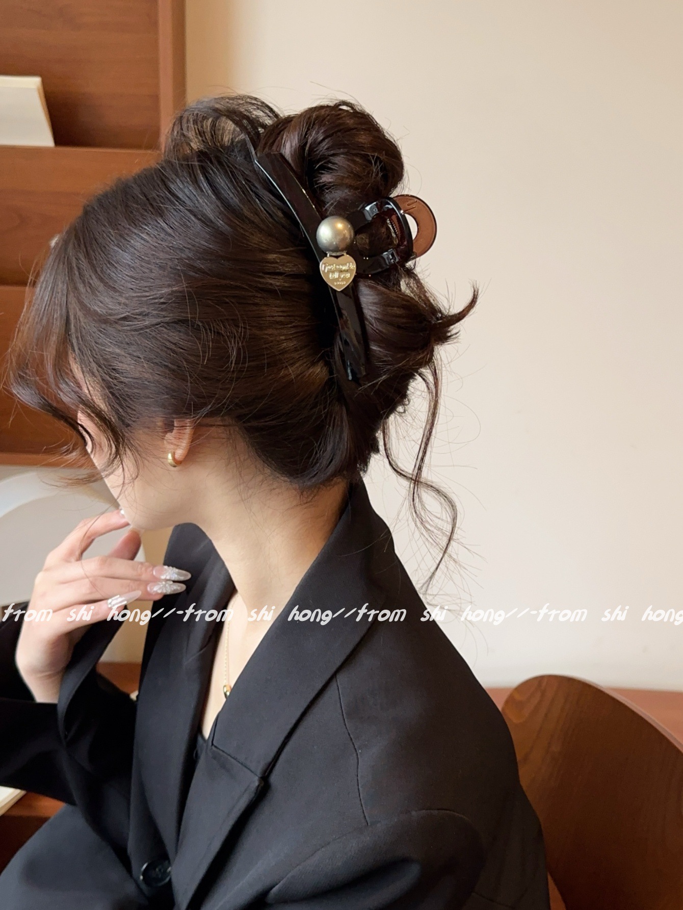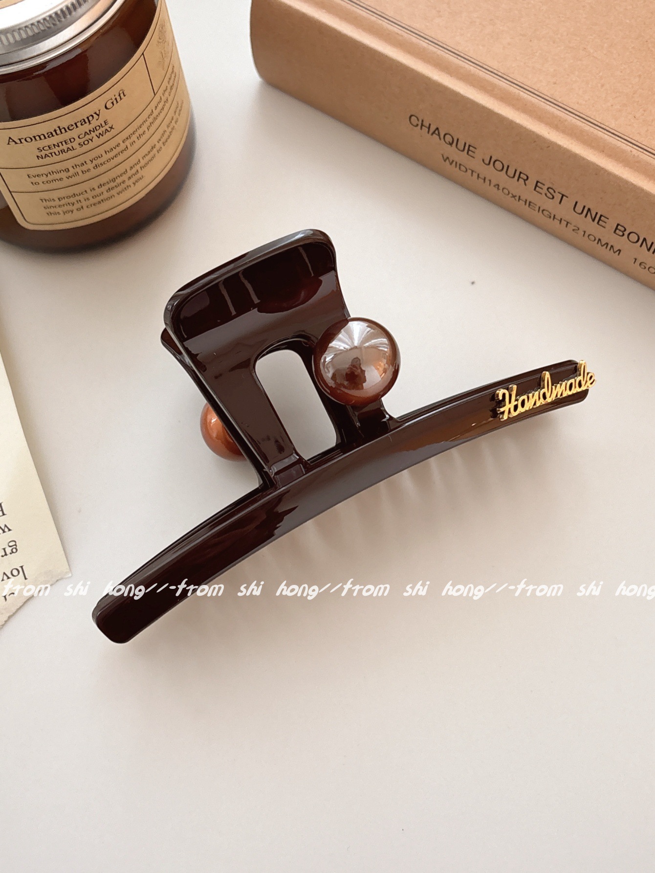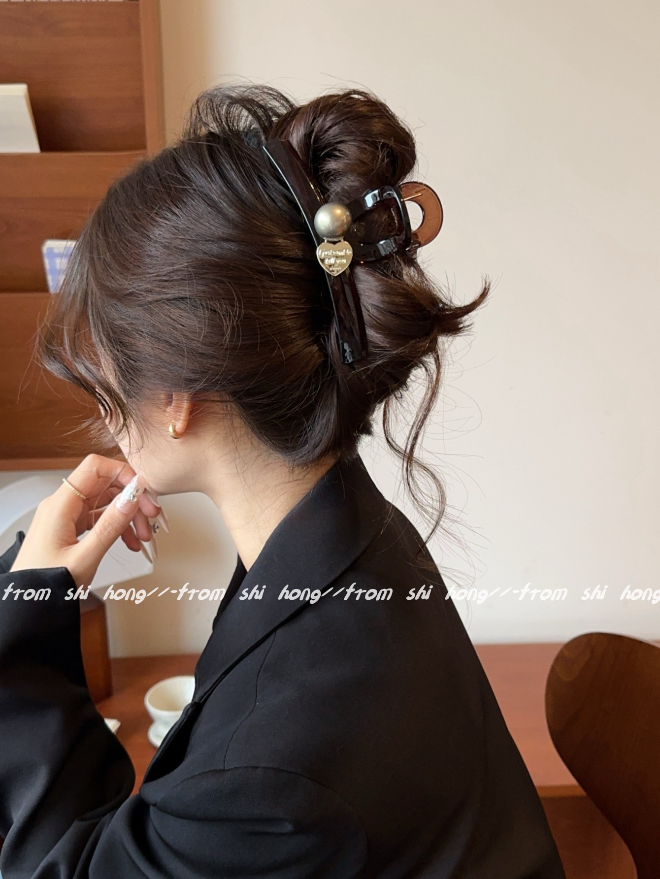 빈티지 다크 브라운 펄 그랩 클립 여성용 하이 엔드 2025 새로운 스타일의 머리 머리 머리 큰 상어 클립 헤어핀 헤드웨어스토어 가기