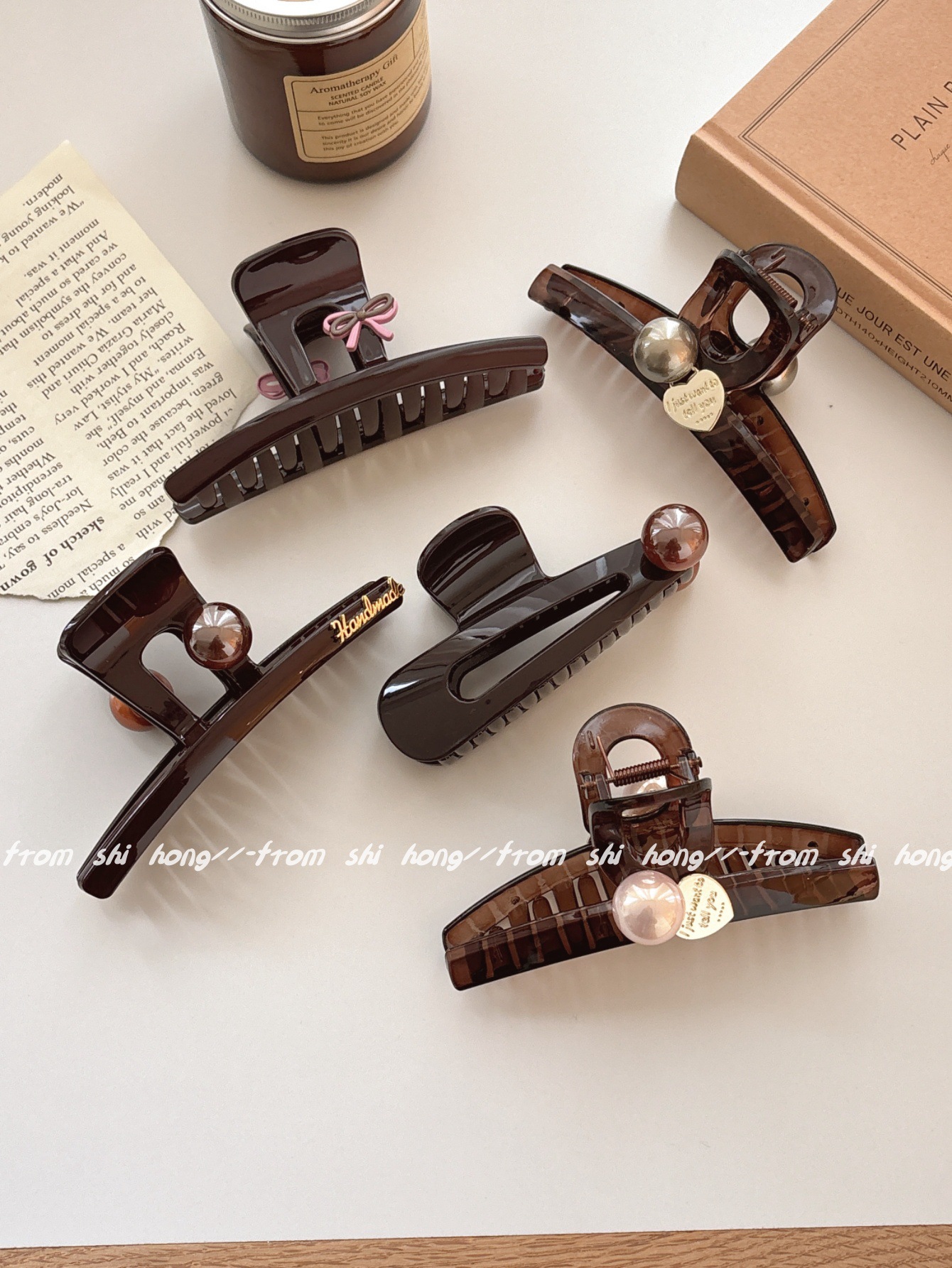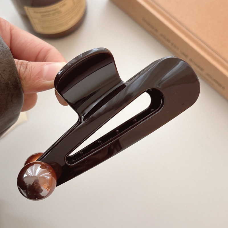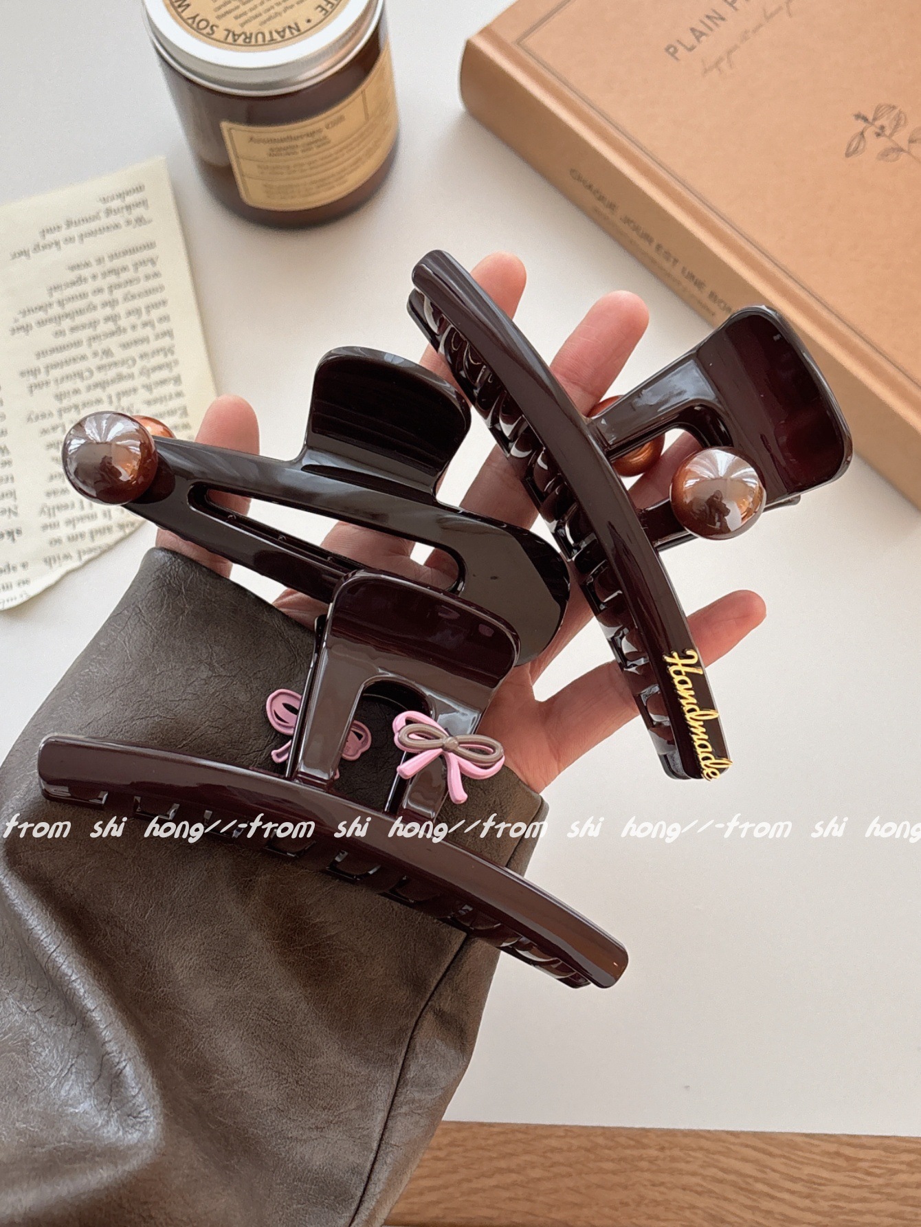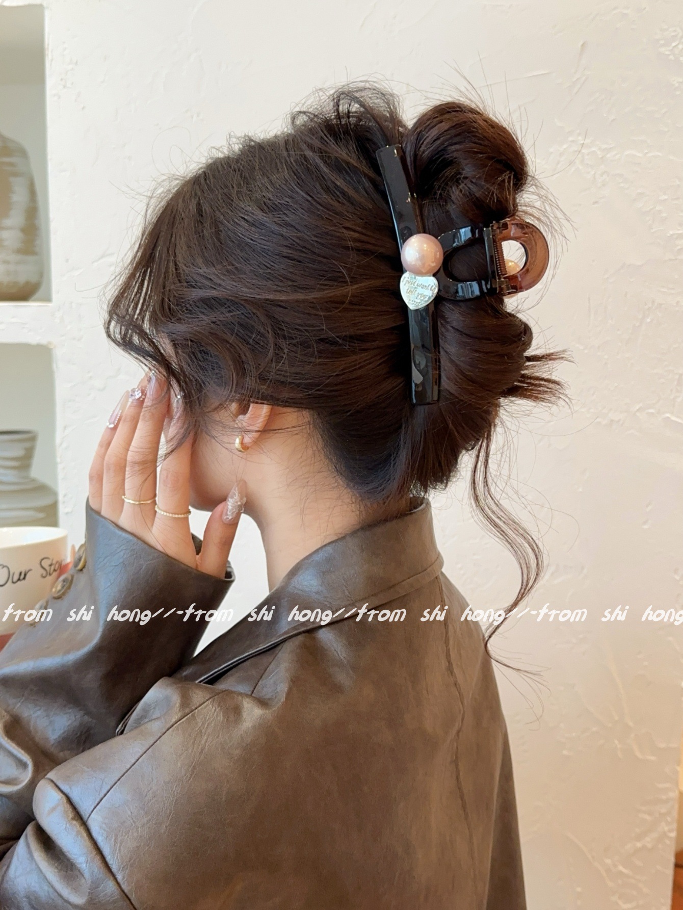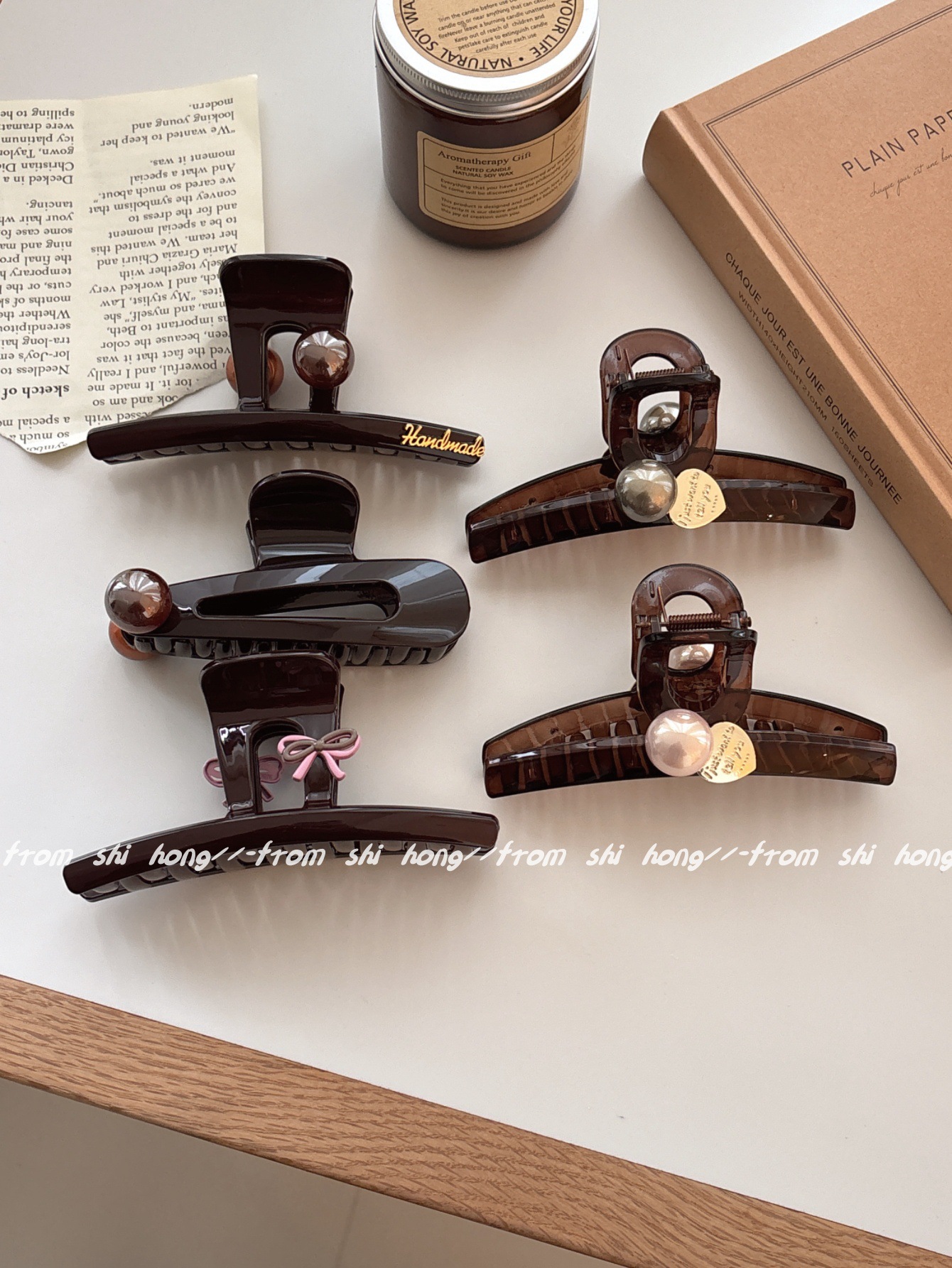 빈티지 다크 브라운 펄 그랩 클립 여성용 하이 엔드 2025 새로운 스타일의 머리 머리 머리 큰 상어 클립 헤어핀 헤드웨어스토어 가기