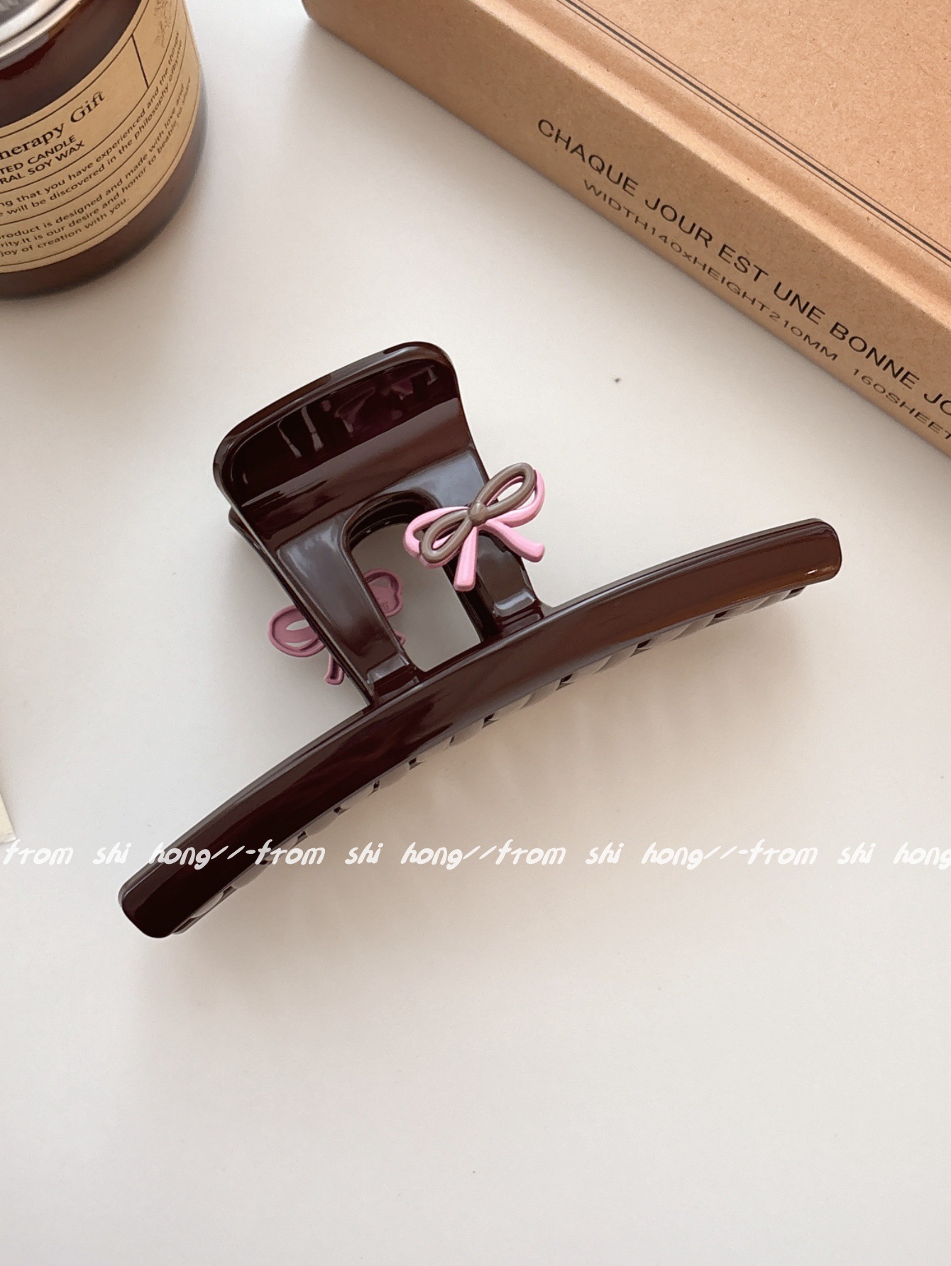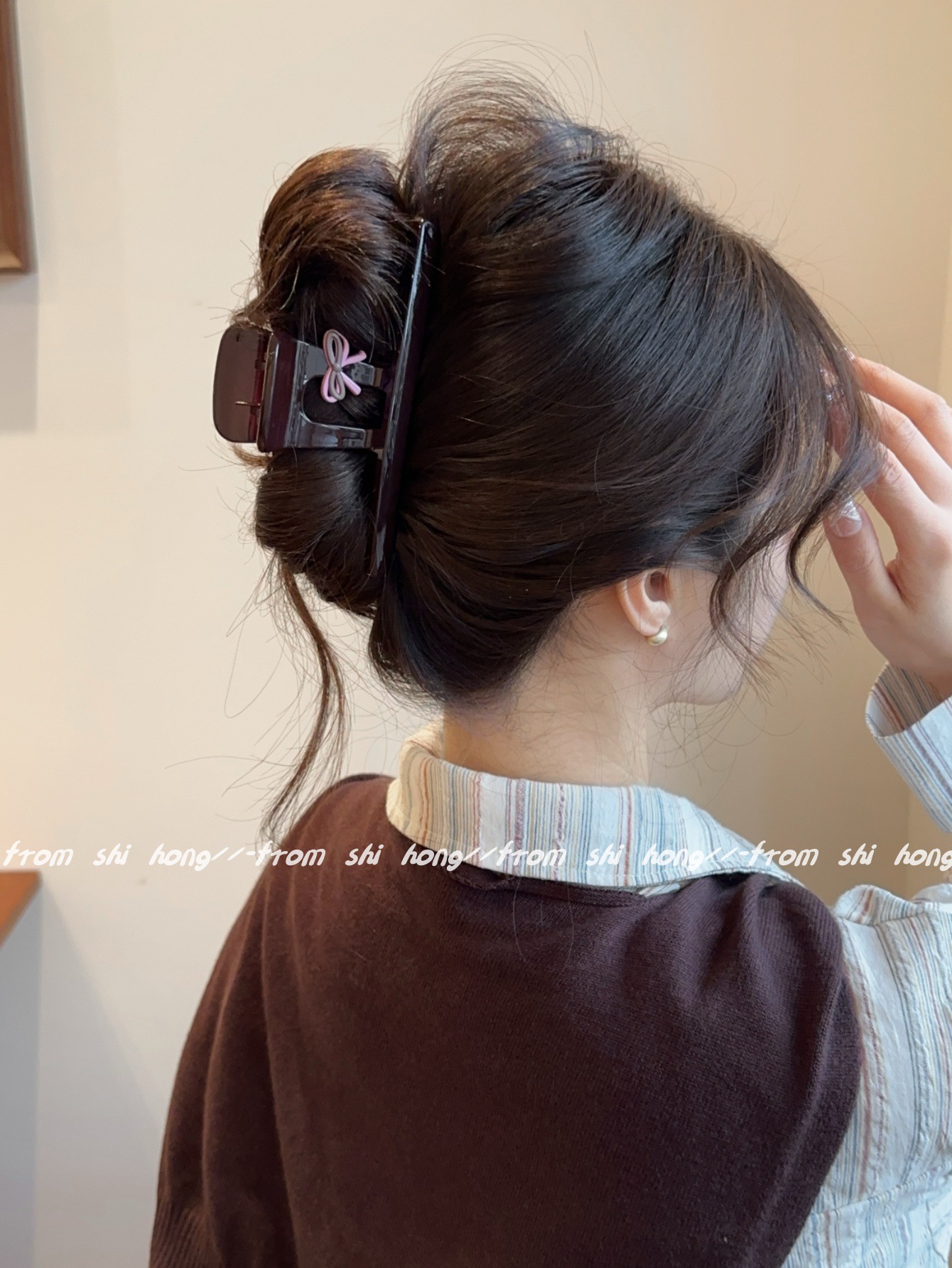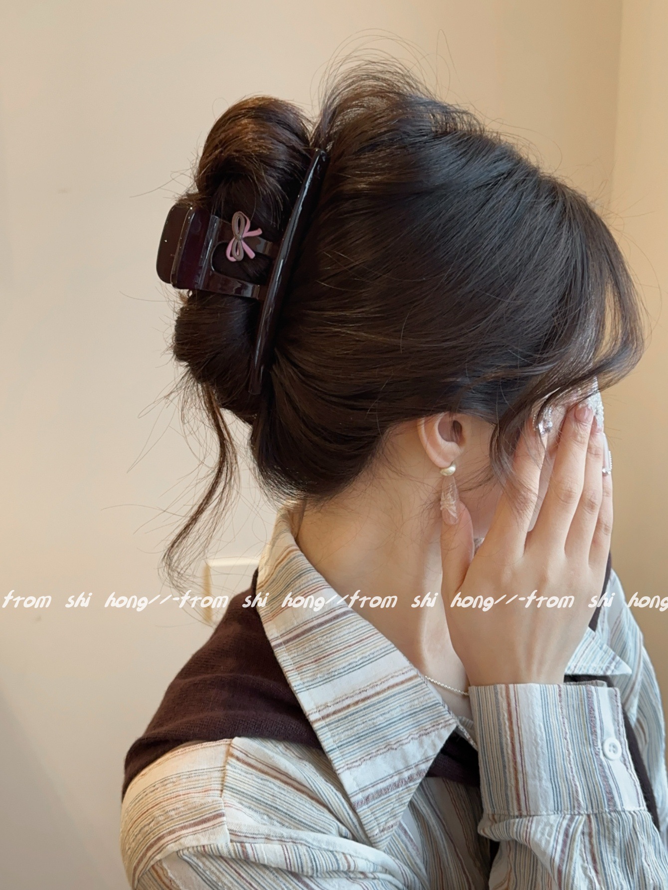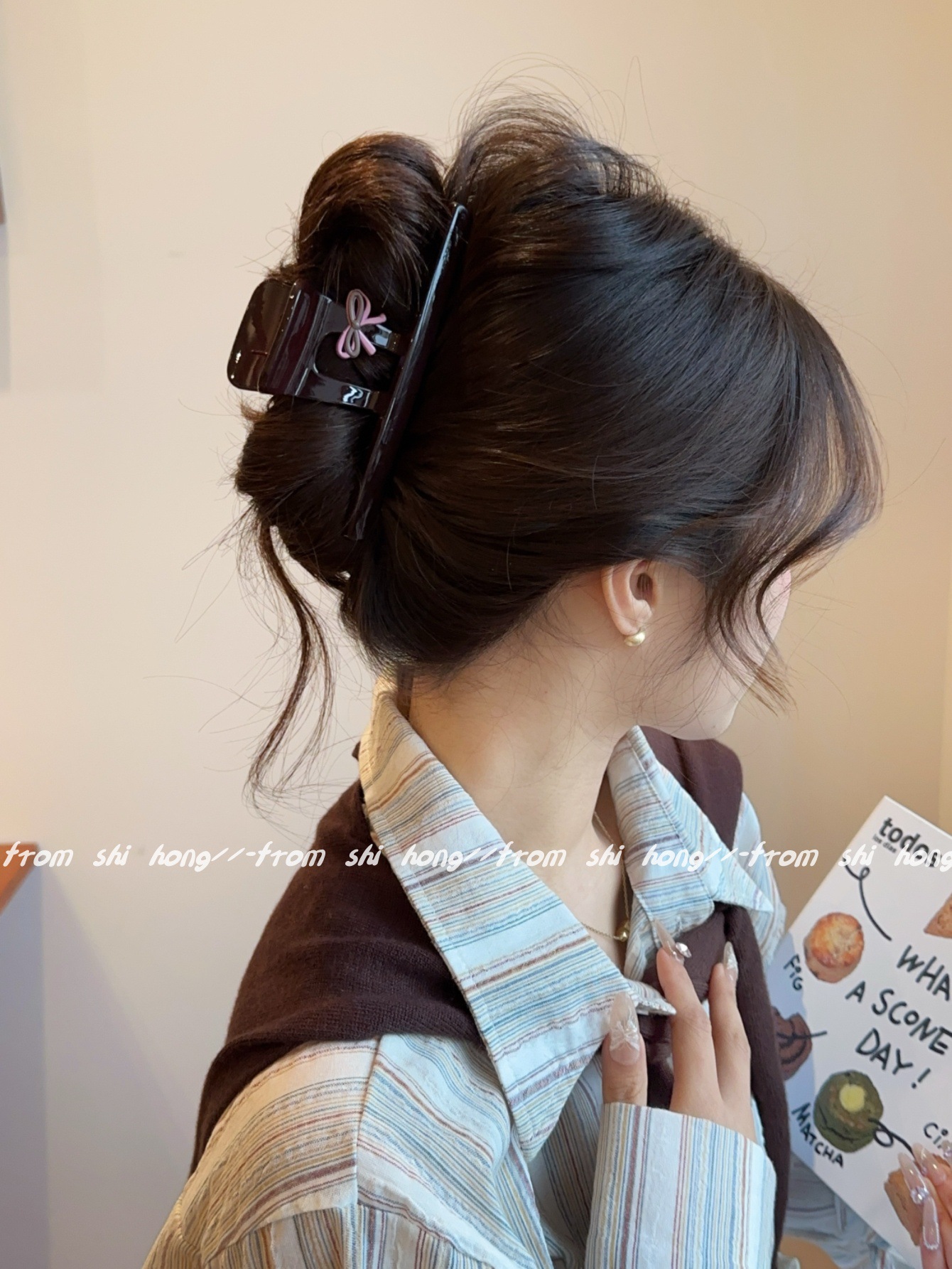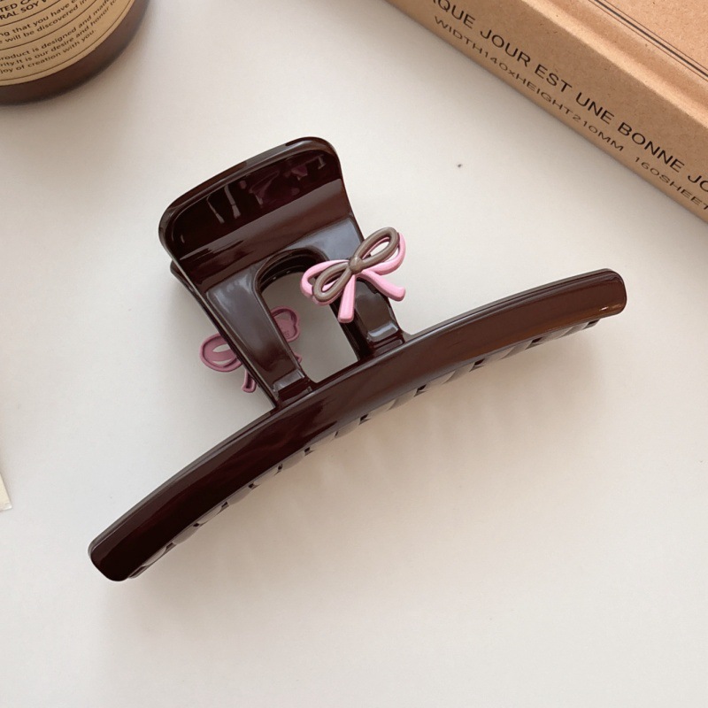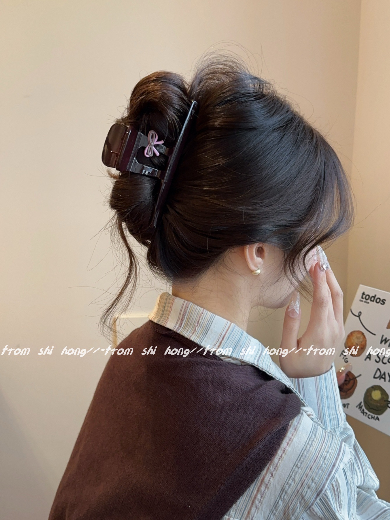 빈티지 다크 브라운 펄 그랩 클립 여성용 하이 엔드 2025 새로운 스타일의 머리 머리 머리 큰 상어 클립 헤어핀 헤드웨어스토어 가기