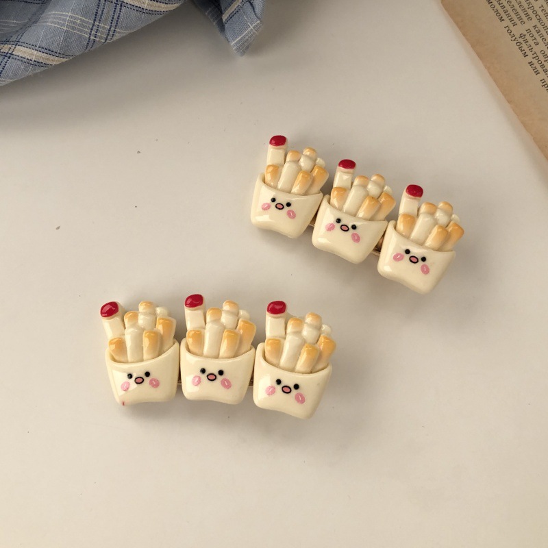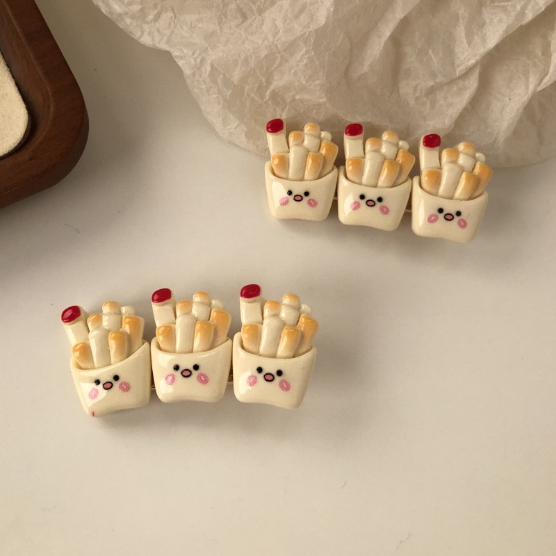 귀여운 프렌치 프라이 헤어핀 여성용 높고 낮은 포니 테일 헤어밴드 뱅 사이드 클립 만화 헤어핀 타이 로프 머리 액세서리스토어 가기