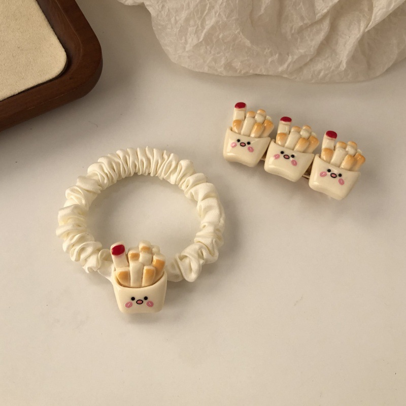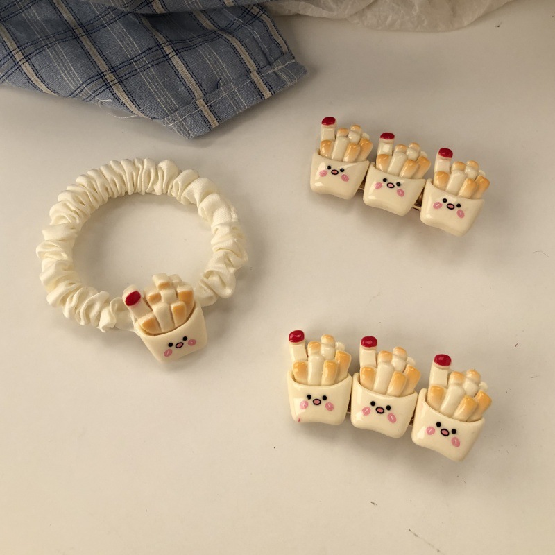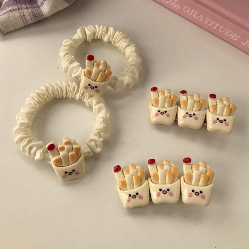 귀여운 프렌치 프라이 헤어핀 여성용 높고 낮은 포니 테일 헤어밴드 뱅 사이드 클립 만화 헤어핀 타이 로프 머리 액세서리