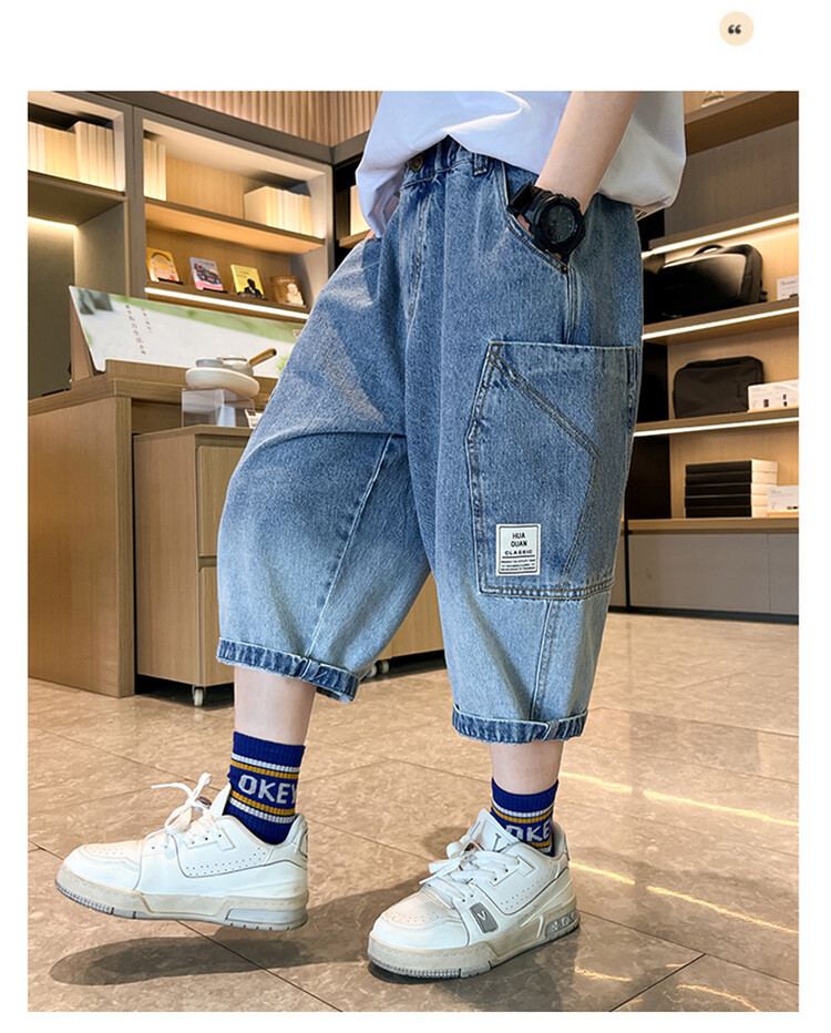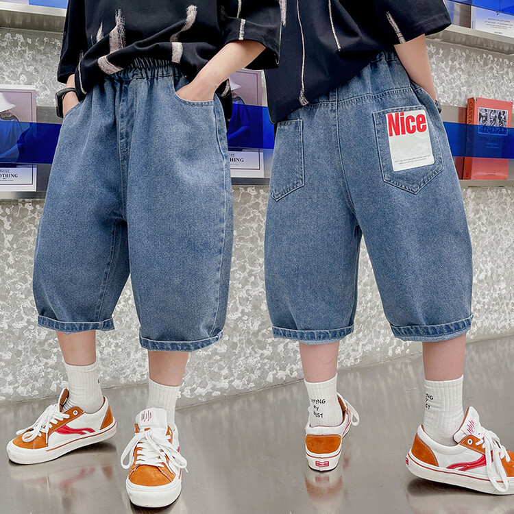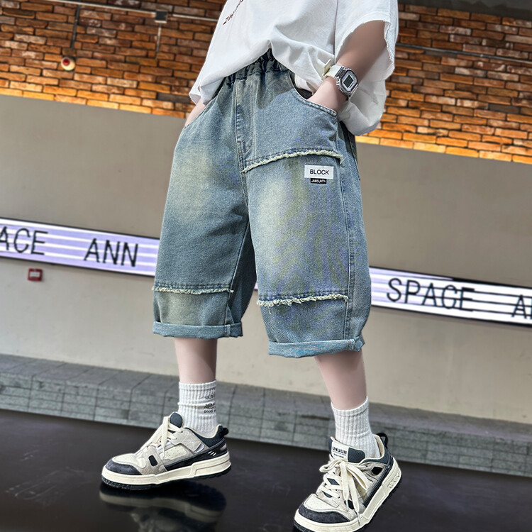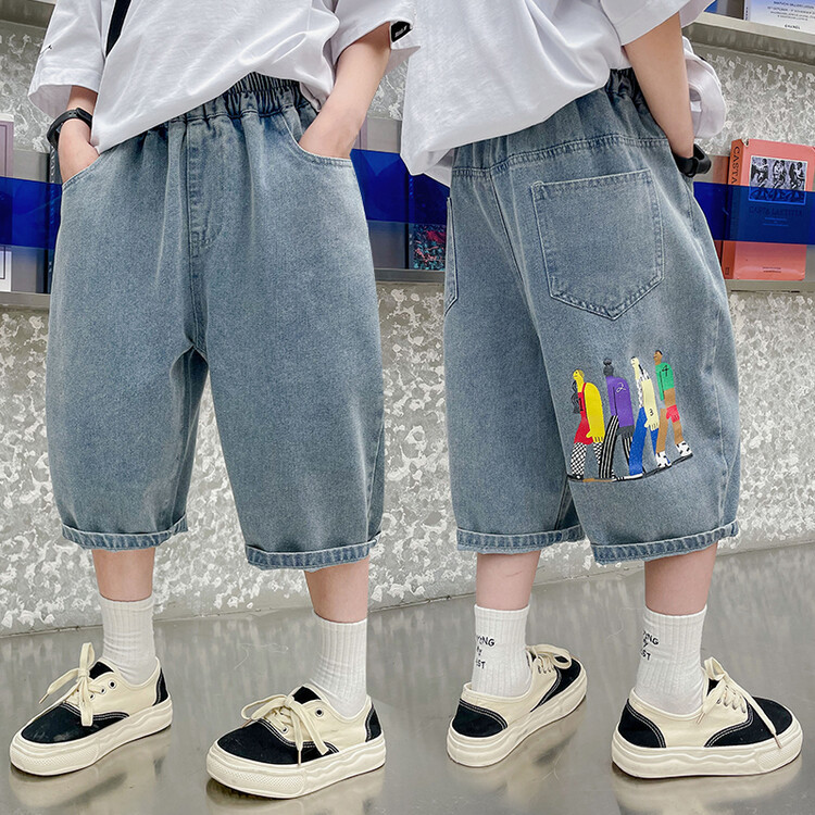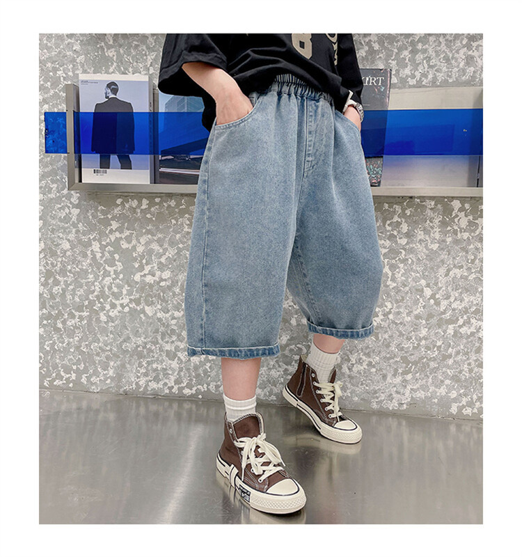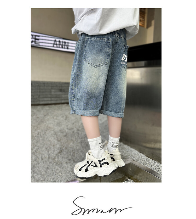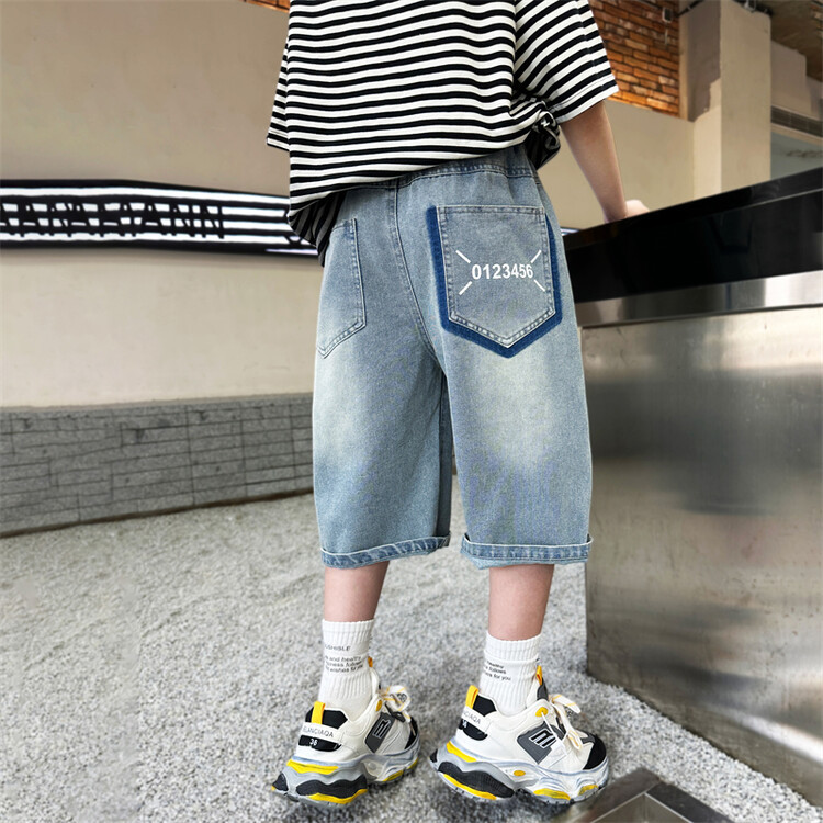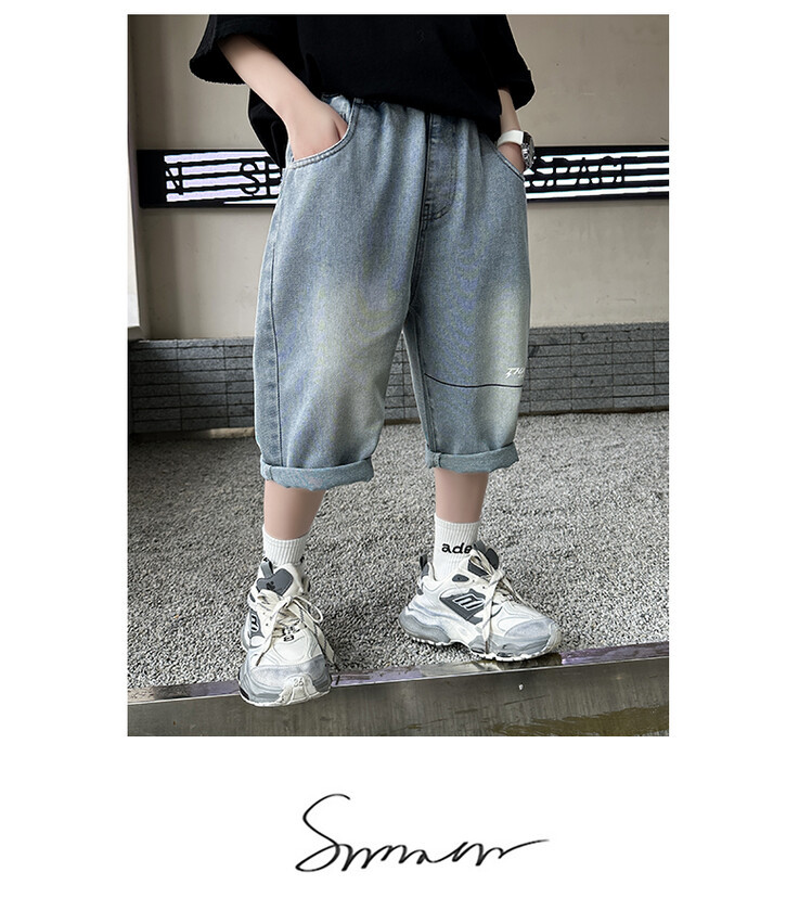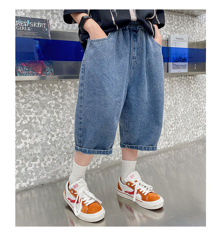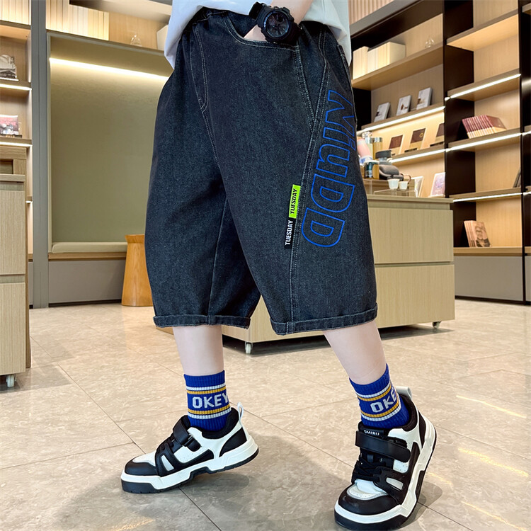 남학생 데님 반바지 2024 년 여름 새 한국식 중대형 어린이 5 점 바지 어린이 편안한 얇은 바지 여름 착용스토어 가기