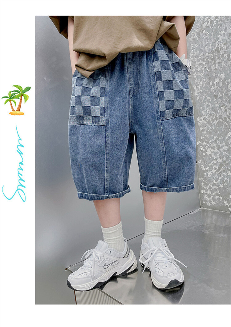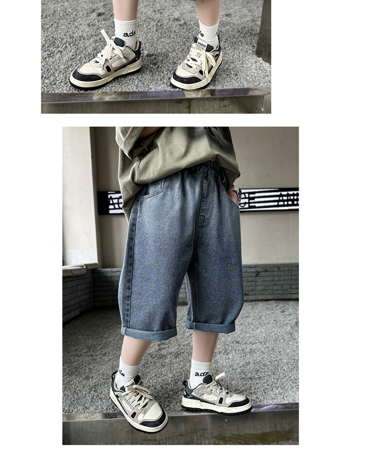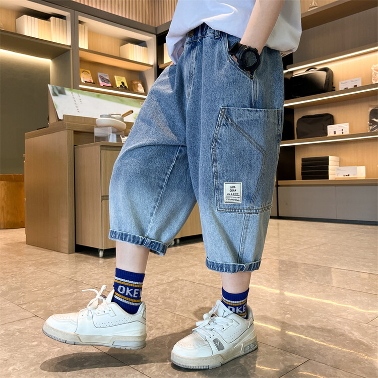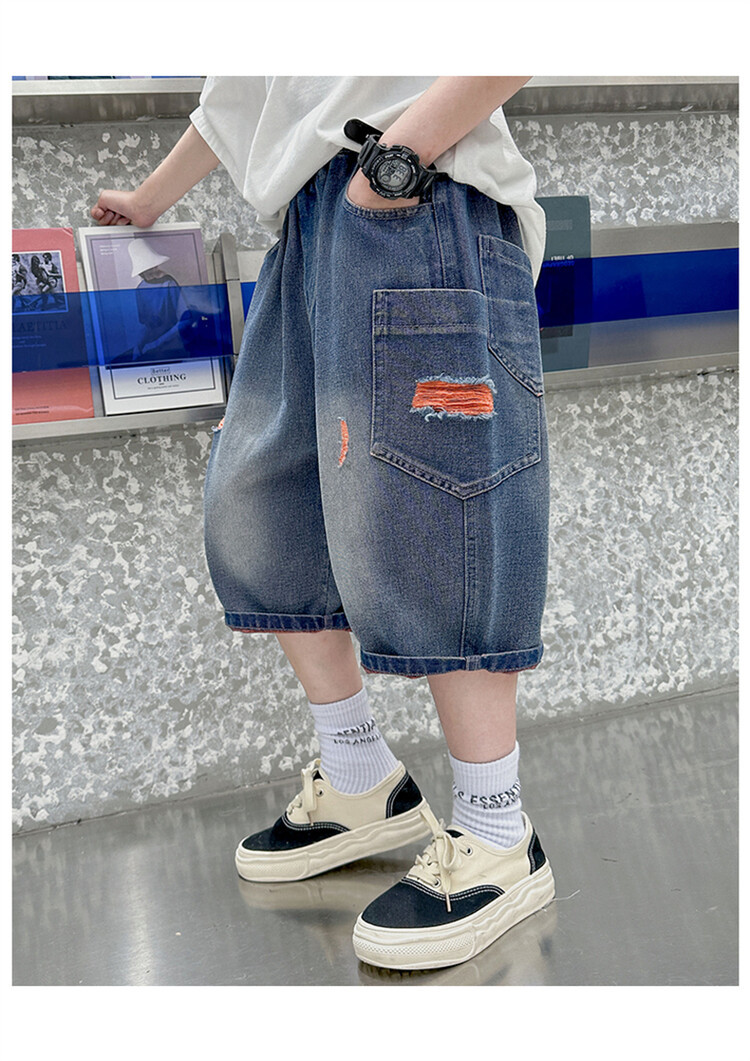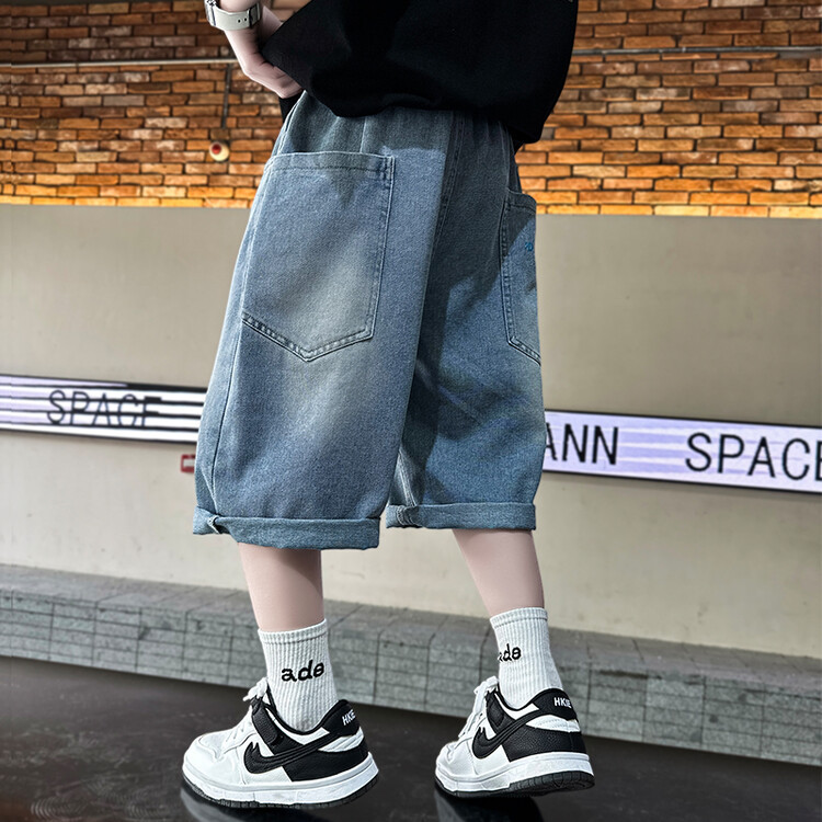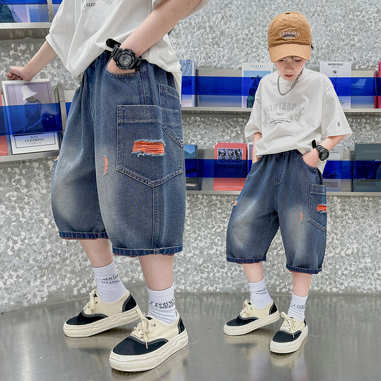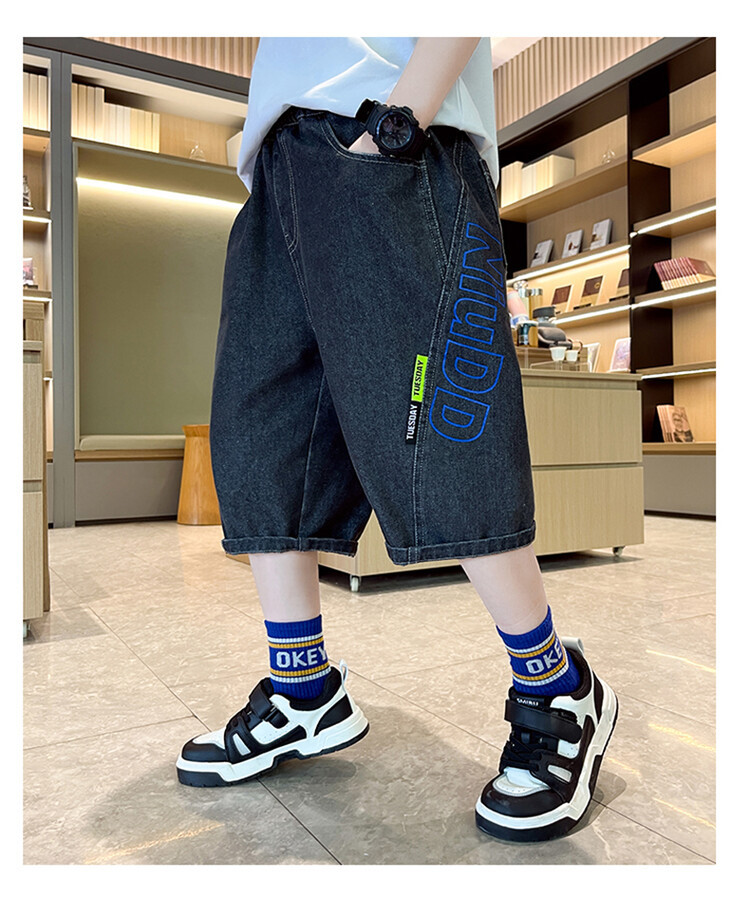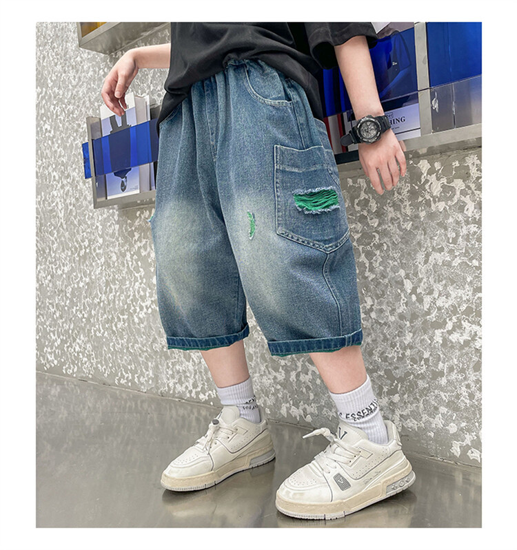 남학생 데님 반바지 2024 년 여름 새 한국식 중대형 어린이 5 점 바지 어린이 편안한 얇은 바지 여름 착용스토어 가기