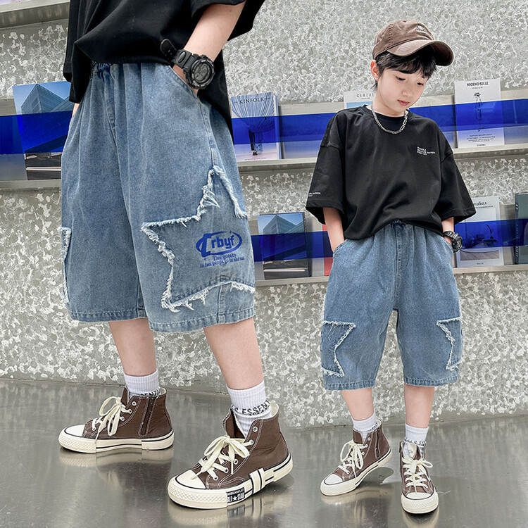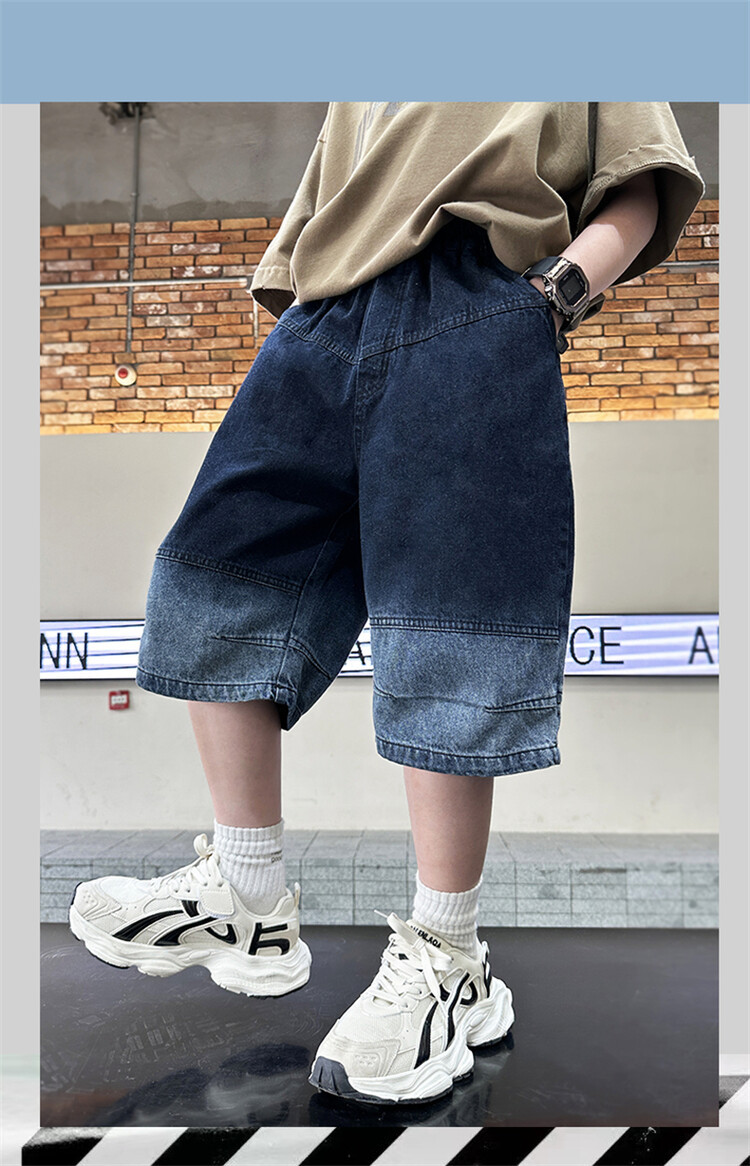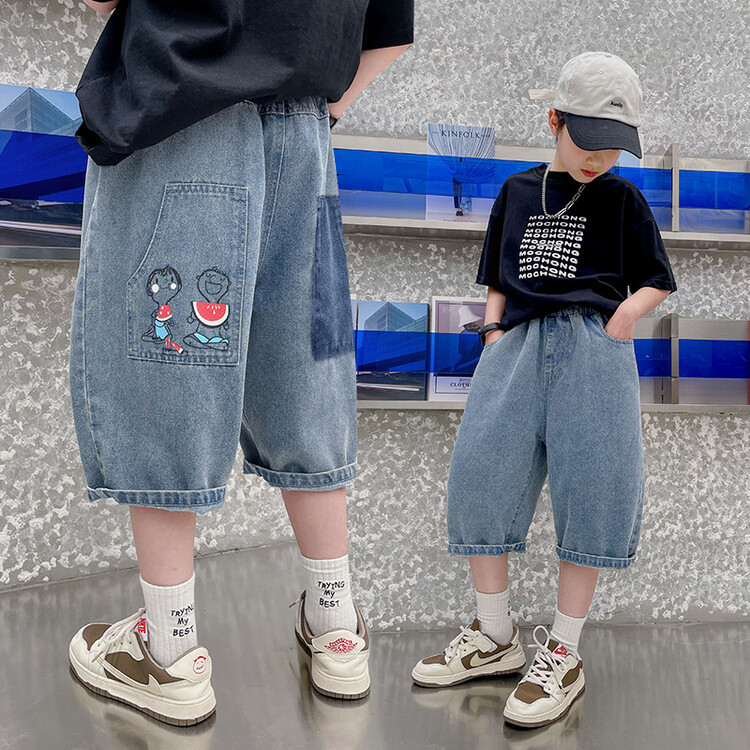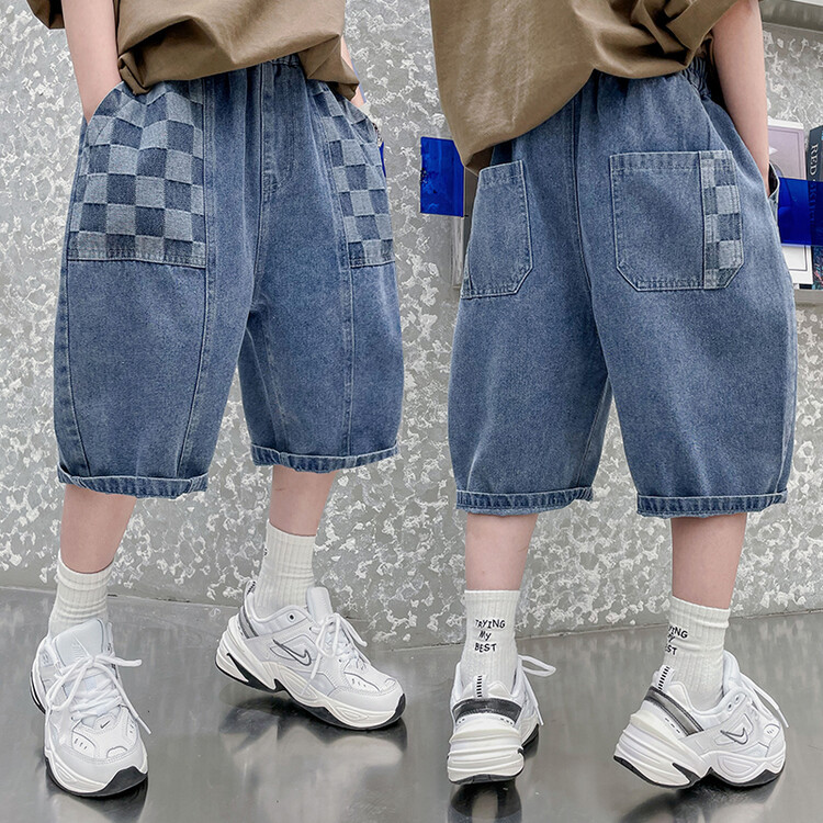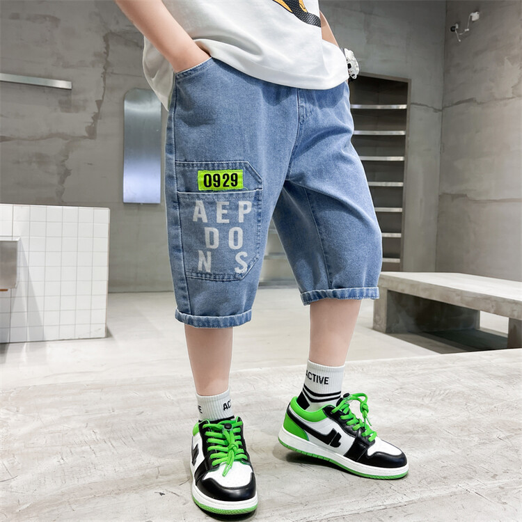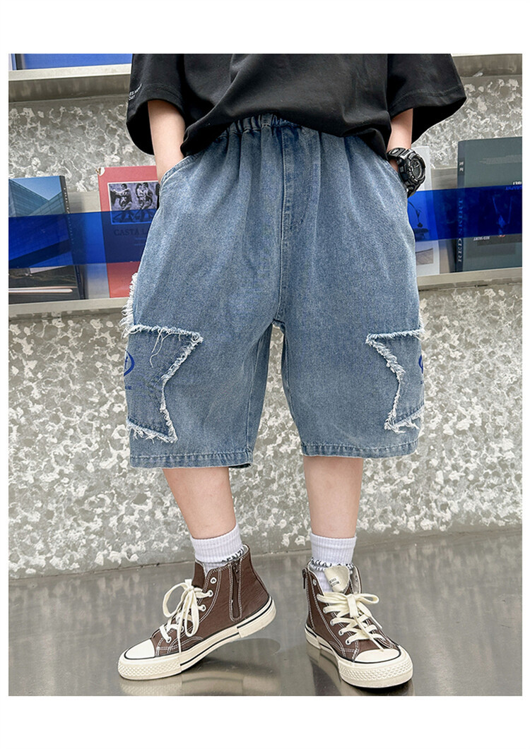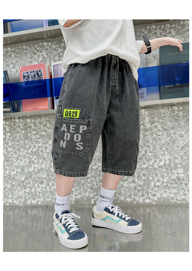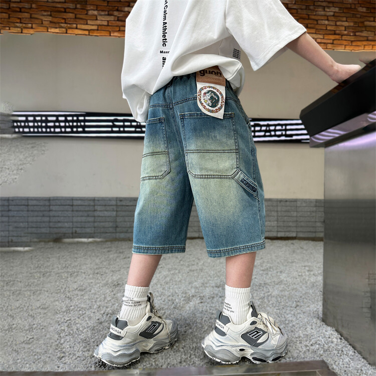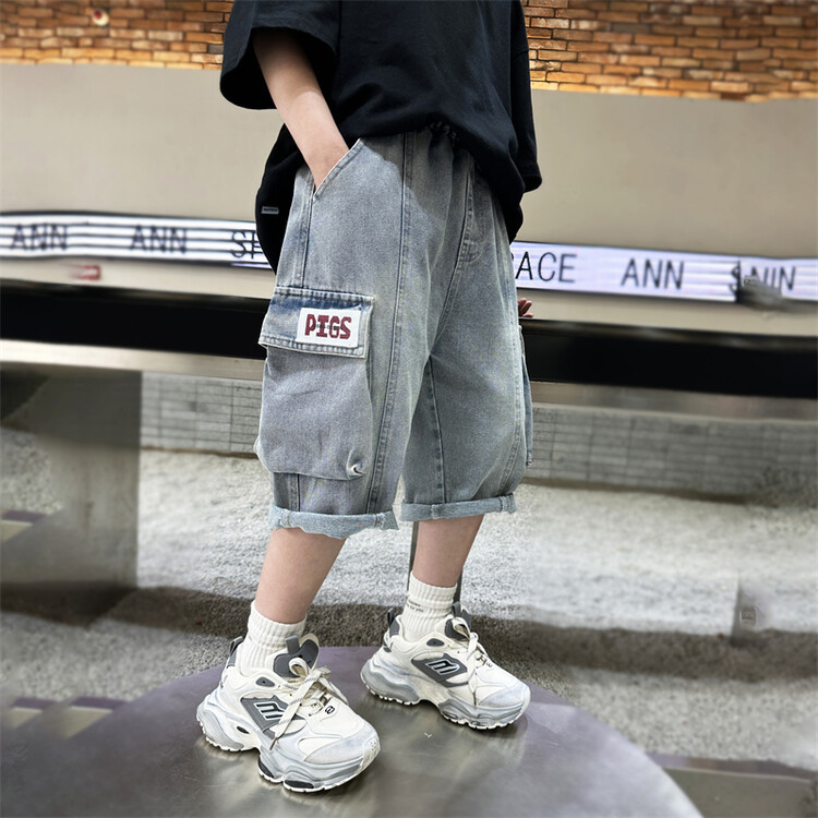 남학생 데님 반바지 2024 년 여름 새 한국식 중대형 어린이 5 점 바지 어린이 편안한 얇은 바지 여름 착용스토어 가기