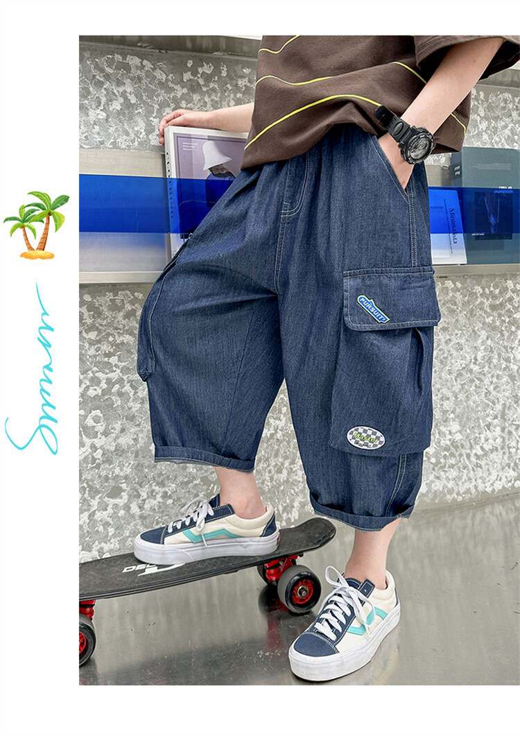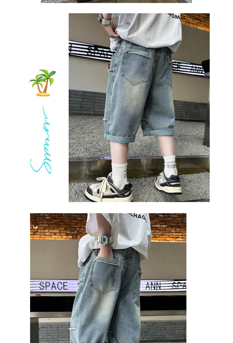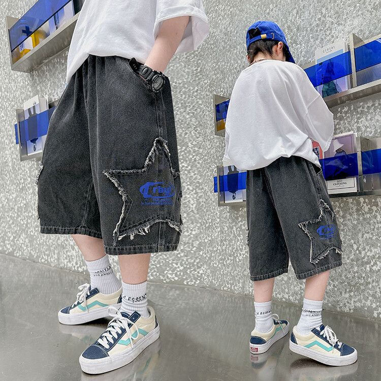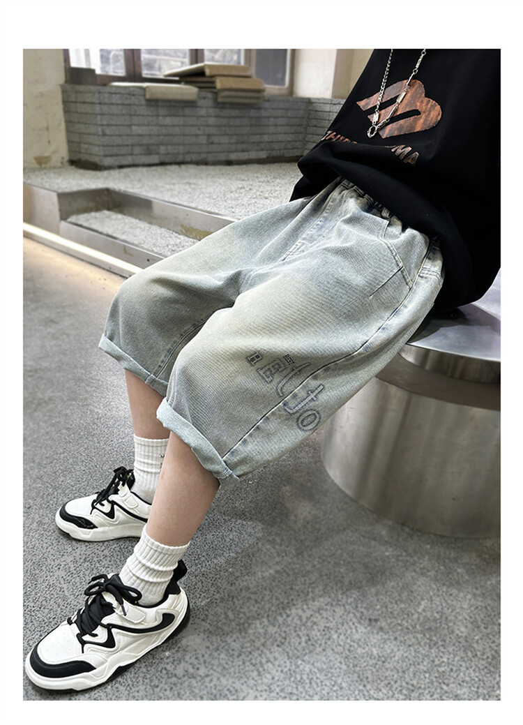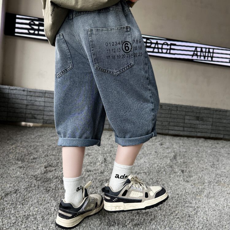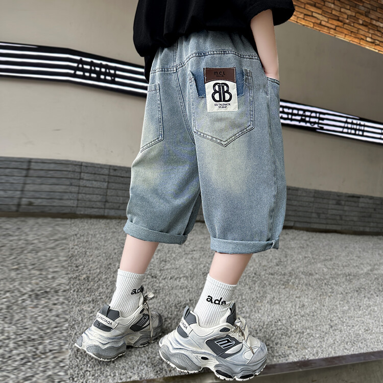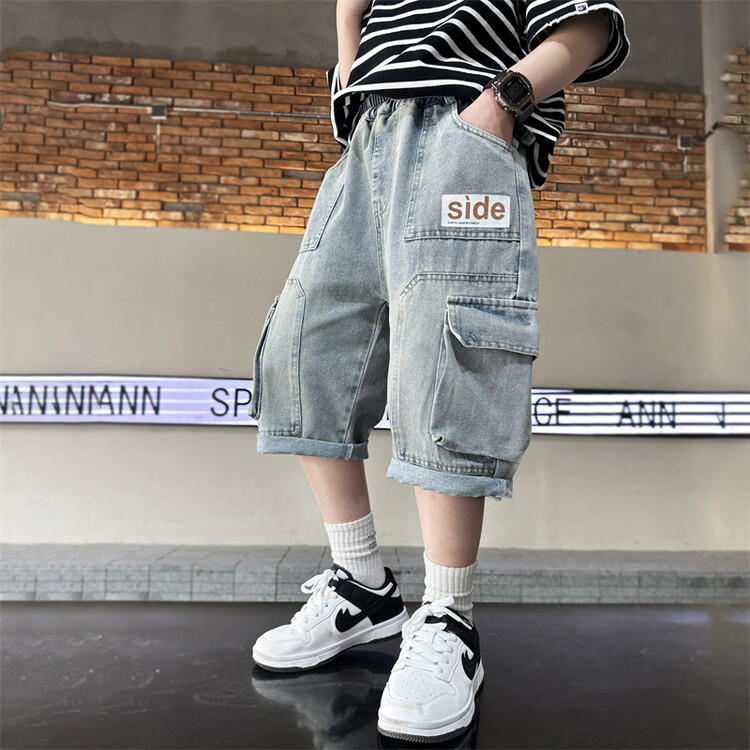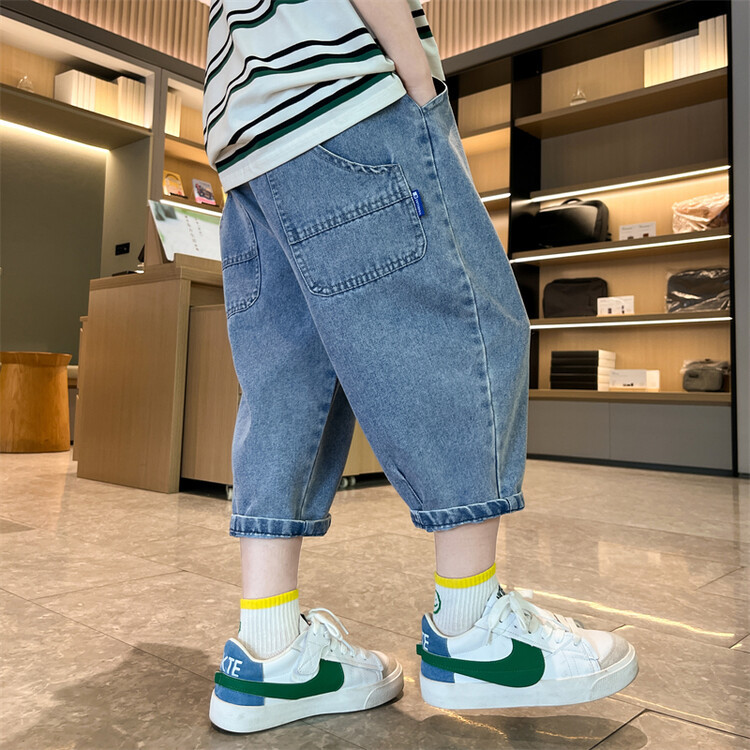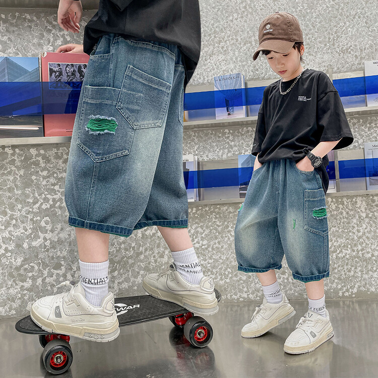 남학생 데님 반바지 2024 년 여름 새 한국식 중대형 어린이 5 점 바지 어린이 편안한 얇은 바지 여름 착용스토어 가기