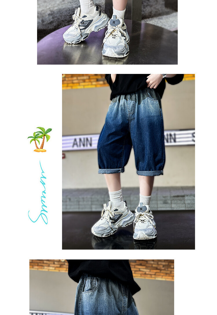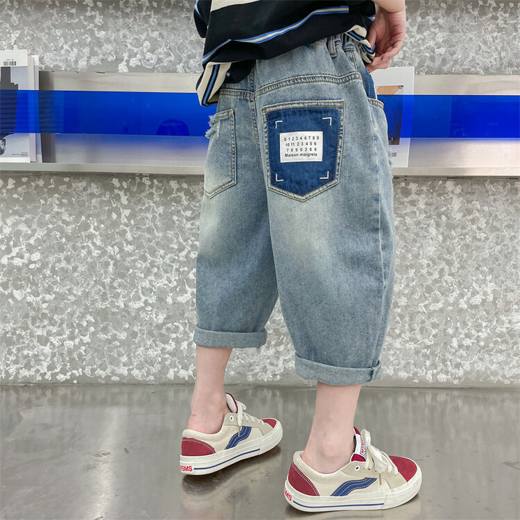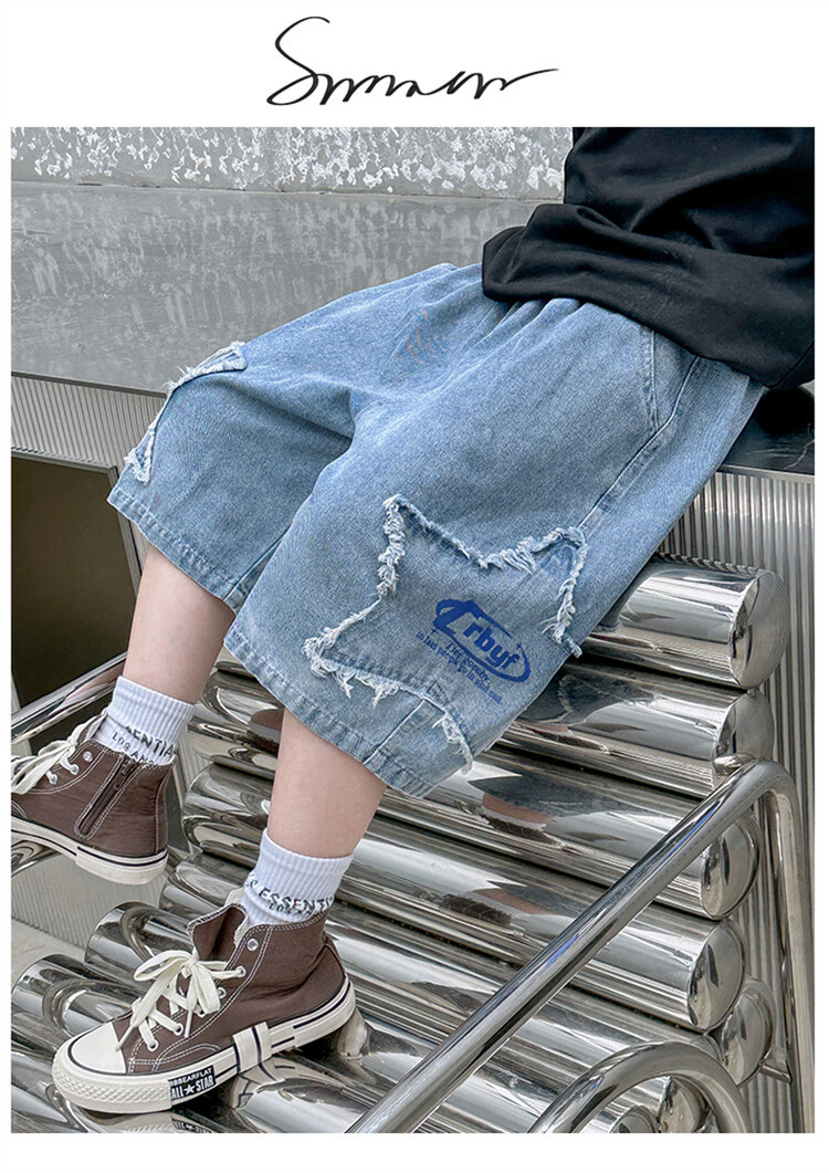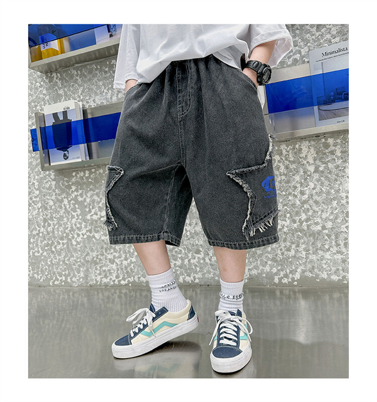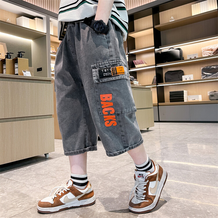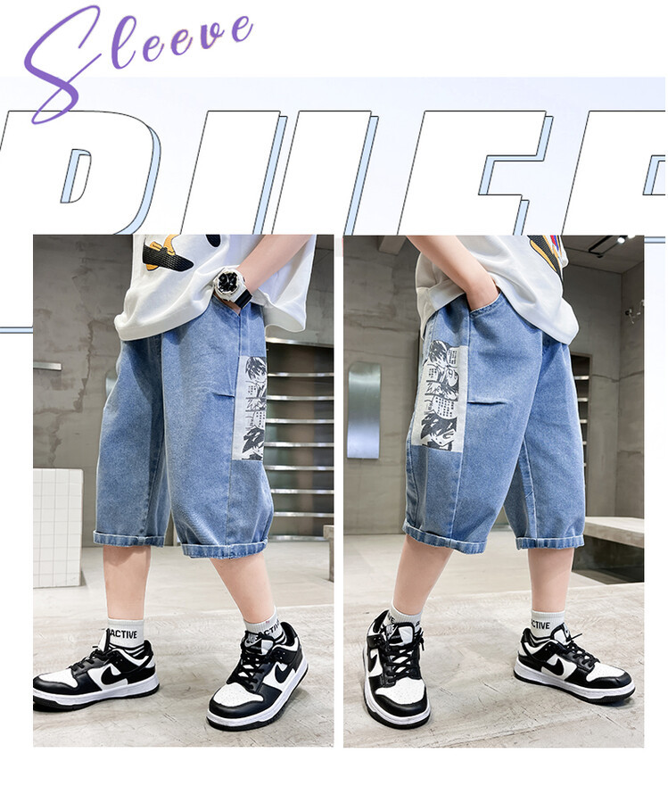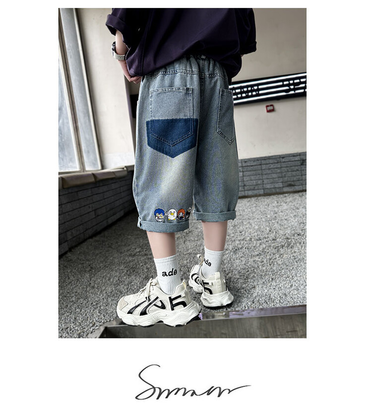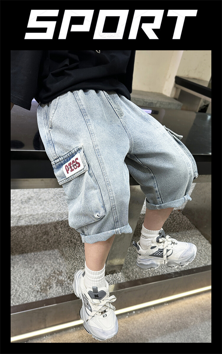 남학생 데님 반바지 2024 년 여름 새 한국식 중대형 어린이 5 점 바지 어린이 편안한 얇은 바지 여름 착용스토어 가기