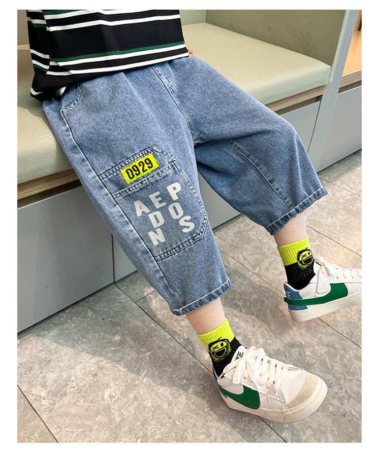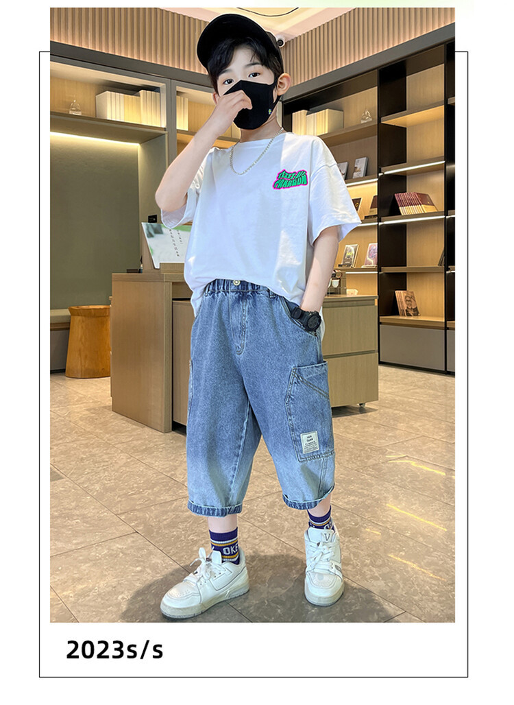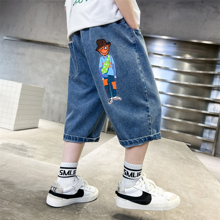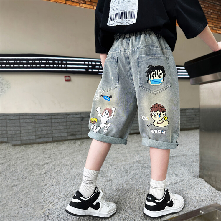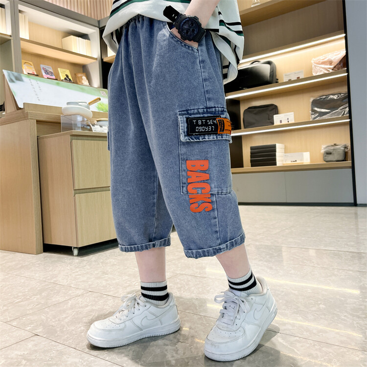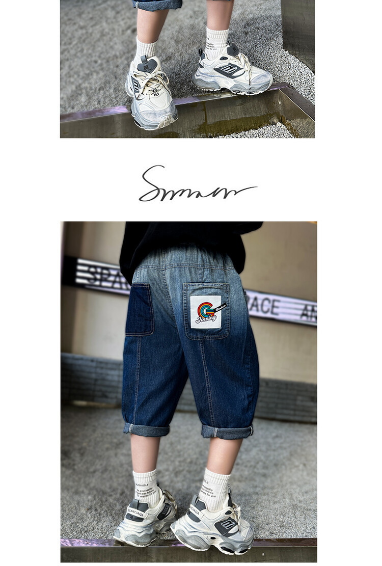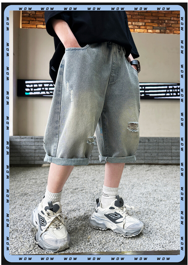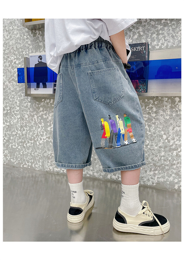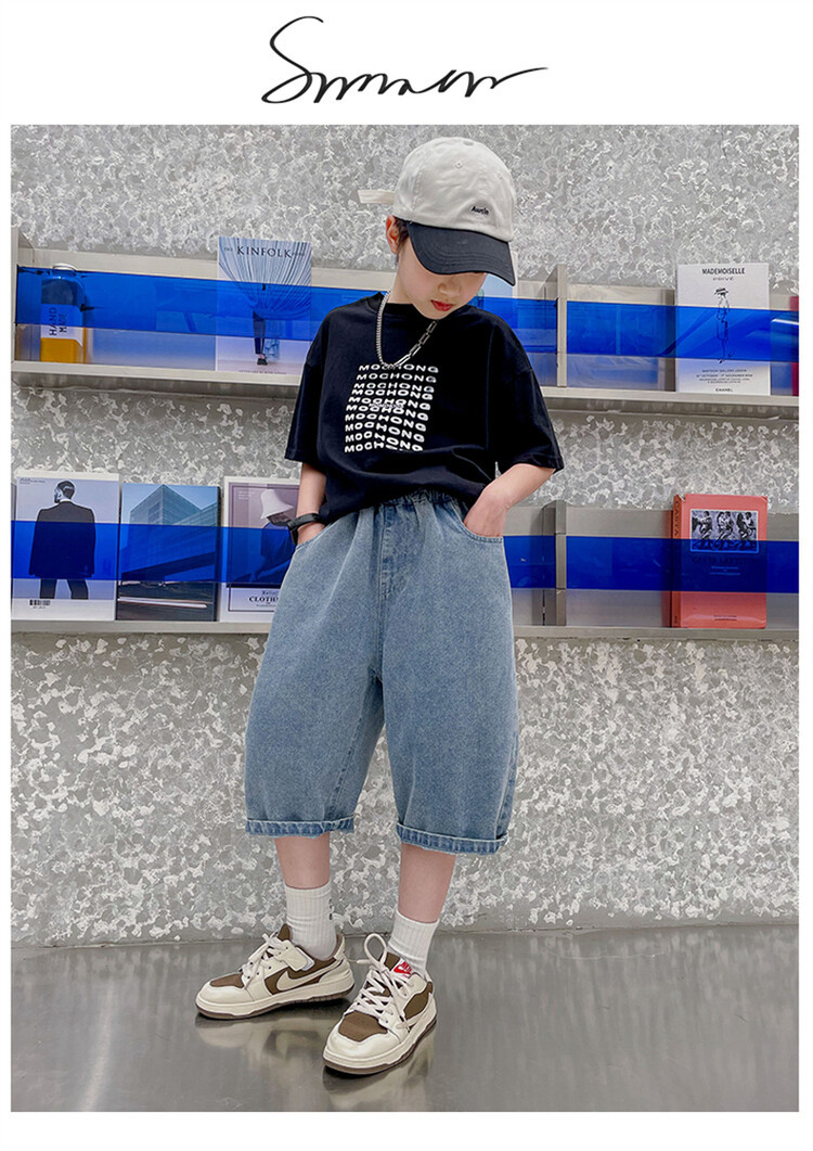 남학생 데님 반바지 2024 년 여름 새 한국식 중대형 어린이 5 점 바지 어린이 편안한 얇은 바지 여름 착용스토어 가기