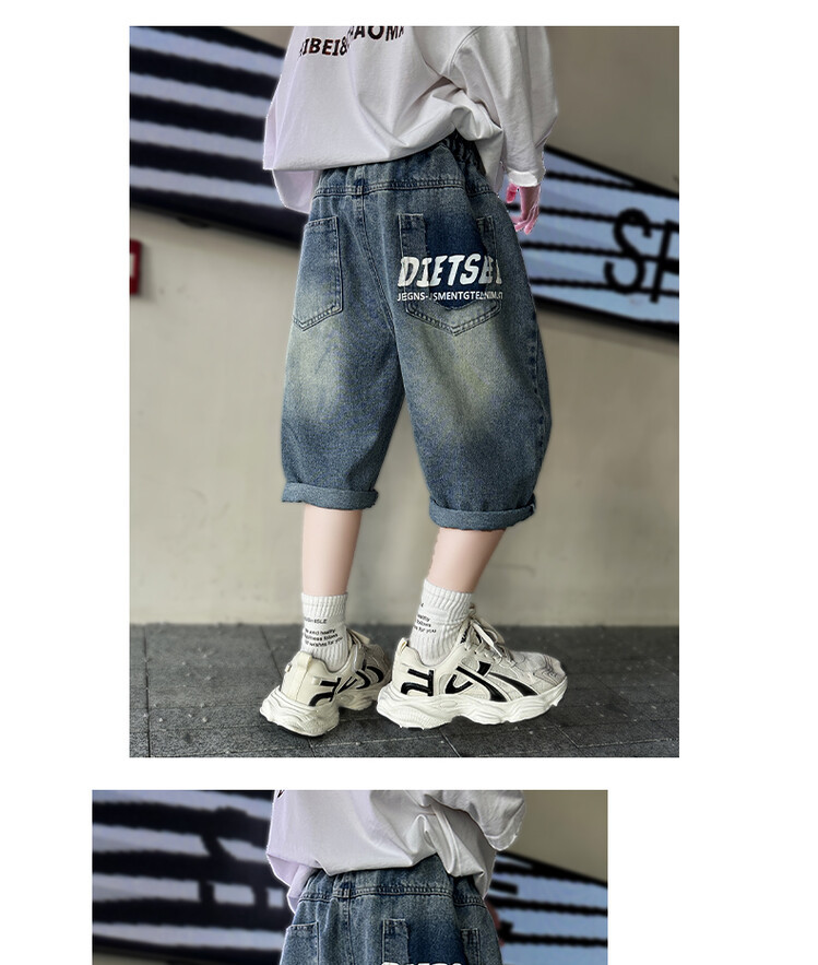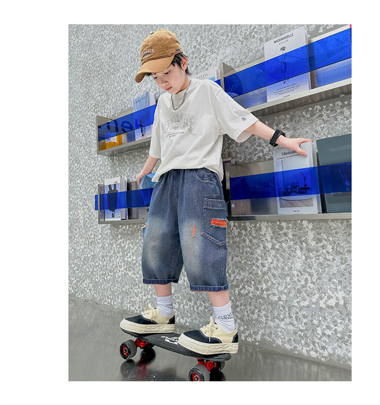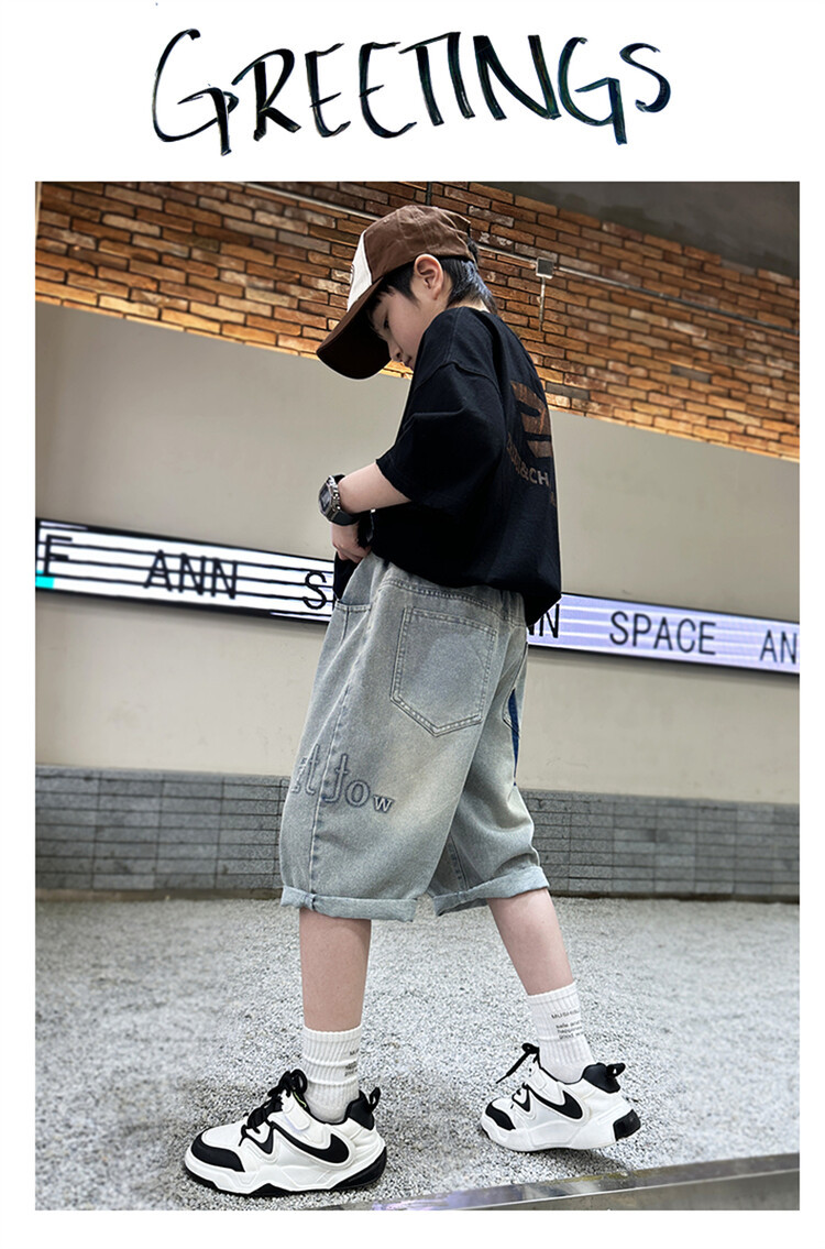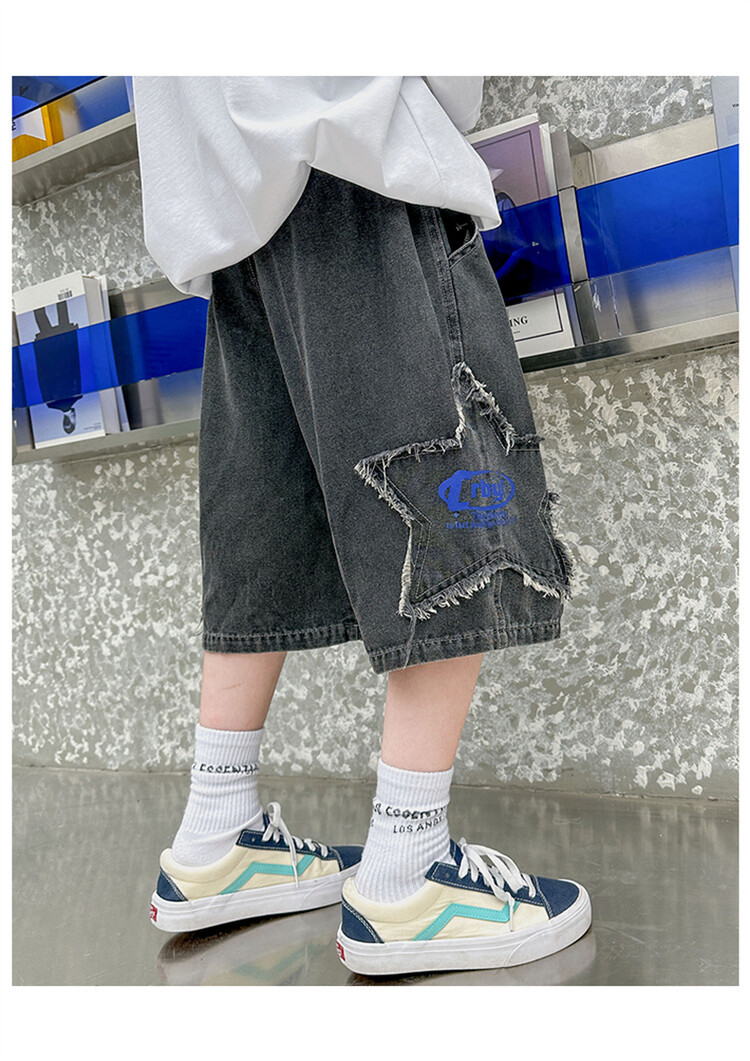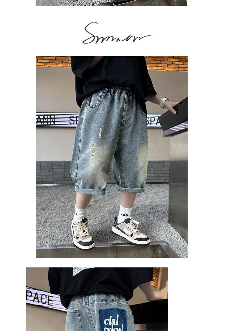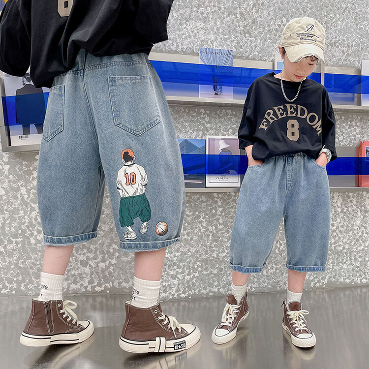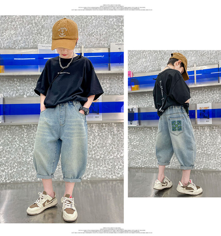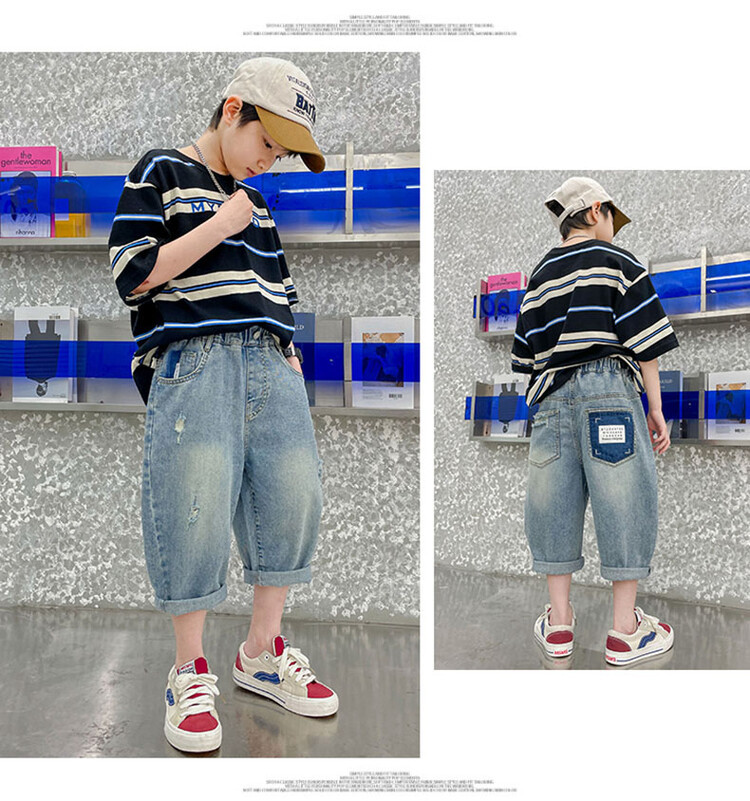 남학생 데님 반바지 2024 년 여름 새 한국식 중대형 어린이 5 점 바지 어린이 편안한 얇은 바지 여름 착용스토어 가기