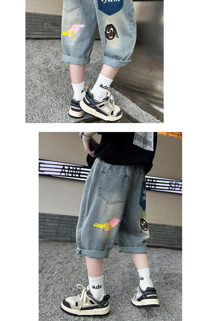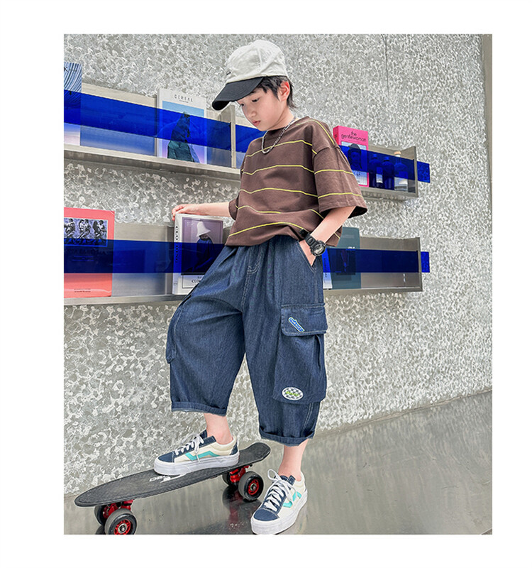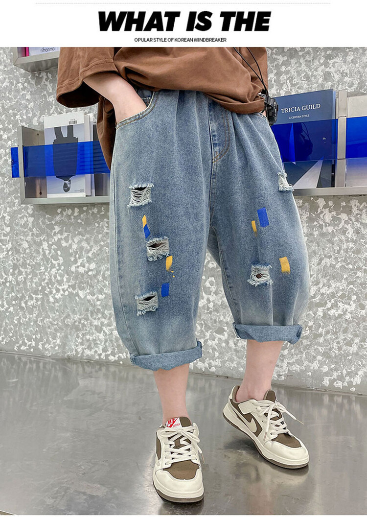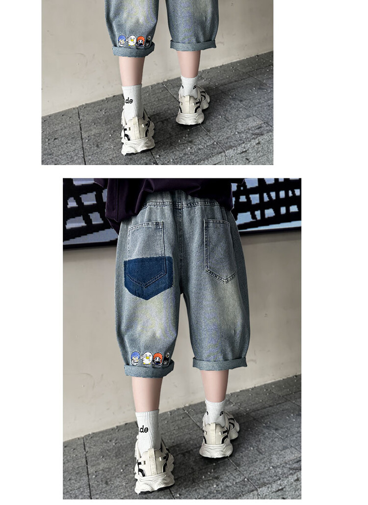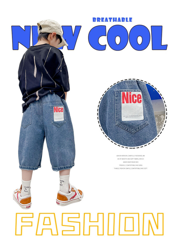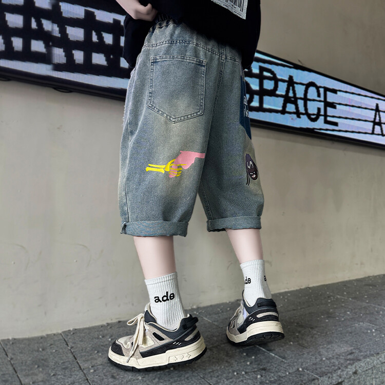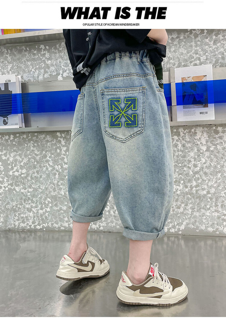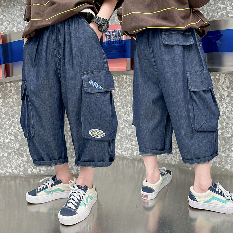 남학생 데님 반바지 2024 년 여름 새 한국식 중대형 어린이 5 점 바지 어린이 편안한 얇은 바지 여름 착용스토어 가기