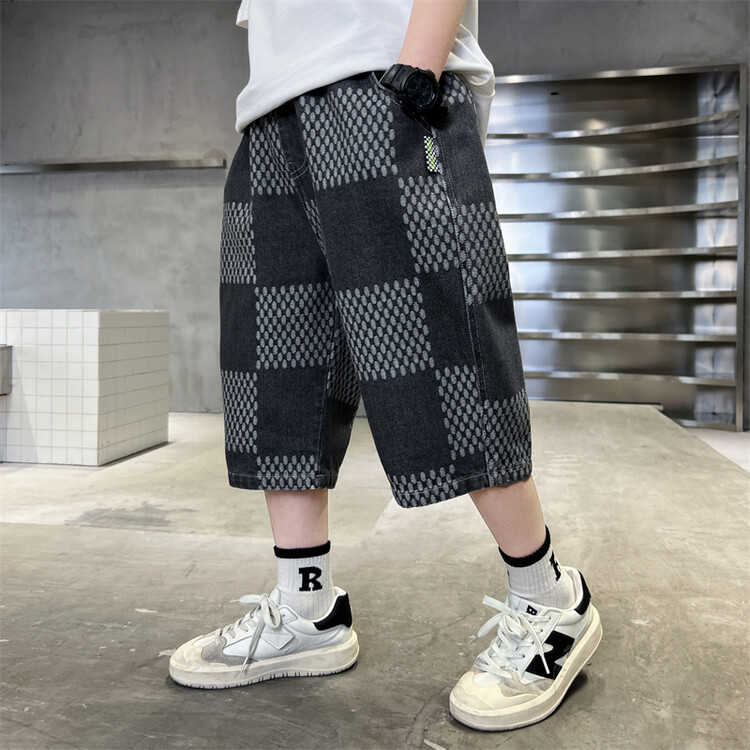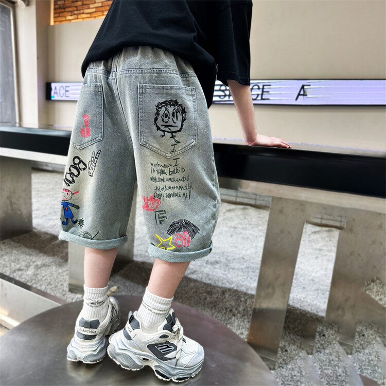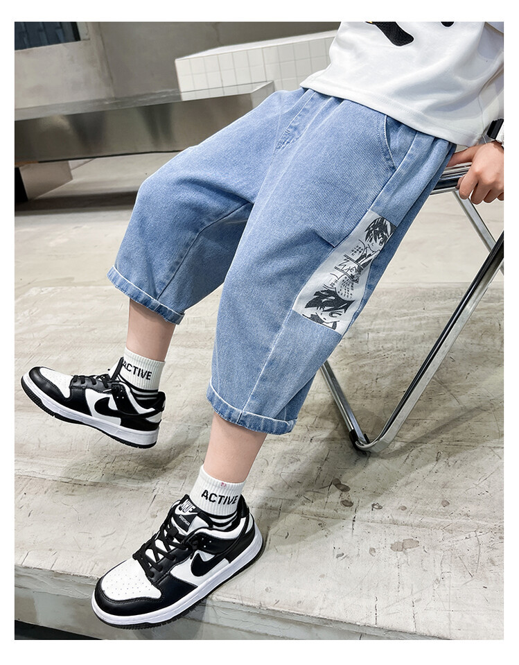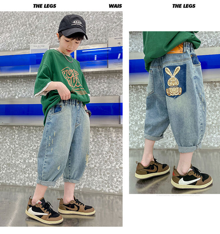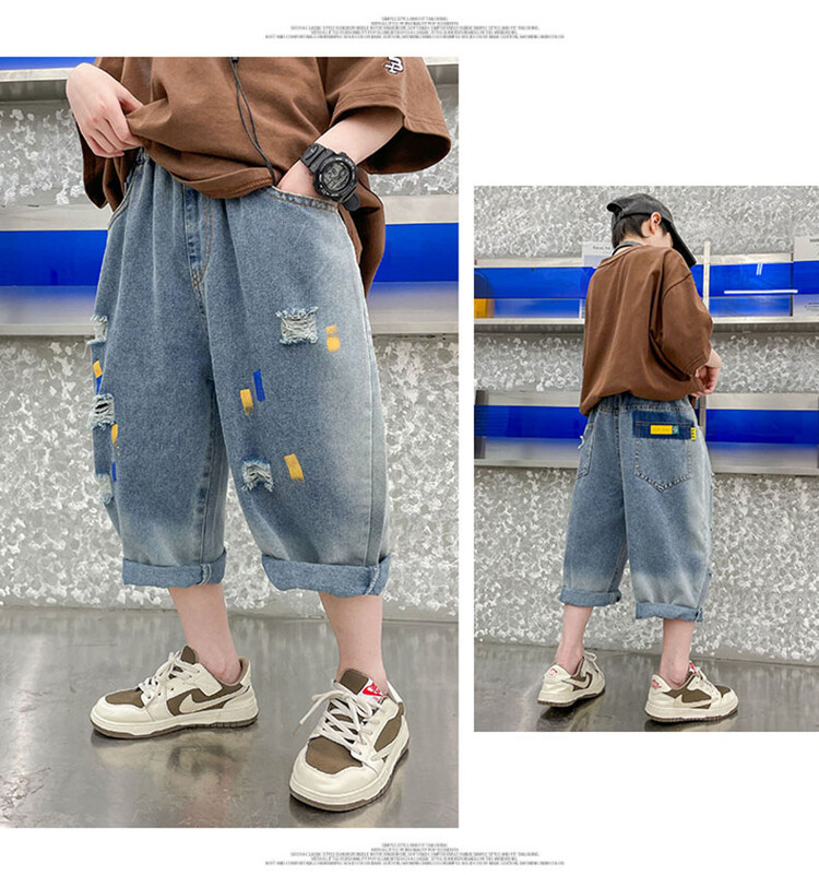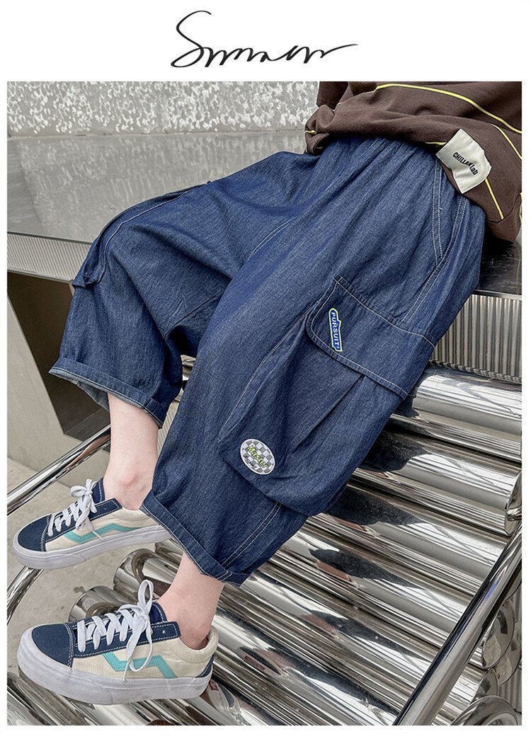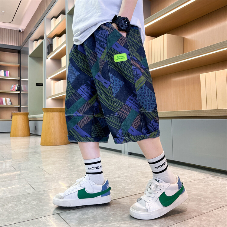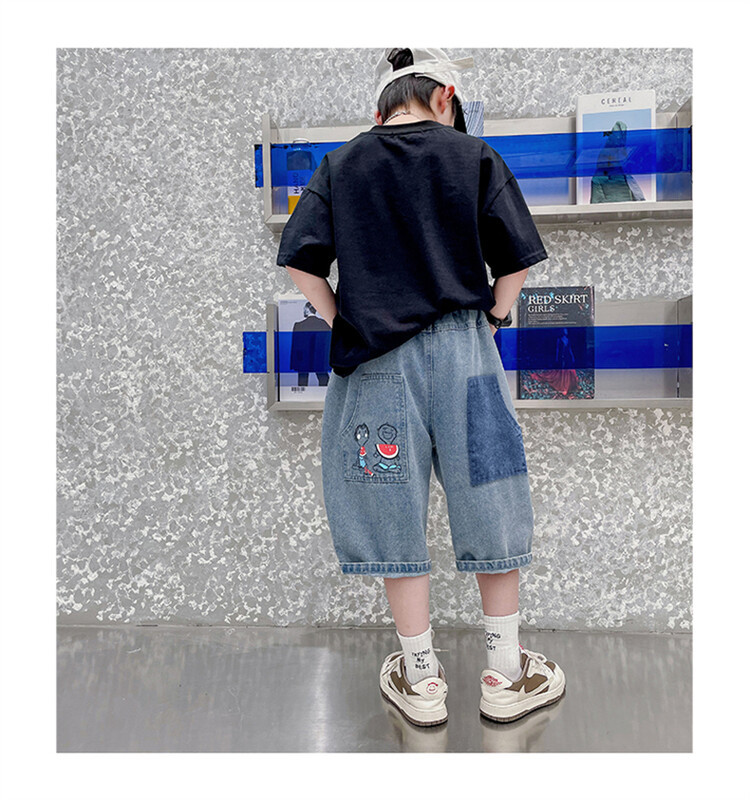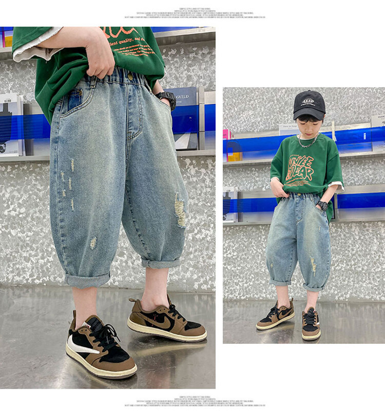 남학생 데님 반바지 2024 년 여름 새 한국식 중대형 어린이 5 점 바지 어린이 편안한 얇은 바지 여름 착용스토어 가기