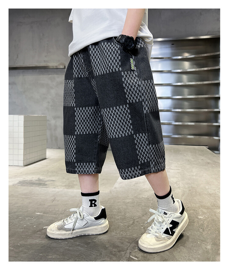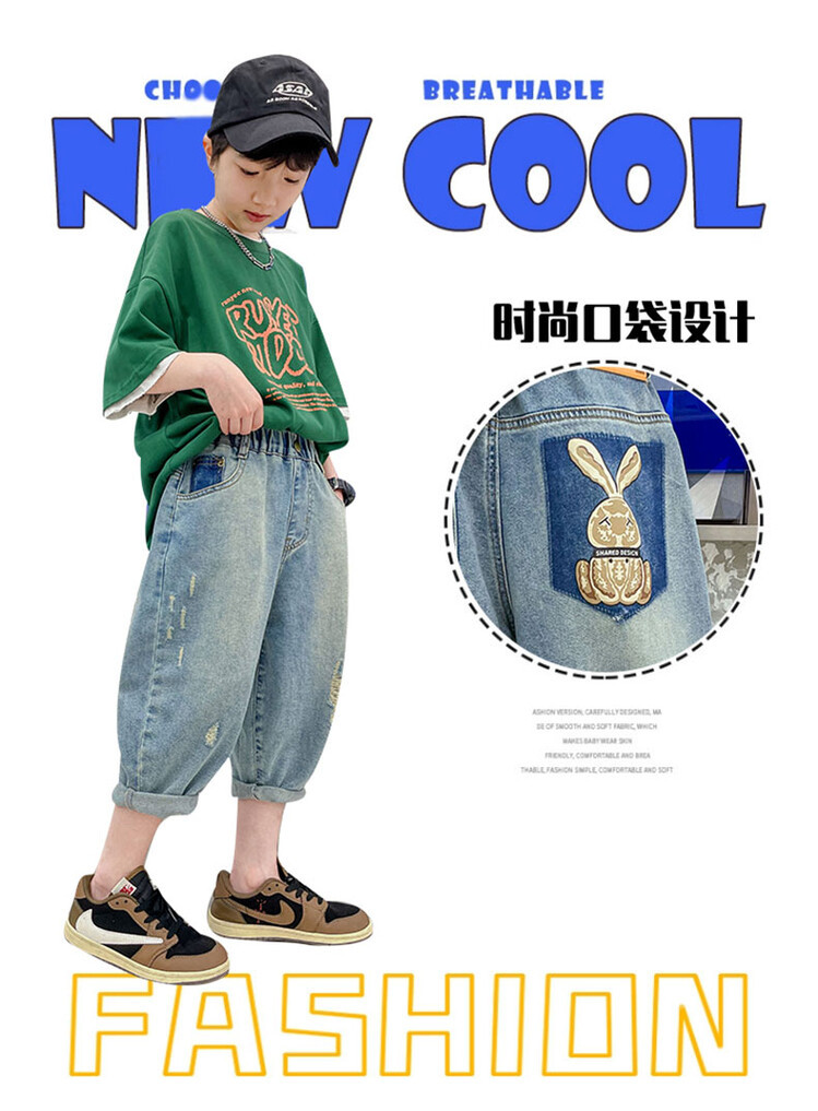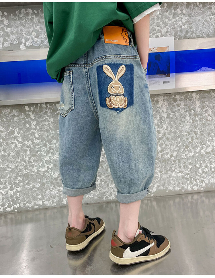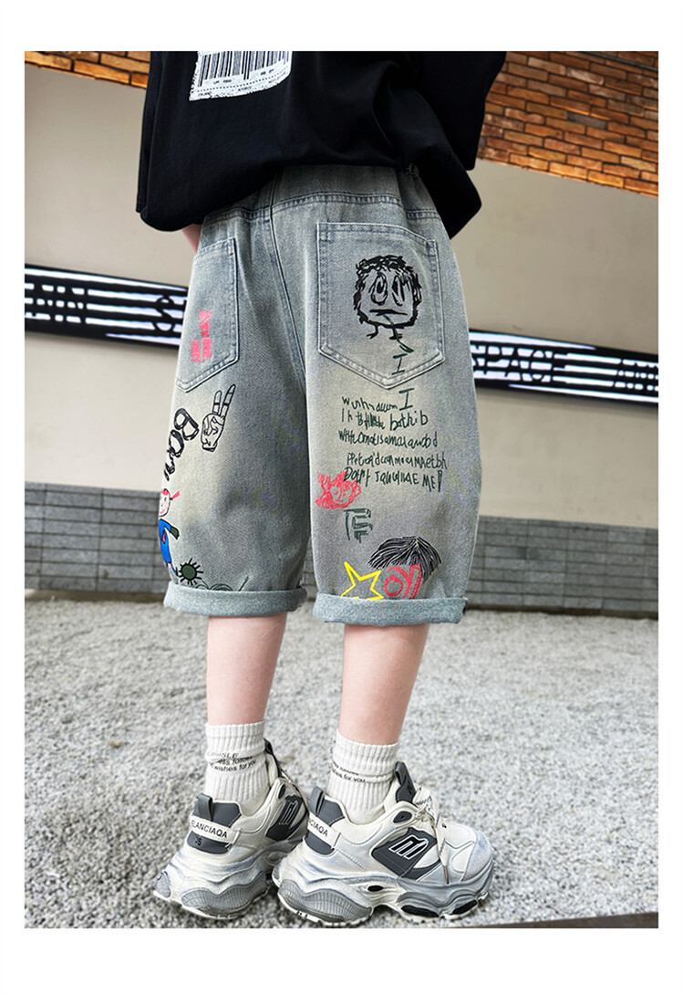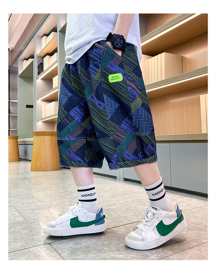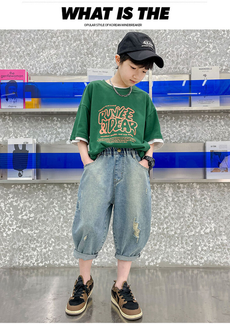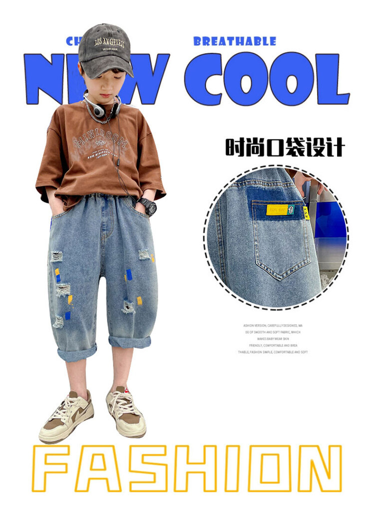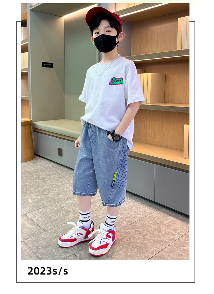 남학생 데님 반바지 2024 년 여름 새 한국식 중대형 어린이 5 점 바지 어린이 편안한 얇은 바지 여름 착용스토어 가기